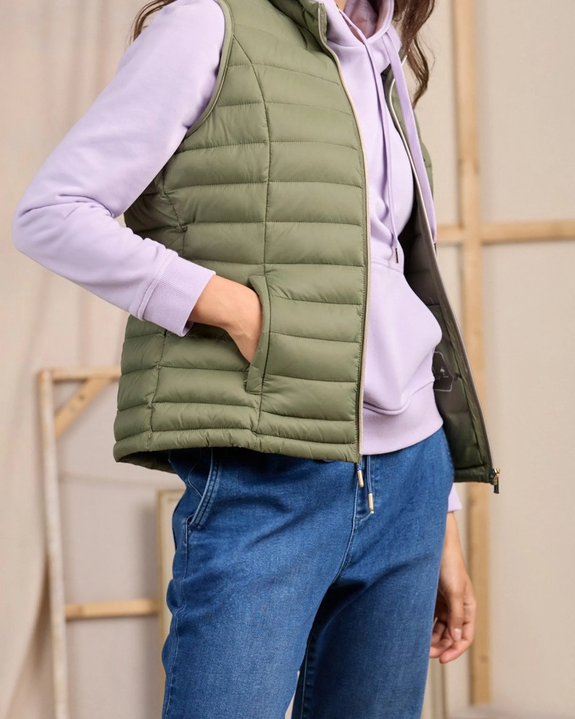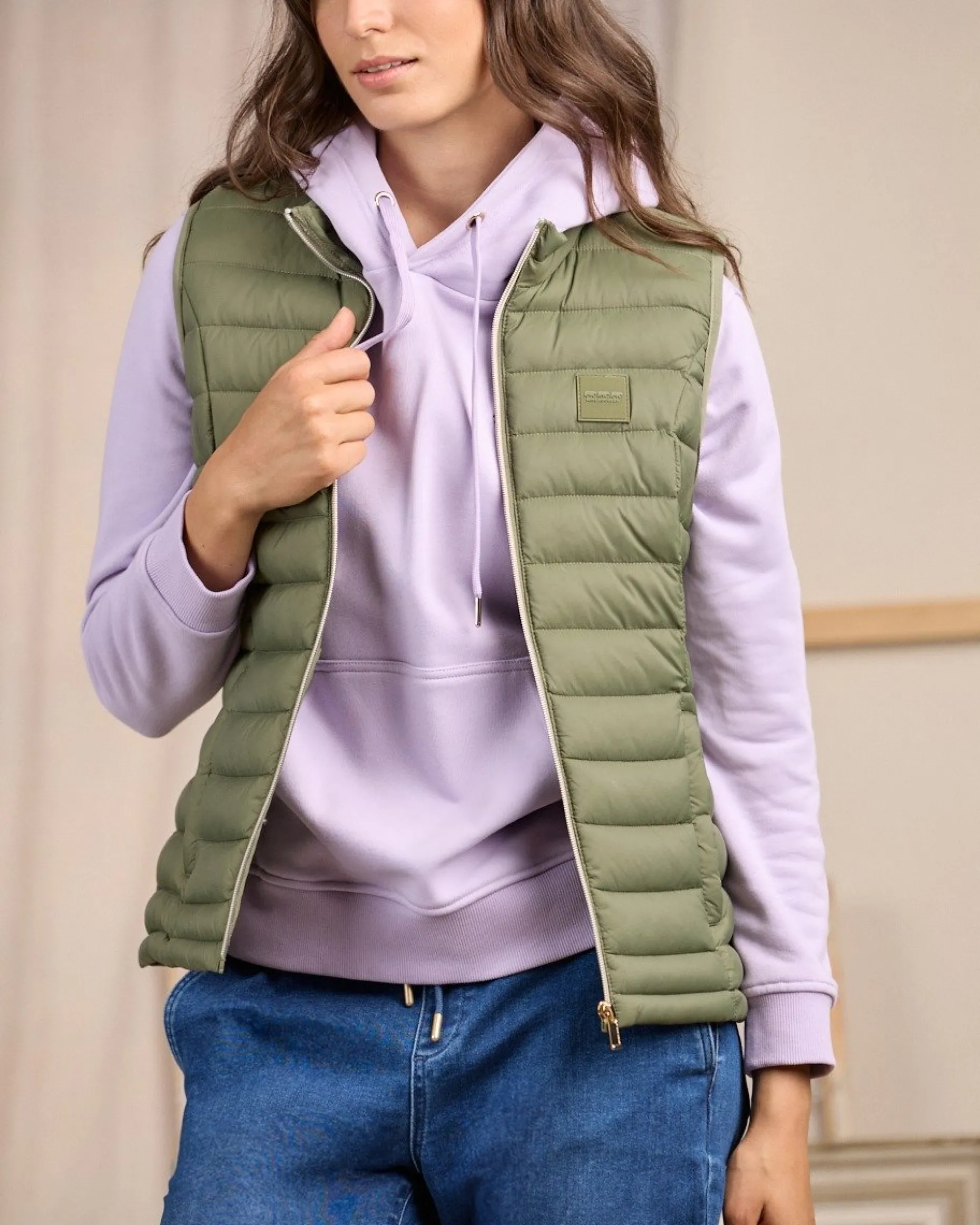 Réalisée en polyamide, cette doudoune sans manches résiste aux intempéries ! Avec son coloris uni kaki clair et son effet matelassé, elle vous aide à adopter une allure décontractée et sophistiquée. Le détail qui fait la différence ? Sa fermeture éclair dorée. Deux poches latérales et un badge signature complètent cette pièce épurée et polyvalente. Pour ajouter du volume à votre tenue, portez-la par-dessus votre pull ou votre tee-shirt à manches longues favori.
