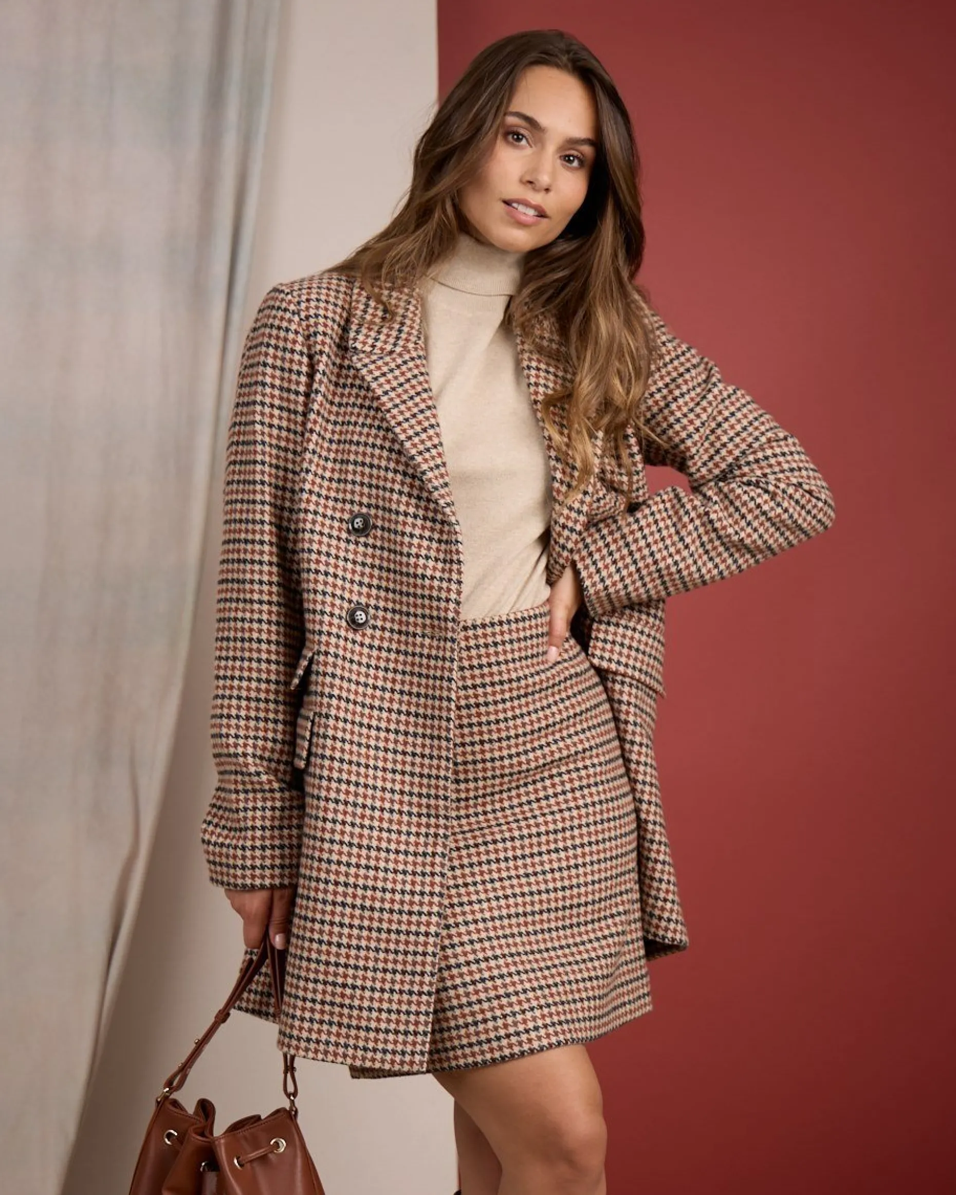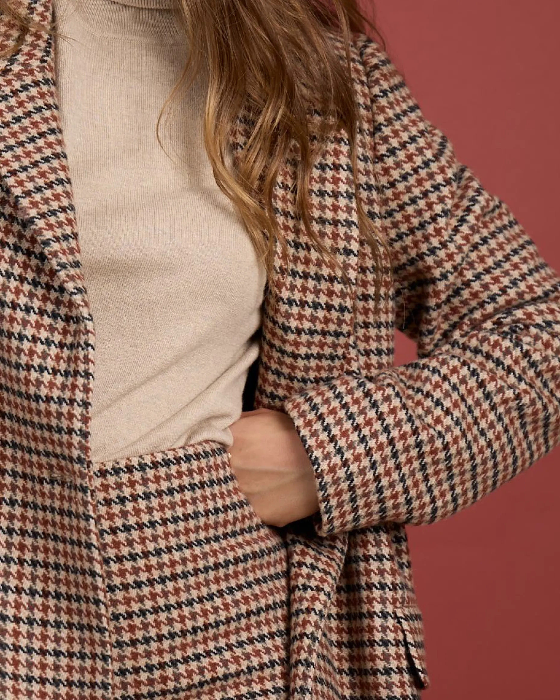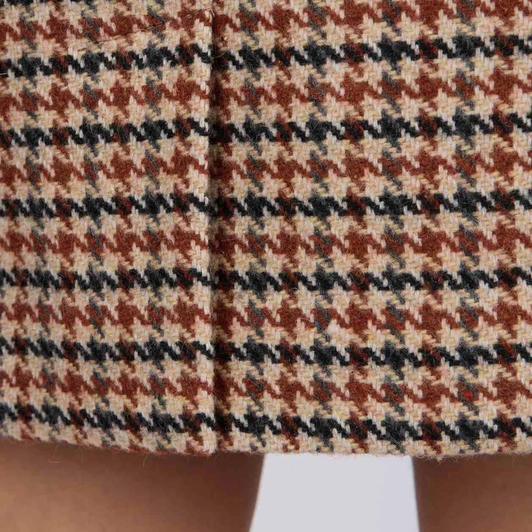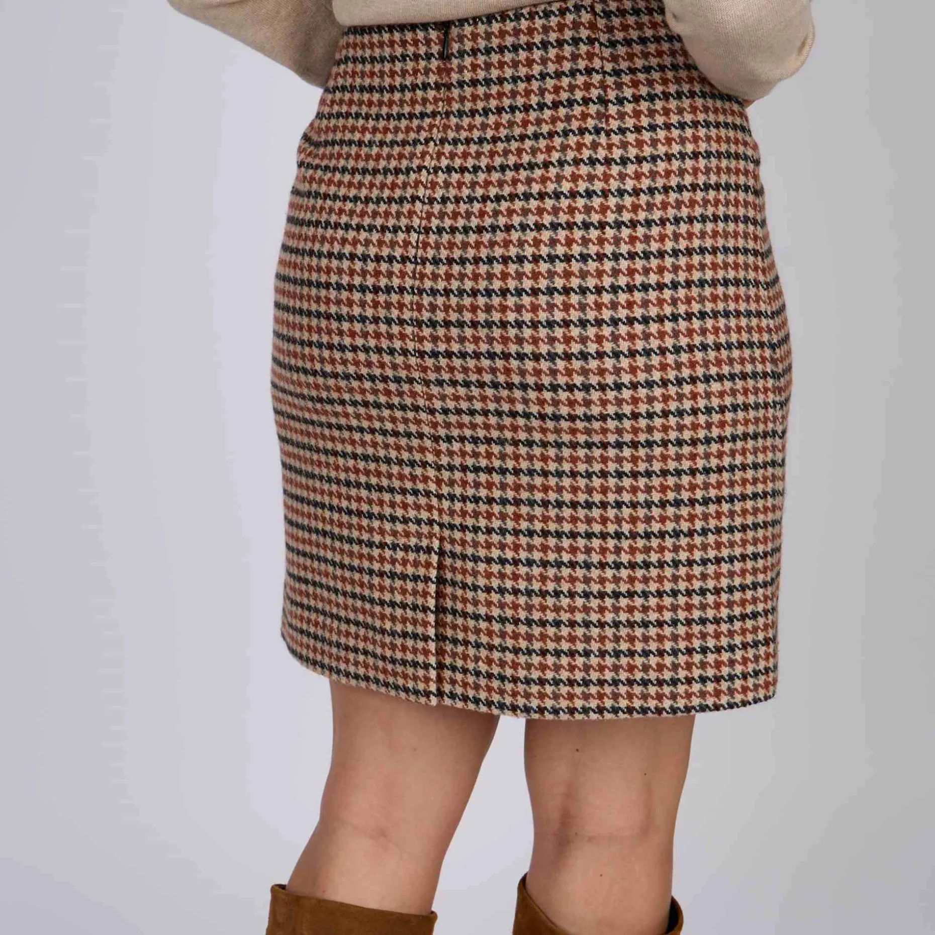 Sublimez vos tenues avec cette jupe beige ! Ce modèle se démarque par son motif iconique pied-de-poule, synonyme d’une élégance chic et intemporelle. Sa coupe près du corps met en valeur votre silhouette, tandis que son coloris beige se prête à toutes vos envies. Une petite fente à l’arrière, une fermeture éclair invisible et une plaquette dorée « Mise au Green » soulignent son design soigné. Elle n’attend plus que vous !