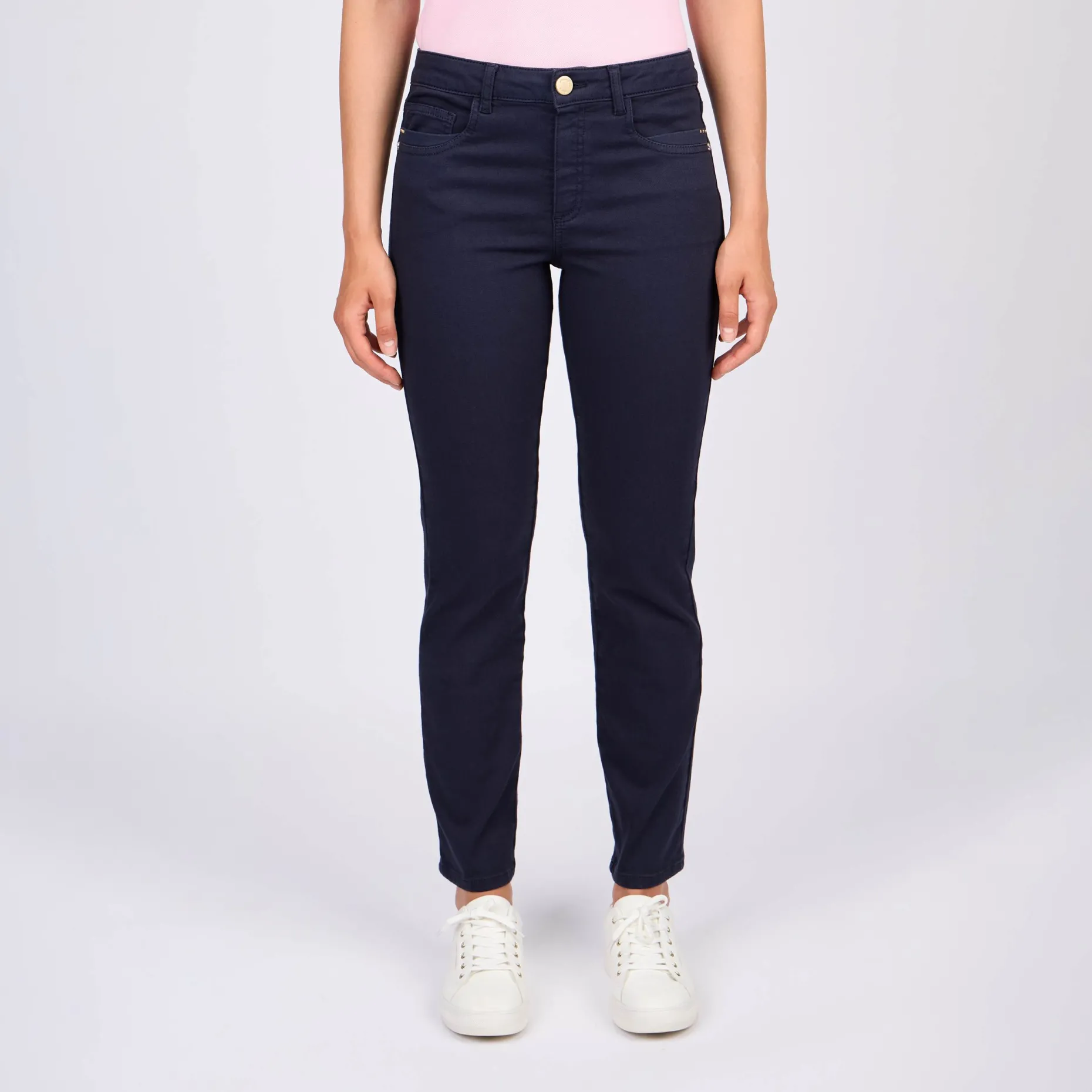 Avec son design à 5 poches et son coloris bleu marine, ce pantalon pour femme a tout d’un nouvel essentiel. Confectionné en coton issu de l’agriculture biologique avec une pointe d’élasthanne, il mise sur le style et le confort. Il est complété par des détails travaillés comme sa braguette zippée avec bouton doré et son jacron Mise au Green. Révélez votre chic en le mixant avec un pull ou une blouse de notre collection !