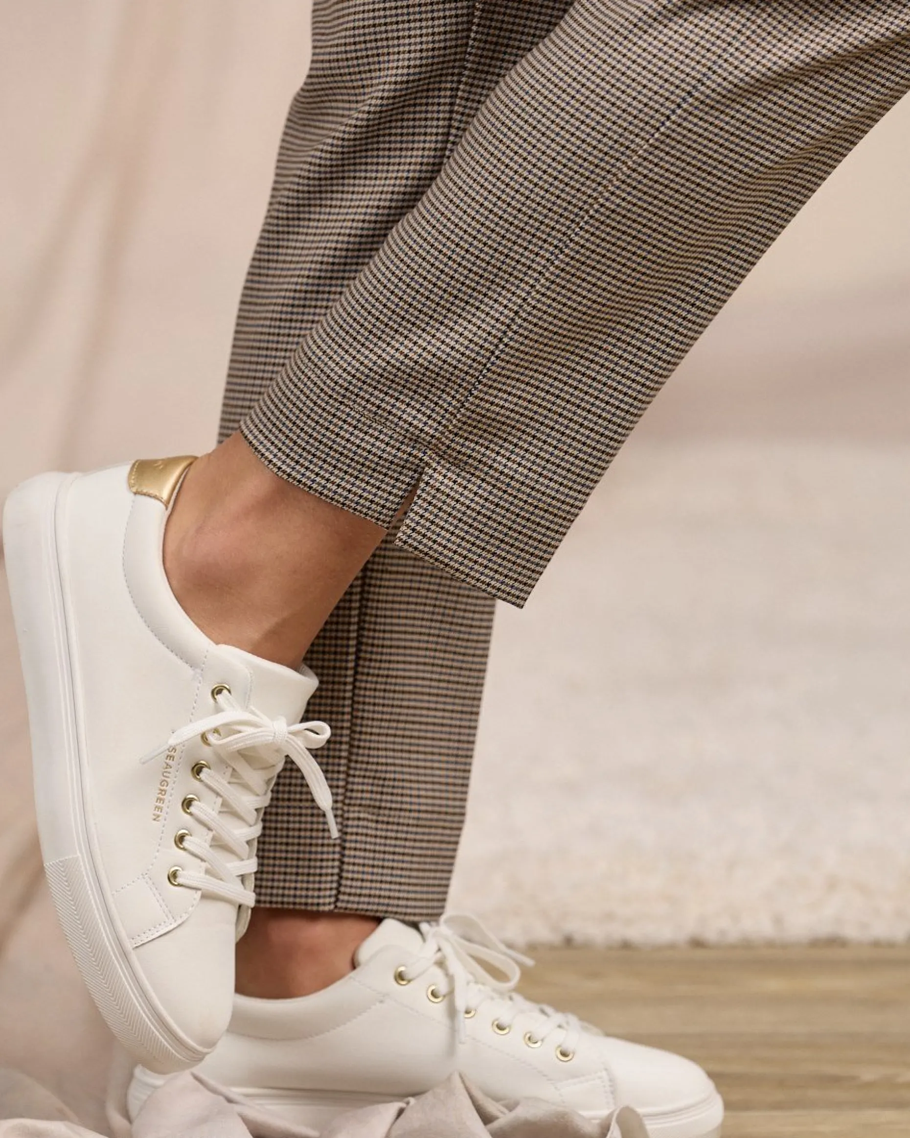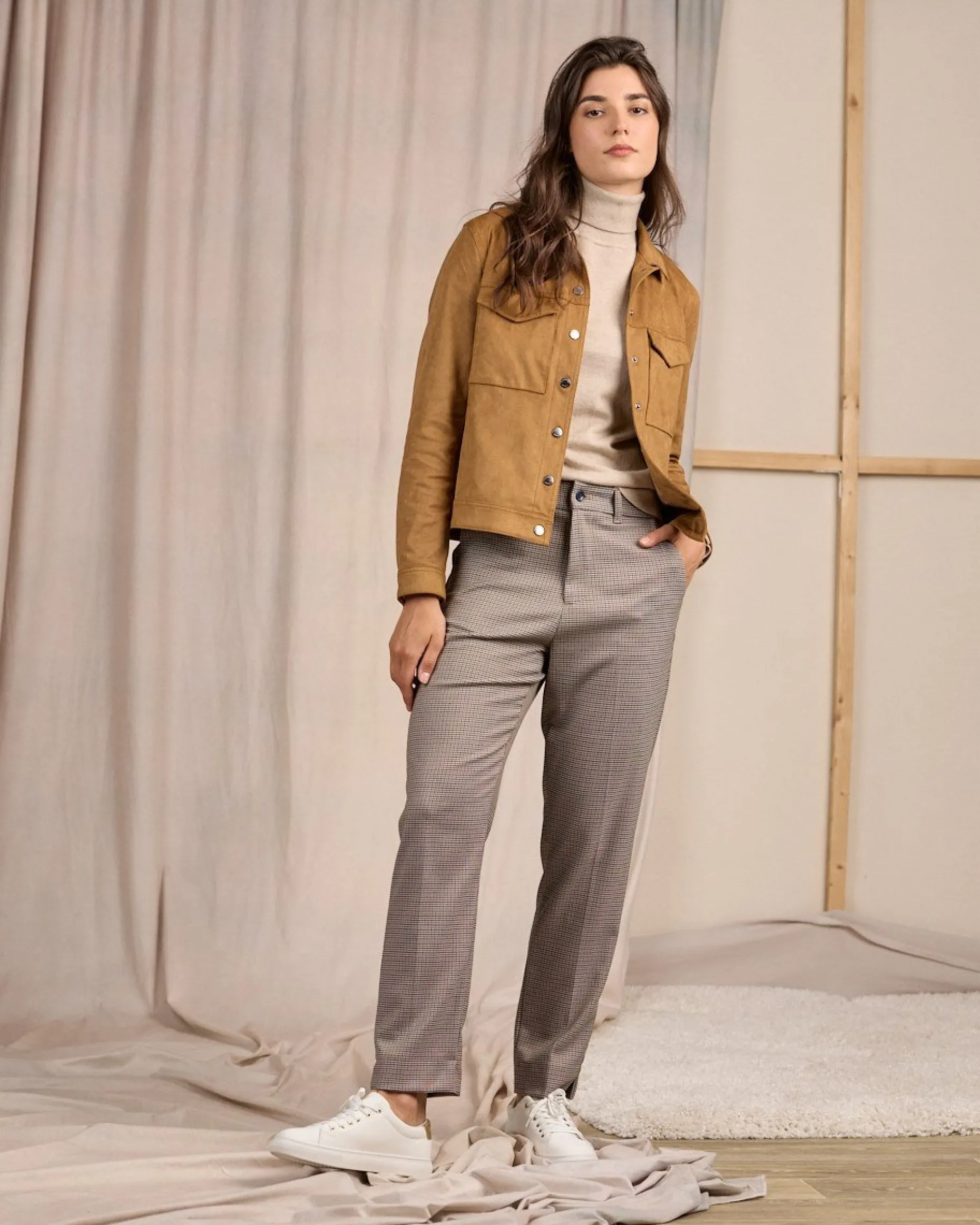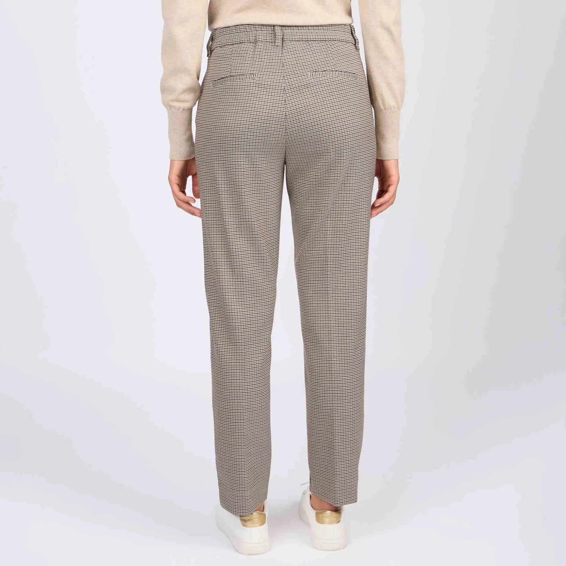 Une pièce phare que vous allez adorer ! Ce pantalon pour femme est caractérisé par une teinte beige et un motif pied-de-poule emblématique. D’un grand confort, il présente une coupe chino, une braguette zippée et boutonnée, deux poches à l’avant et de fausses poches à l’arrière. Pour aller au travail ou participer à des sorties décontractées : il habille toutes vos tenues avec élégance et sophistication !