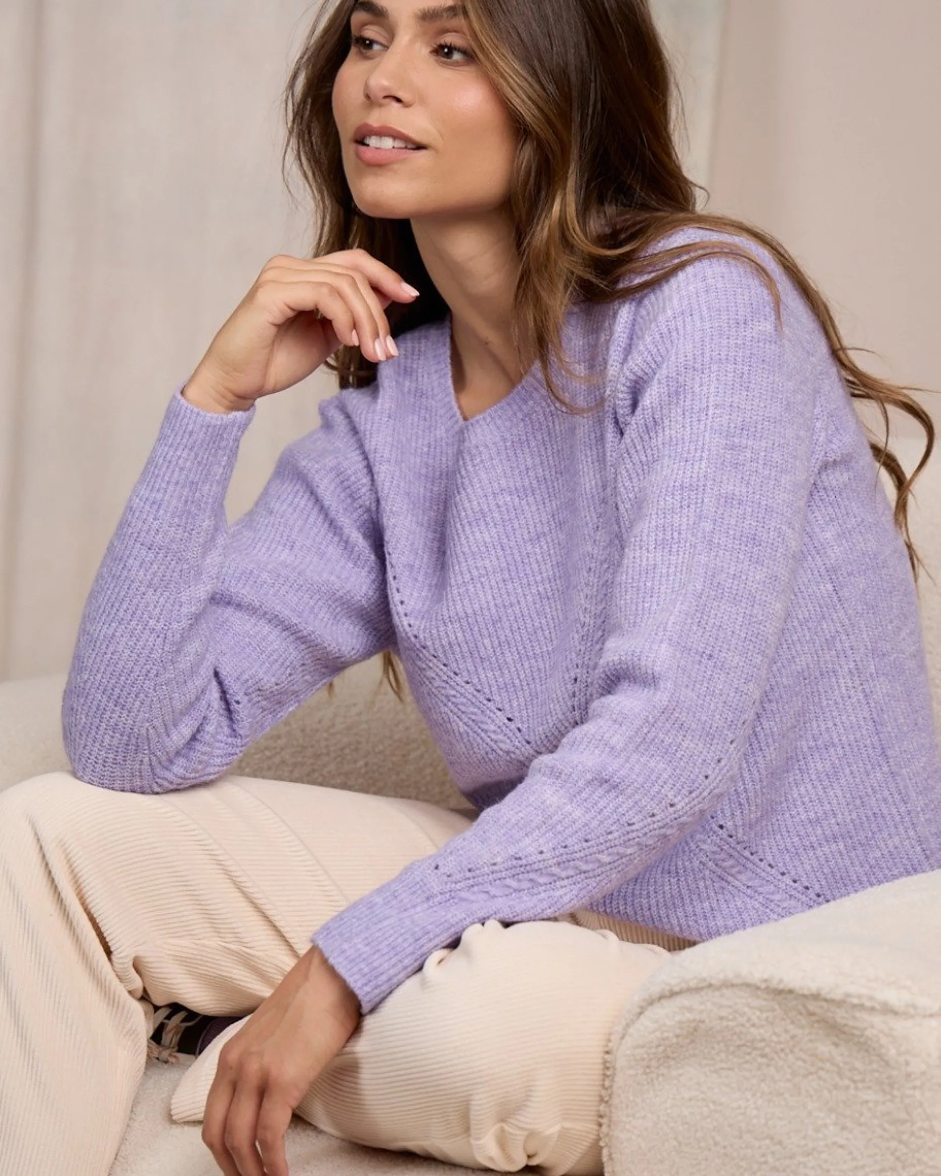 Avec ses élégants détails ajourés et sa teinte lilas pleine de fraîcheur, ce pull à manches longues pour femme illumine votre quotidien ! Réalisé à partir de polyester, d’acrylique et une touche de laine, il procure chaleur et confort pendant vos journées. Son design doux est complété par un col rond et des finitions bords-côtes à la base, au col et aux poignets. Succombez à cette pièce chaleureuse !