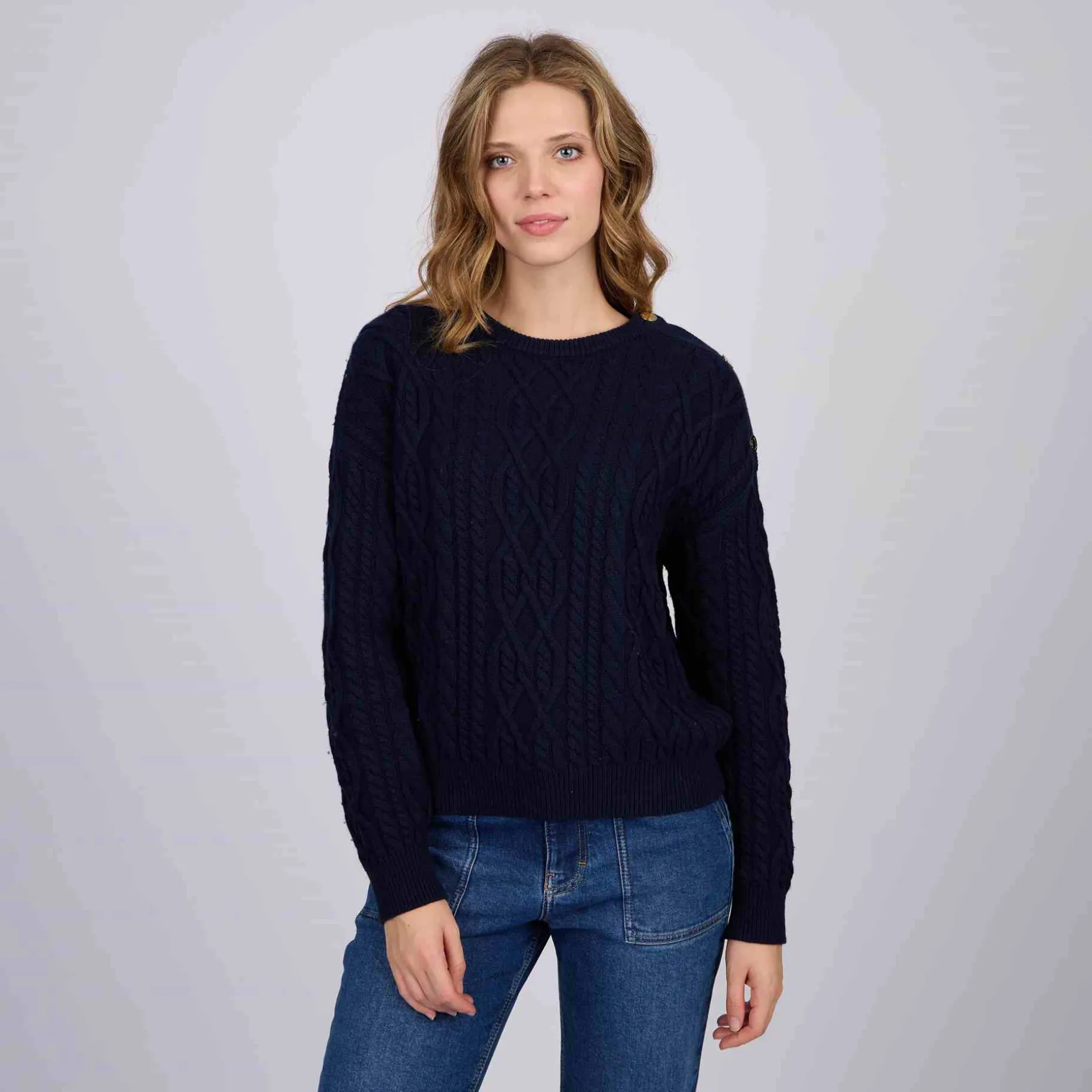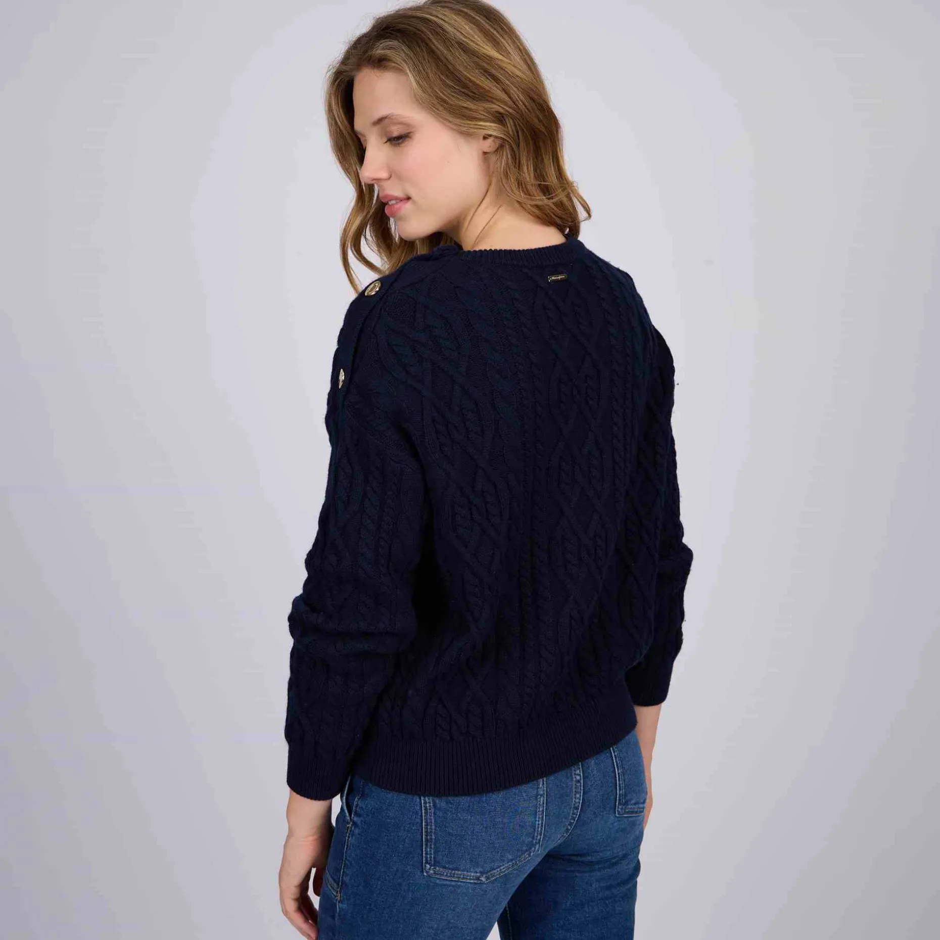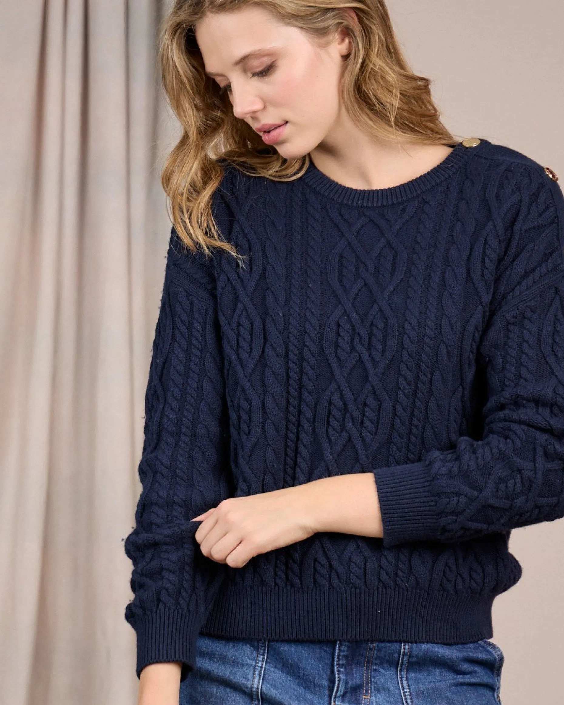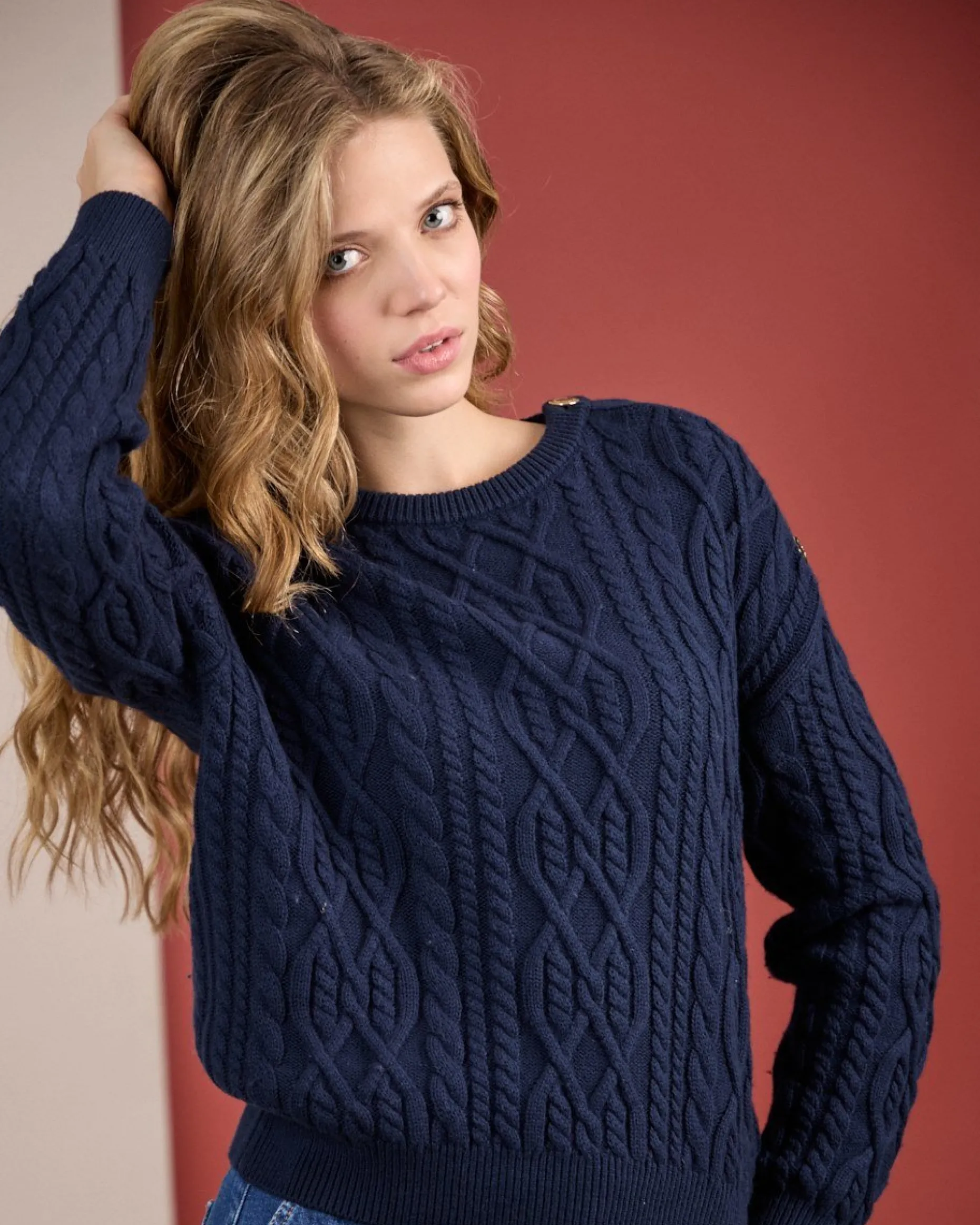 Simple et chic à la fois : ce pull à manches longues multiplie les détails soignés ! Mélange de coton et de laine, il se démarque par sa maille chaude et respirante. Avec son col rond, ses finitions côtelées et son coloris bleu marine, cette pièce séduit pour son caractère affirmé. La touche d’originalité ultime ? Ses boutons dorés sur l’épaule pour une silhouette encore plus élégante.