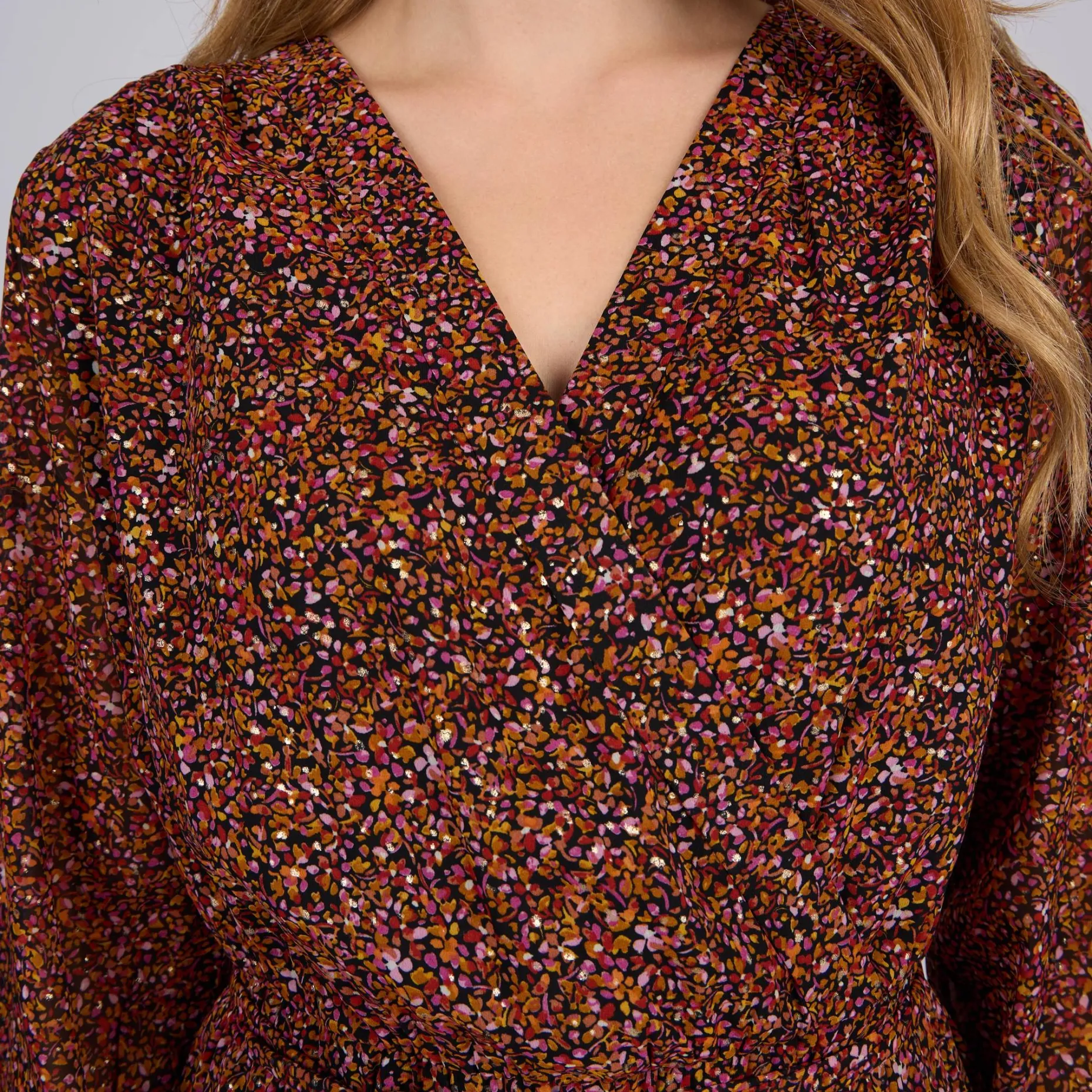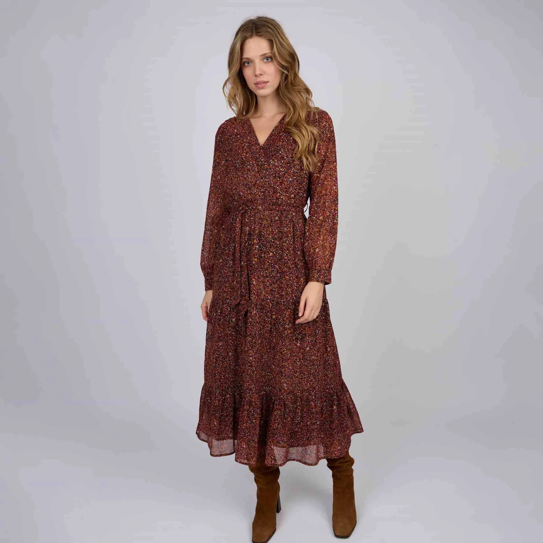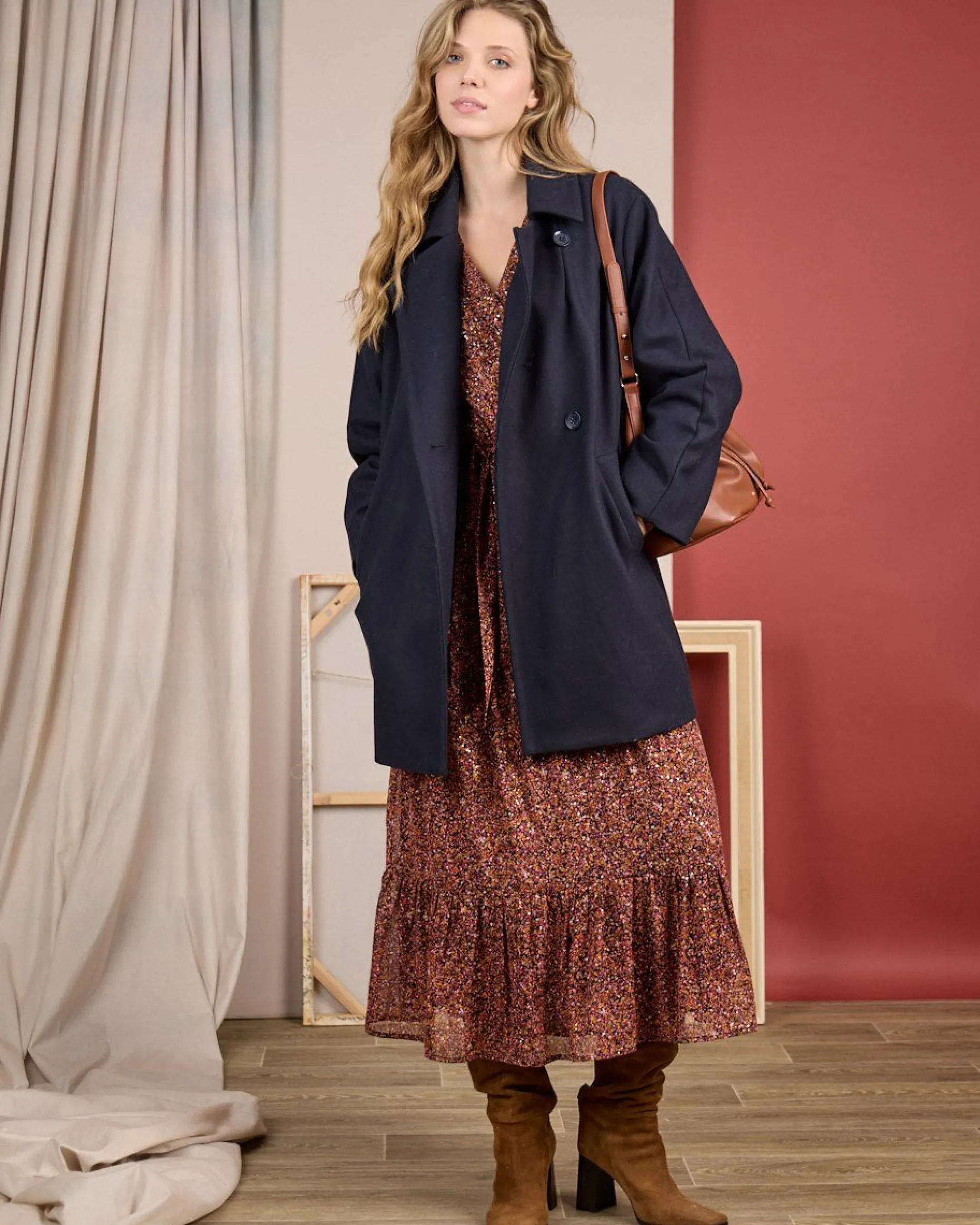 Élégante, fluide, facile à porter… Les atouts de cette robe noire à manches longues sont nombreux ! Des volants à la base et des motifs vibrants ajoutent une touche de style indéniable à cette pièce. Elle est complétée d’une encolure en V et d’une ceinture à nouer à la taille. Pour offrir une sensation de légèreté et de confort en toutes circonstances, ce modèle est conçu en viscose.