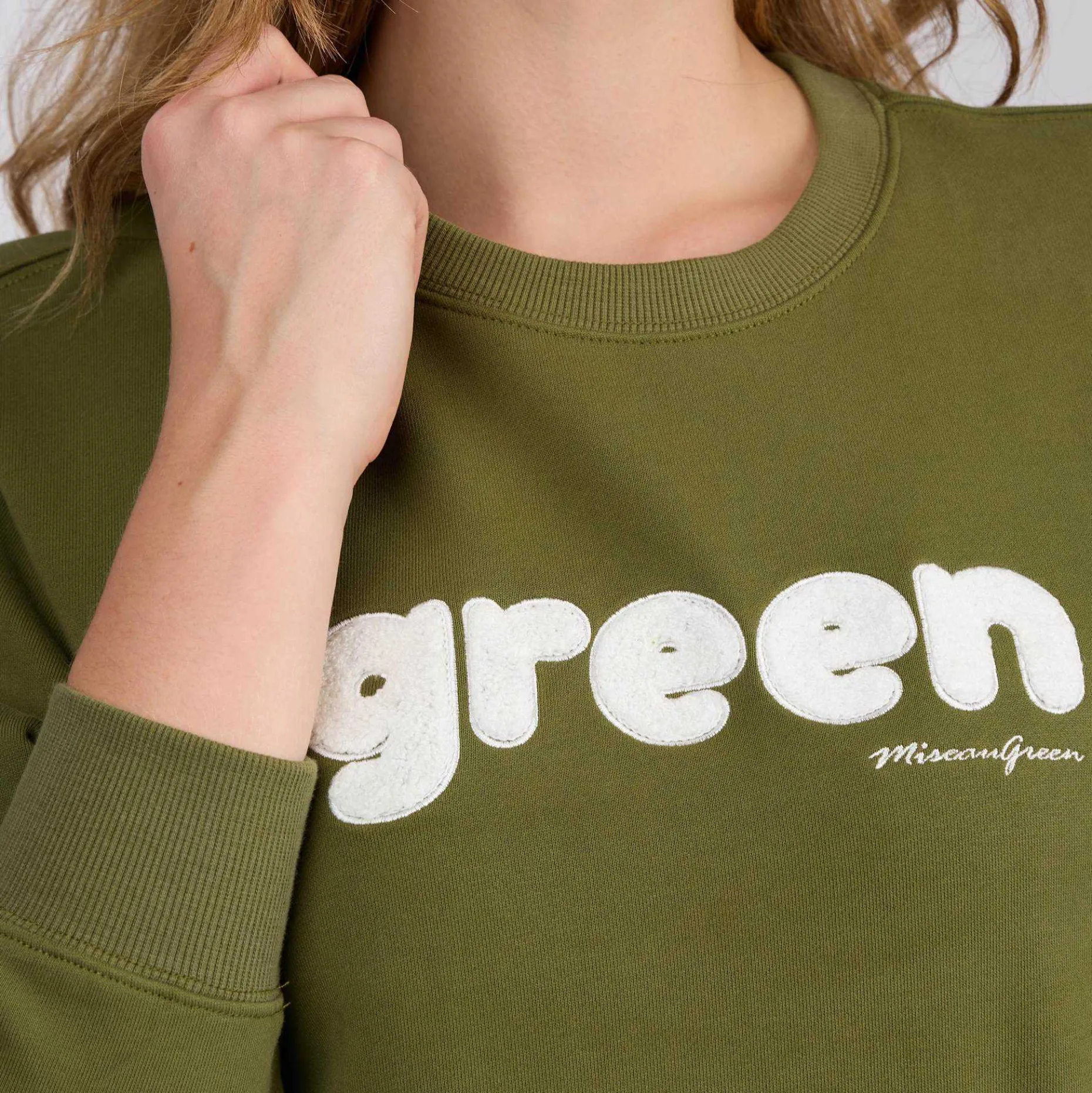 Allure confortable et décontractée avec ce sweat kaki à manches longues ! Ce modèle féminin au design moderne se démarque par son col rond, ses bords côtelés et sa broderie bouclette. Parfait pour la saison, il est majoritairement fabriqué en coton. Adoptez ce basique du dressing et associez-le avec tous vos pantalons préférés !
