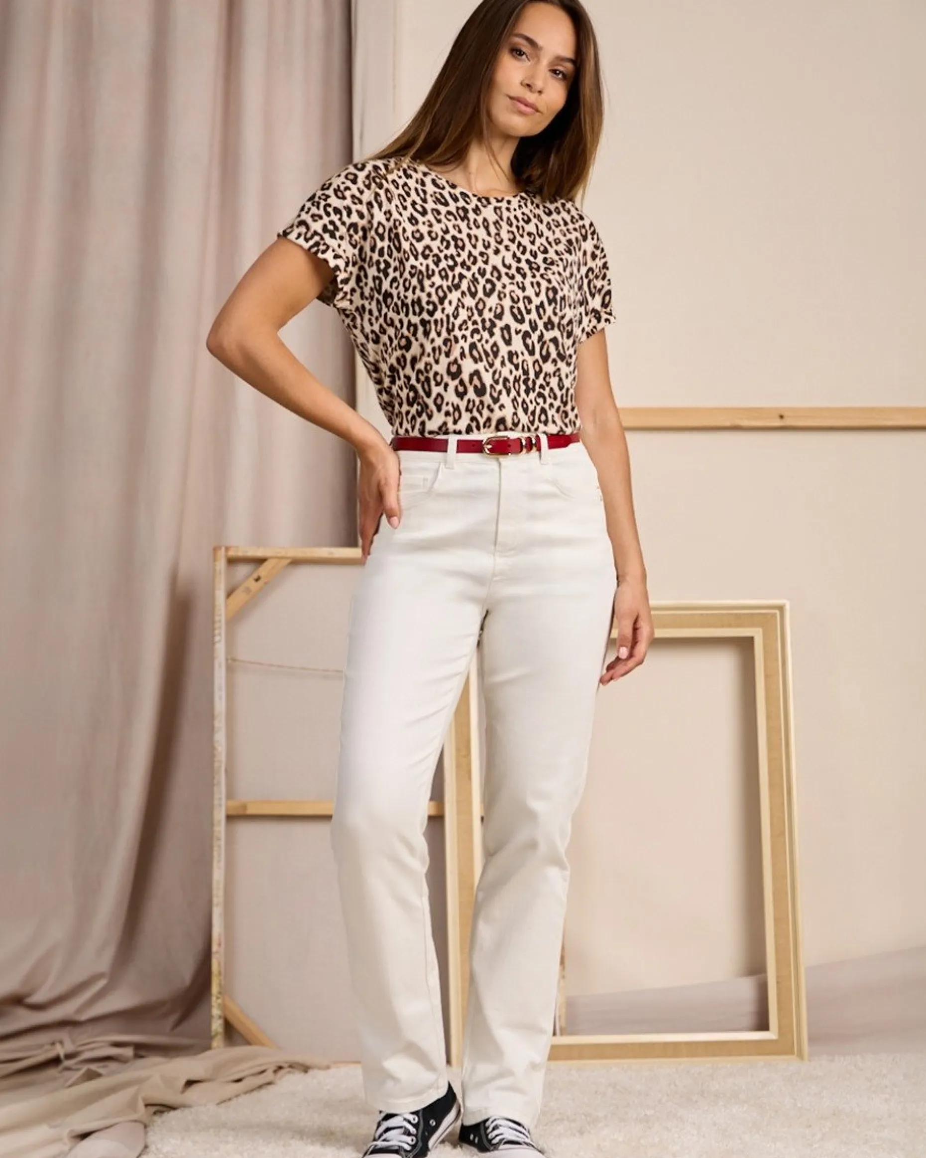 Au cœur de la mode depuis des décennies, l’imprimé léopard est plus que jamais tendance ! Pour un style audacieux et décontracté, adoptez notre tee-shirt à manches courtes. Ce modèle dévoile des manches chauve-souris, un col rond et une petite plaquette Mise au Green à l’arrière. Pour une tenue réussie sans en faire trop, mixez-le simplement avec votre jean ou votre pantalon favori.