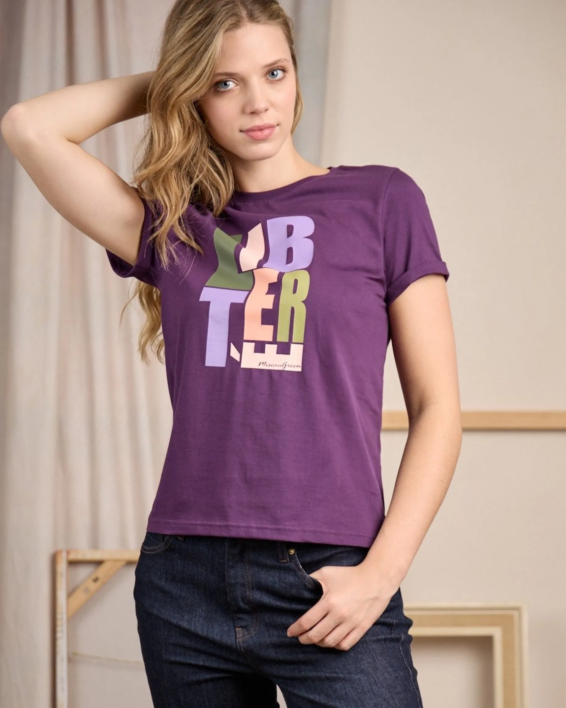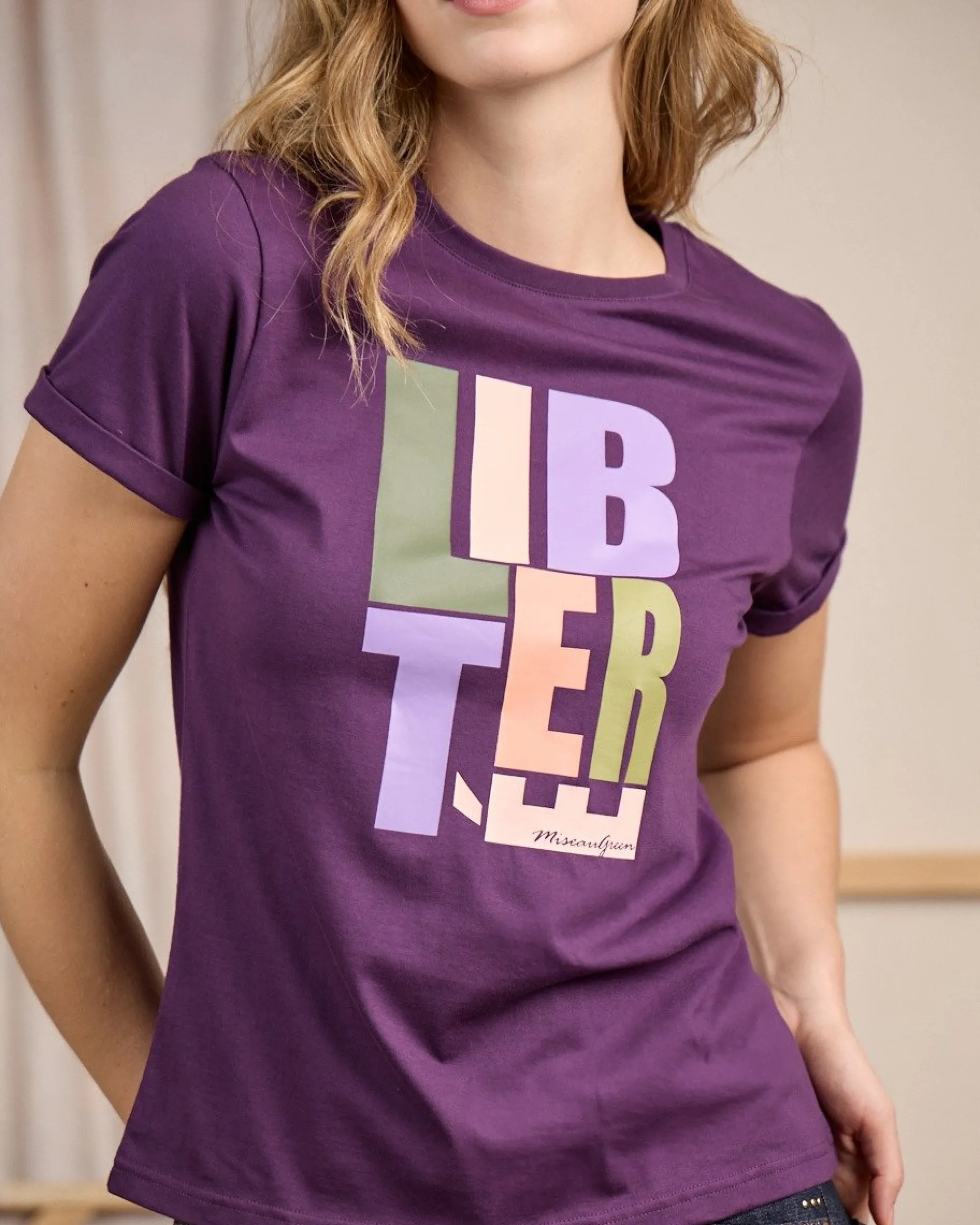 Faites souffler un vent de liberté sur votre dressing avec ce tee-shirt à manches courtes ! Doux et agréable à porter, il est réalisé entièrement en coton issu de l’agriculture biologique. Ultra tendance, il dynamisera instantanément vos tenues ! Ce modèle se distingue par son message « Liberté », son col rond et son coloris violet vibrant.