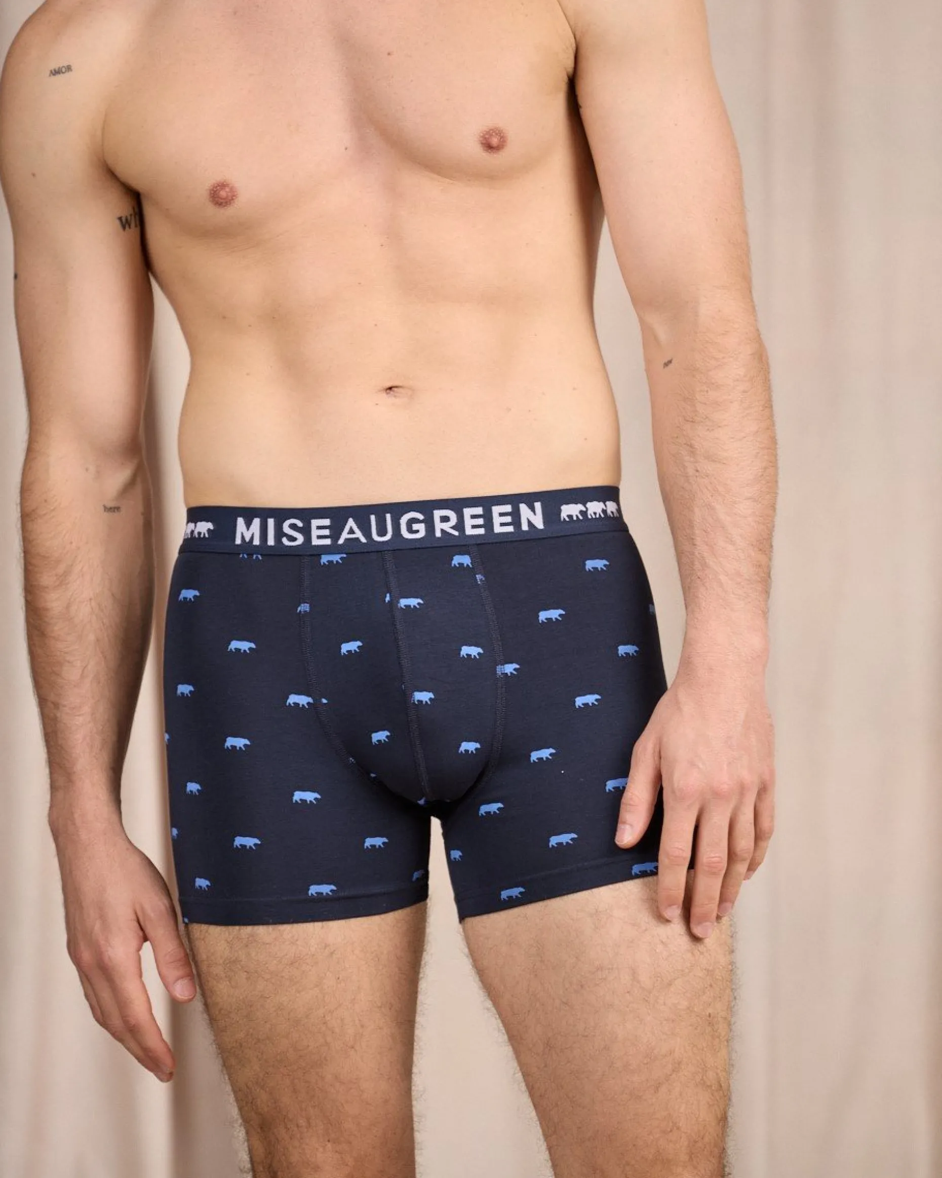 Réalisé en coton avec une pointe d’élasthanne, ce boxer est à la fois doux, résistant et respirant. Pour assurer un maintien parfait du matin au soir, il possède une ceinture élastiquée et logotée. Avec son imprimé bleu marine Mise au Green exclusif, il sera votre allié fantaisie au quotidien. Un sous-vêtement à (s’)offrir d’urgence pour un confort permanent !