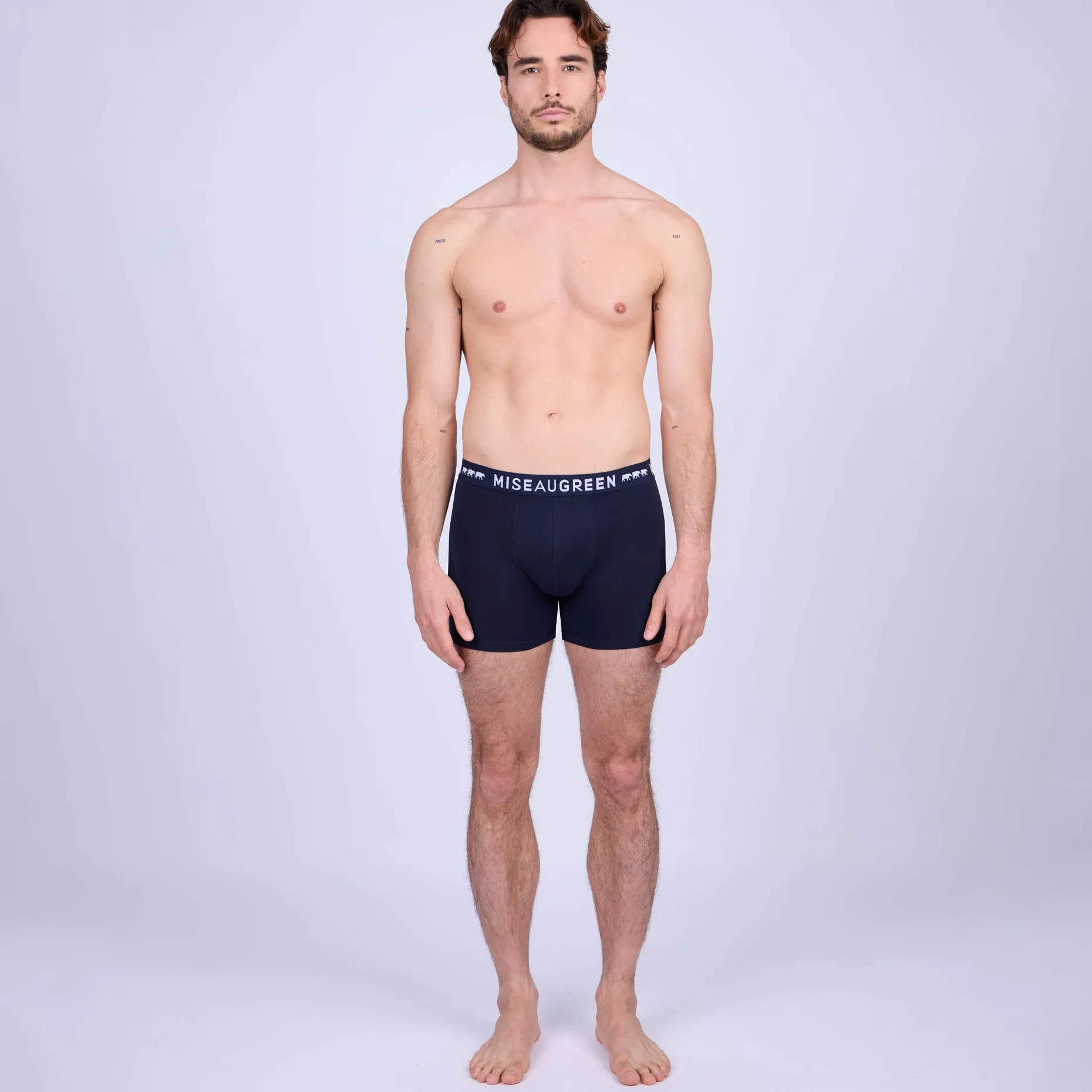 Agréable à porter au quotidien, ce boxer bleu marine présente des finitions impeccables. Son design simple, mais raffiné, se démarque par sa ceinture élastiquée siglée Mise au Green. Pour garantir douceur et confort, ce basique uni est composé en coton avec 5 % d’élasthanne. Un sous-vêtement classique qui a tout bon !