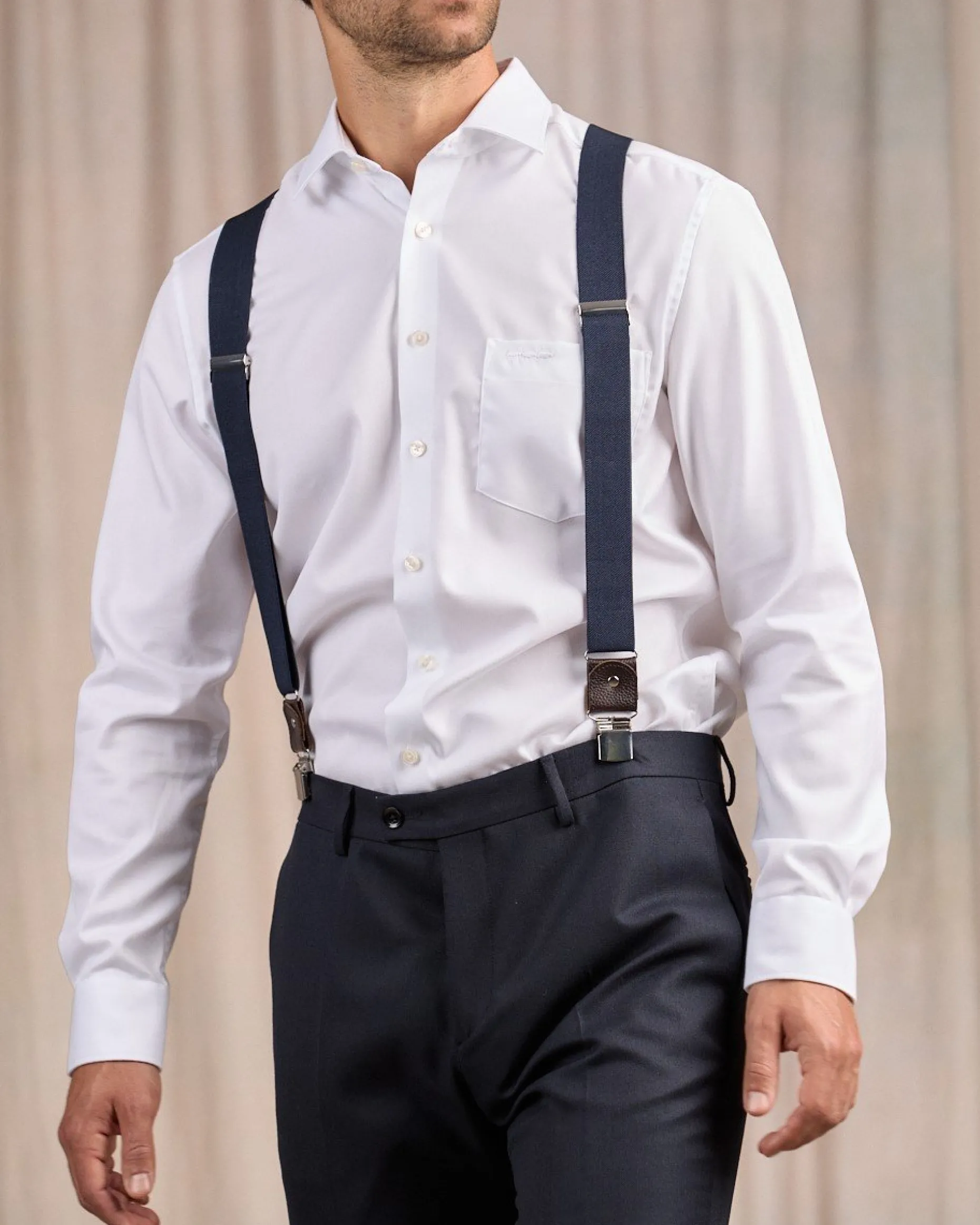 Pour une tenue à la fois chic et détendue, optez pour des bretelles ! Plus que jamais tendances, elles reviennent sur le devant de la scène pour pimenter vos looks quotidiens. Mise au Green propose cet accessoire dans un coloris bleu marine pour s’adapter à tous vos pantalons. Confortables, ces bretelles sont ajustables et se fixent grâce à des clips.