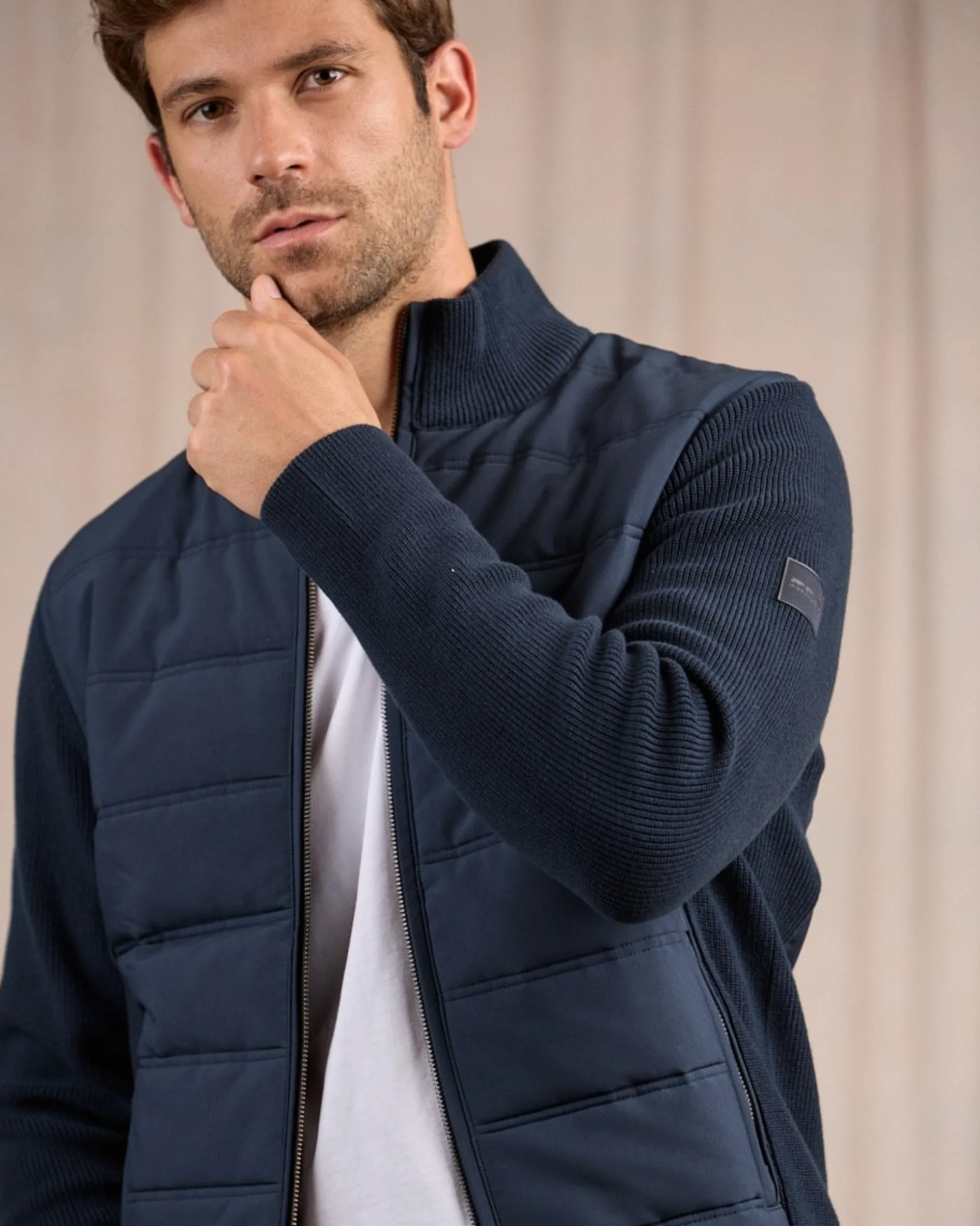 Parfait compromis entre le sweat et la doudoune, ce cardigan bleu marine pour homme est déjà incontournable ! Polyvalent et stylé, il se porte en toutes circonstances pour une allure chic et décontractée. Conçu entièrement en coton, il garantit un confort thermique incomparable. Son effet matelassé, son col camionneur, sa coupe droite et ses deux poches latérales font de lui un véritable essentiel du vestiaire. Vous allez adorer l’enfiler à la moindre occasion !