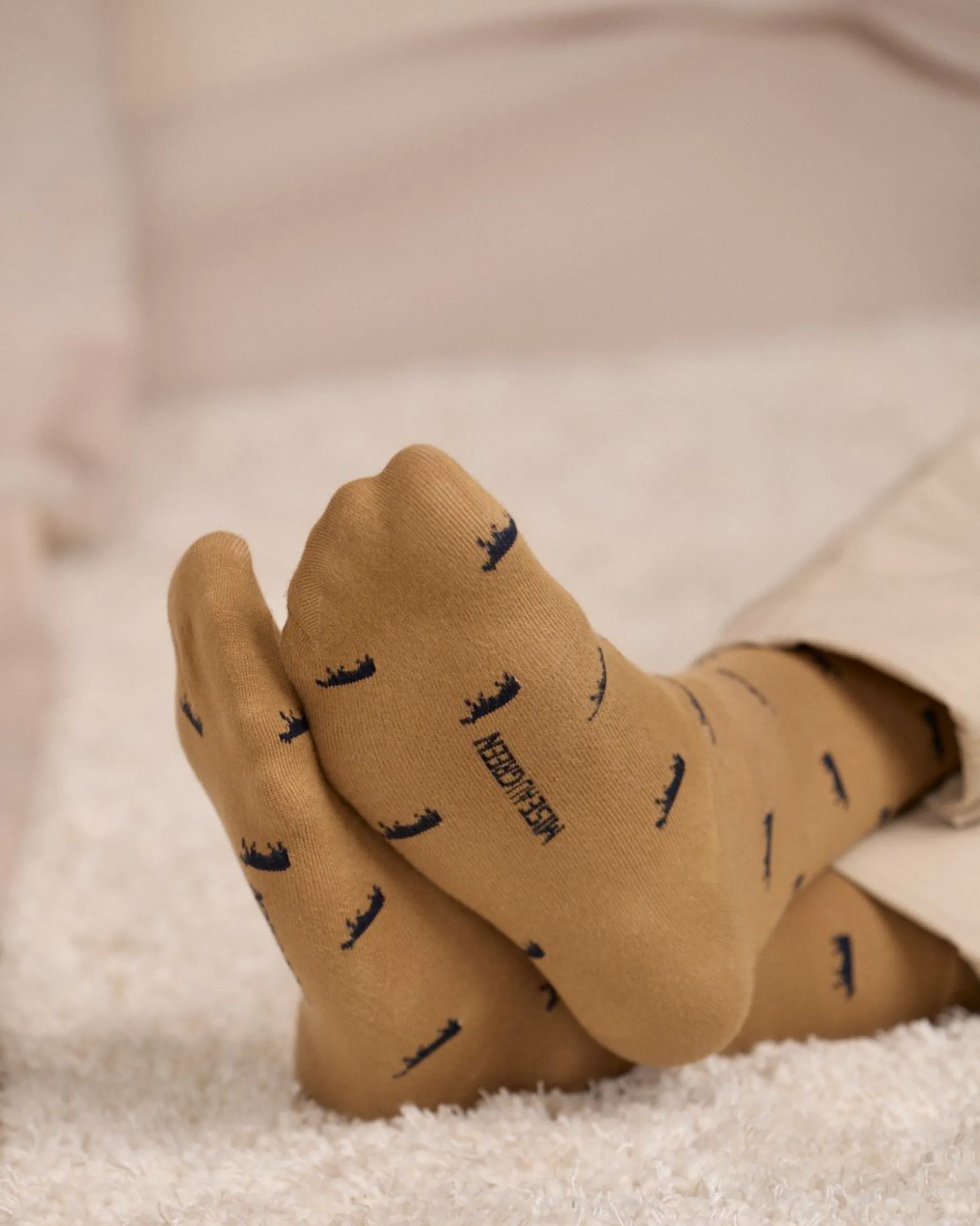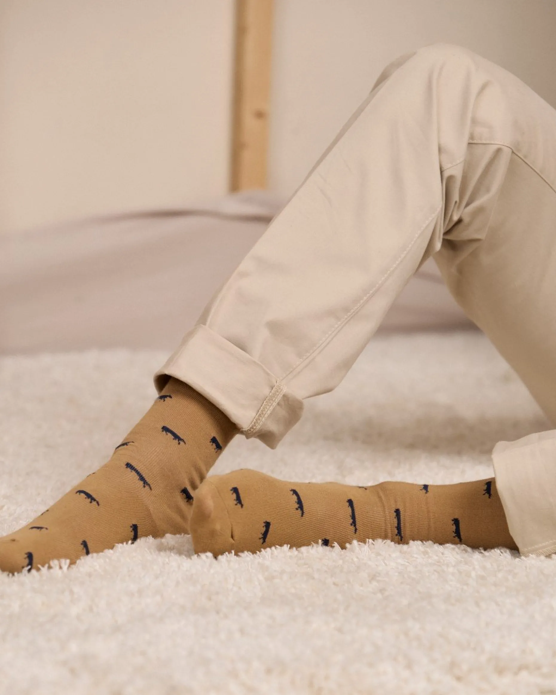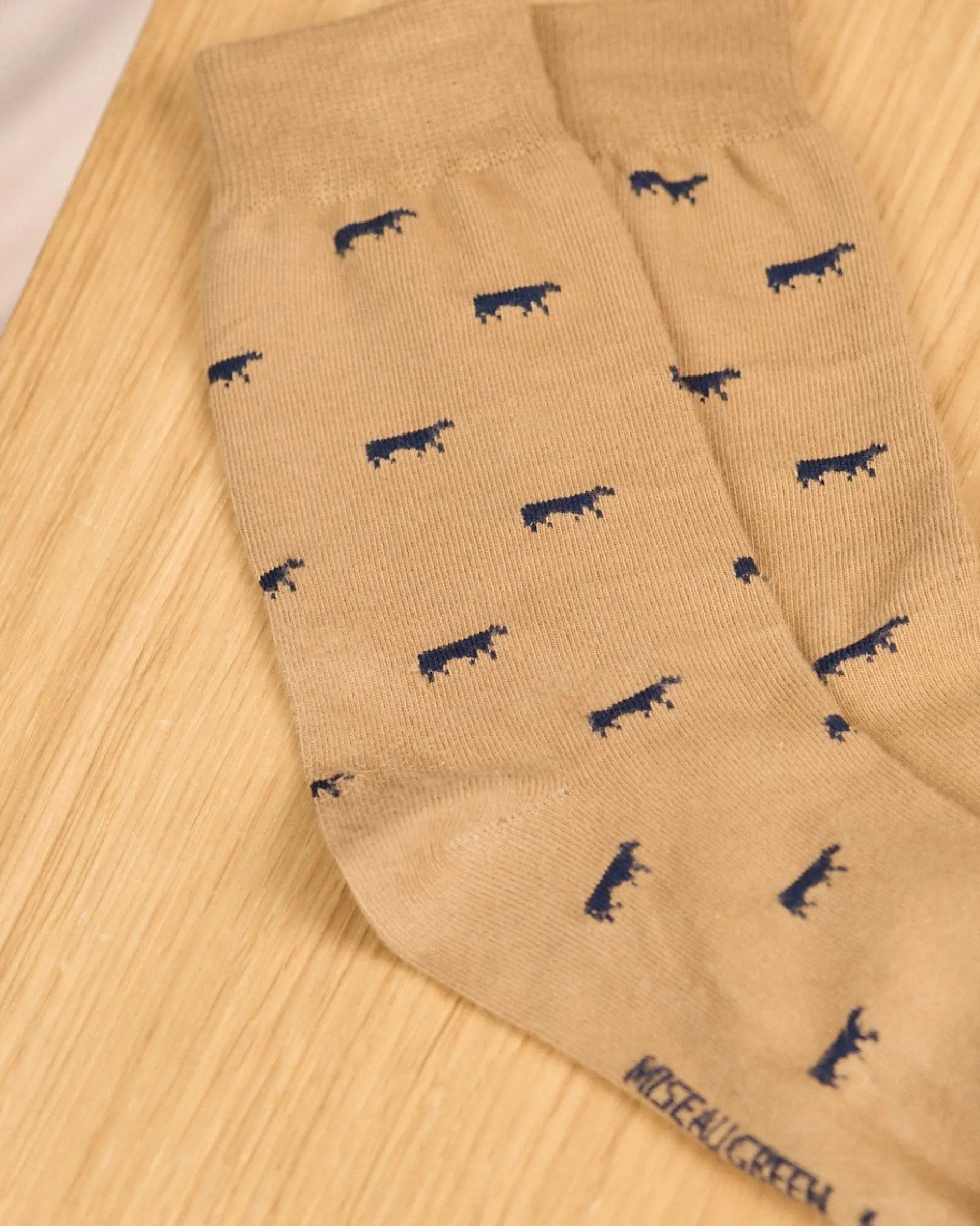 Des petites vaches s’invitent sur vos pieds avec ces chaussettes pour homme ! En plus d’apporter une touche de fantaisie à votre tenue, elles sont aussi très confortables. Leur tissu élastique et doux – mélange de coton, polyamide et élasthanne – ainsi que ses bords-côtes larges permettent un maintien confortable sur la jambe. Fini les chaussettes trop sobres : osez son coloris beige ! Petite anecdote : la vache est l’animal emblématique de notre marque Mise au Green en hommage au grand-père de nos fondateurs qui fut marchand de bestiaux. Il n’a donc pas été choisi au hasard sur cet accessoire original !