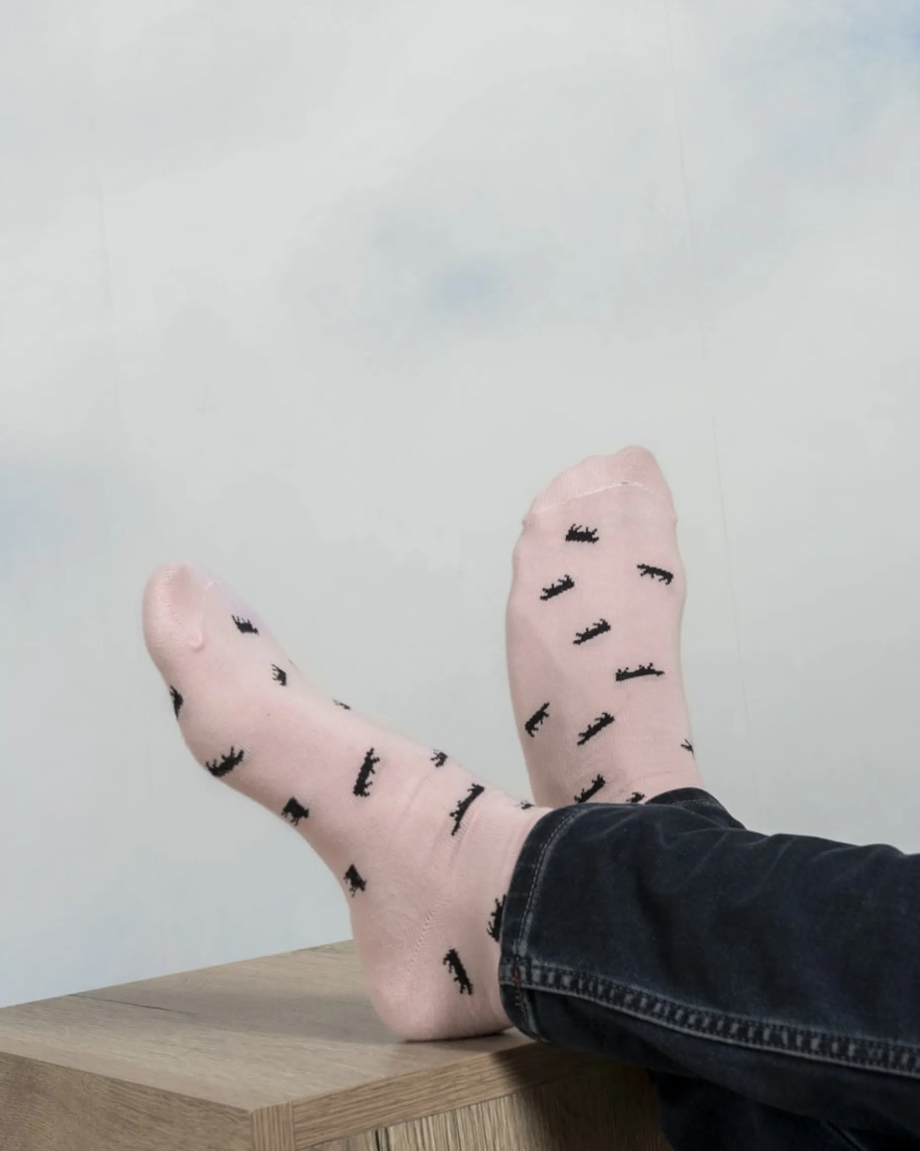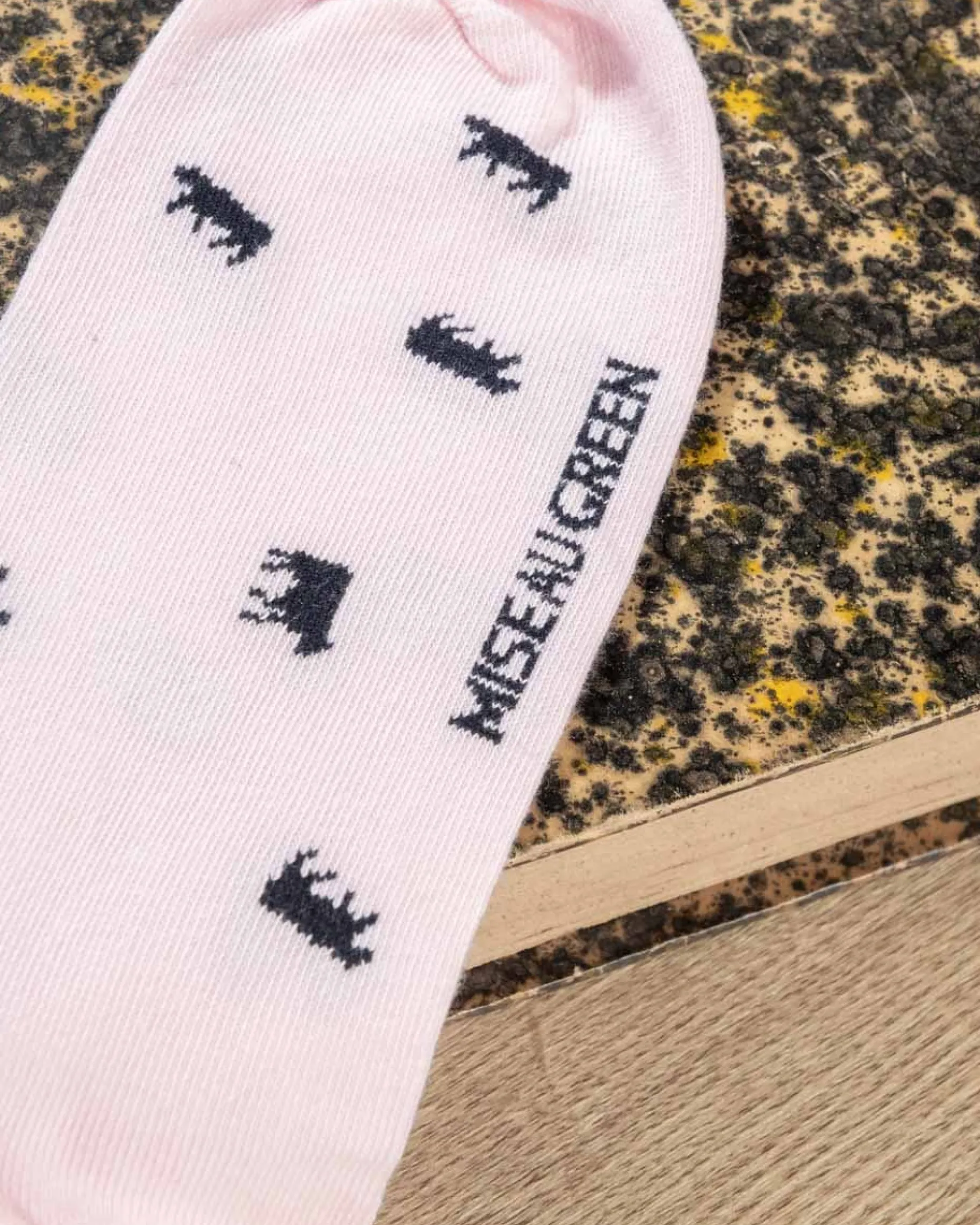 Des petites vaches s’invitent sur vos pieds avec ces chaussettes pour homme ! En plus d’apporter une touche de fantaisie à votre tenue, elles sont aussi très confortables. Leur tissu élastique et doux – mélange de coton, polyamide et élasthanne – ainsi que ses bords-côtes larges permettent un maintien confortable sur la jambe. Fini les chaussettes trop sobres : osez son coloris rose clair ! Petite anecdote : la vache est l’animal emblématique de notre marque Mise au Green en hommage au grand-père de nos fondateurs qui fut marchand de bestiaux. Il n’a donc pas été choisi au hasard sur cet accessoire original !