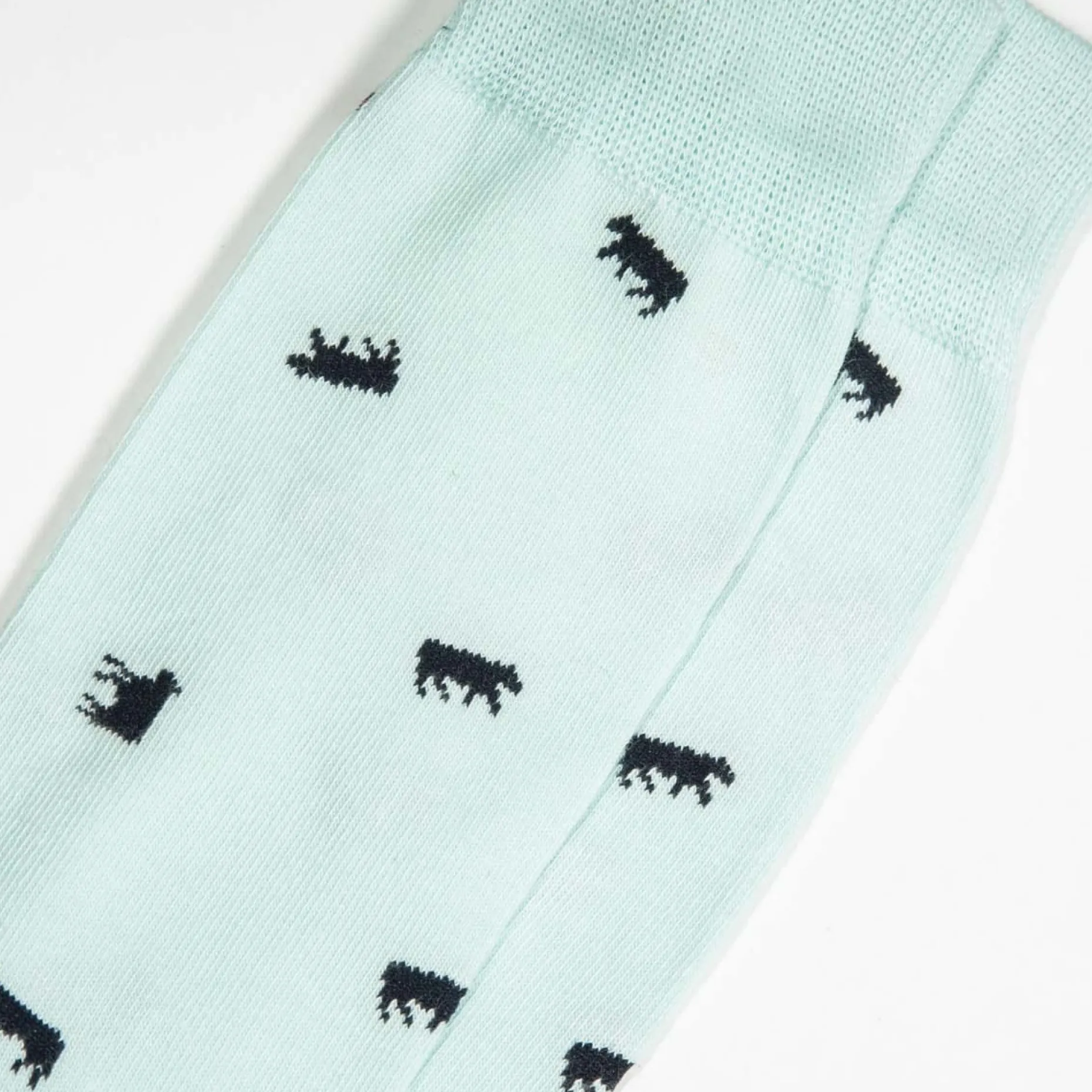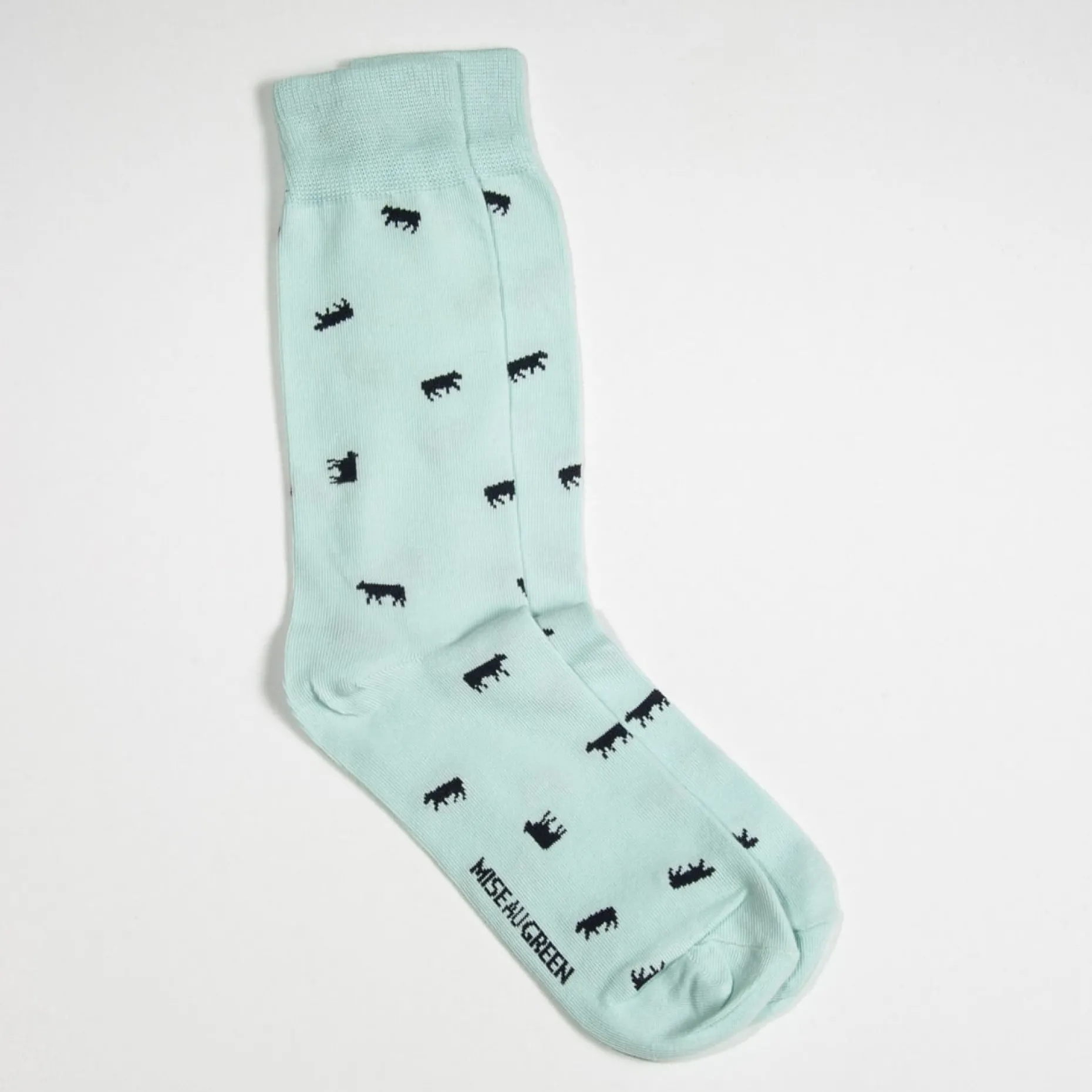 Des petites vaches s’invitent sur vos pieds avec ces chaussettes pour homme ! En plus d’apporter une touche de fantaisie à votre tenue, elles sont aussi très confortables. Leur tissu élastique et doux – mélange de coton, polyamide et élasthanne – ainsi que ses bords-côtes larges permettent un maintien confortable sur la jambe. Fini les chaussettes trop sobres : osez son coloris vert eau ! Petite anecdote : la vache est l’animal emblématique de notre marque Mise au Green en hommage au grand-père de nos fondateurs qui fut marchand de bestiaux. Il n’a donc pas été choisi au hasard sur cet accessoire original !