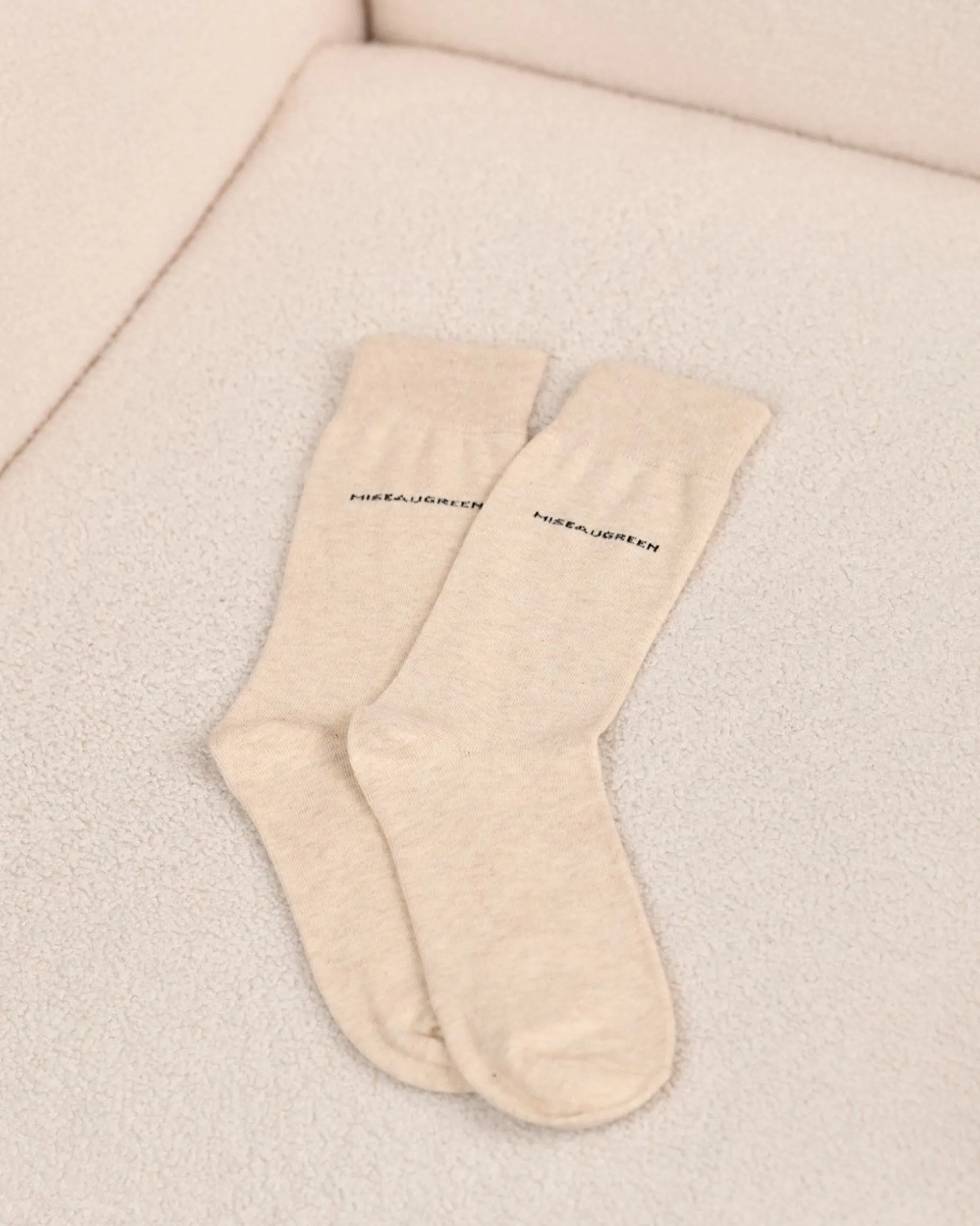 Avec sa teinte beige, cette paire de chaussettes unie insuffle de la fraîcheur à vos tenues ! Cet accessoire comprend des bords-côtes élastiqués et une signature contrastée Mise au Green. Sa matière douce et résistante à base de coton procure un confort optimal au quotidien.
