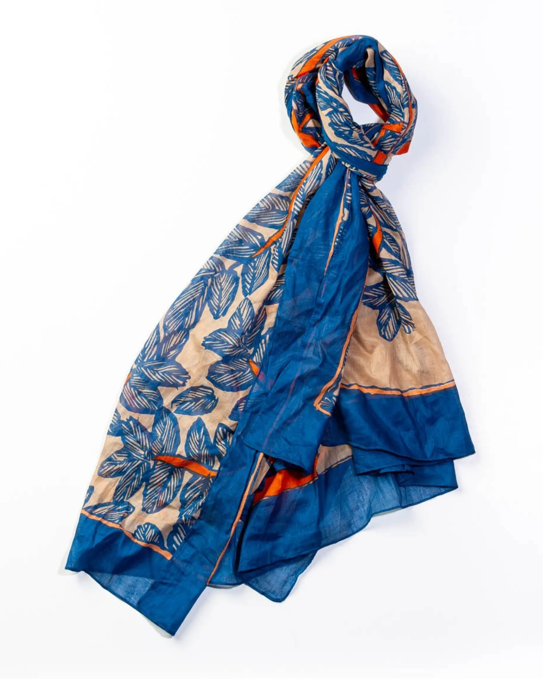 Ce chèche se pare d’un imprimé graphique exclusivement développé pour notre marque française. Ses teintes bleues et orange et ses motifs feuillages apportent à ce foulard masculin une touche de fantaisie à la fois estivale et originale. Avec un jean, un bermuda ou un chino, ce chèche vous promet d’attirer tous les regards. Pour plus de confort et de légèreté cet accessoire est intégralement confectionné en coton de qualité supérieure. Noué avec soin ou nonchalamment glissé sur un t-shirt, ce chèche s’impose comme la touche finale de vos looks printemps-été.