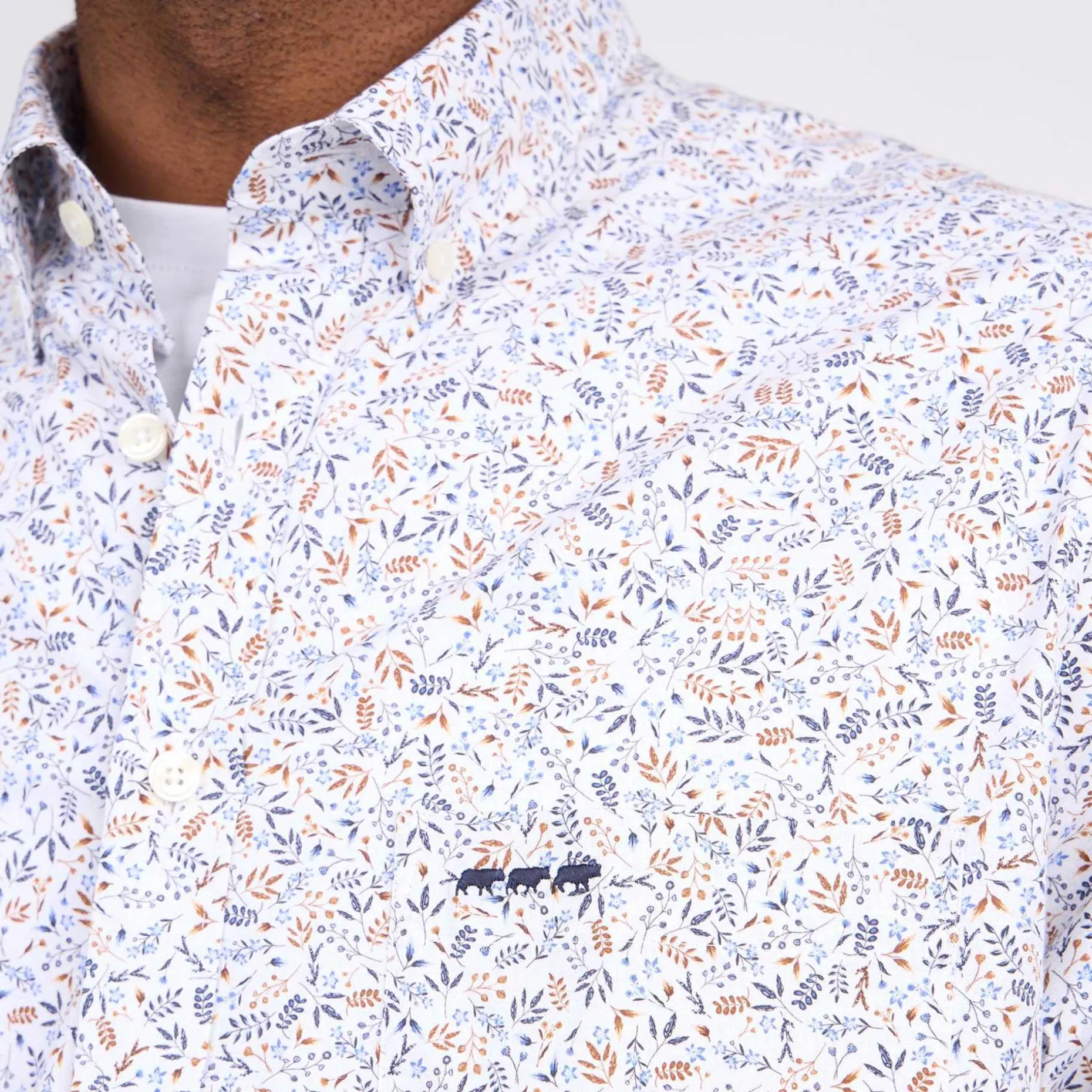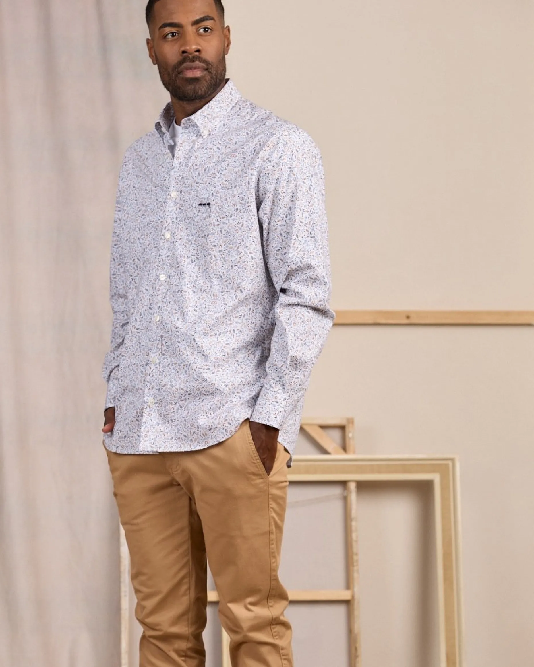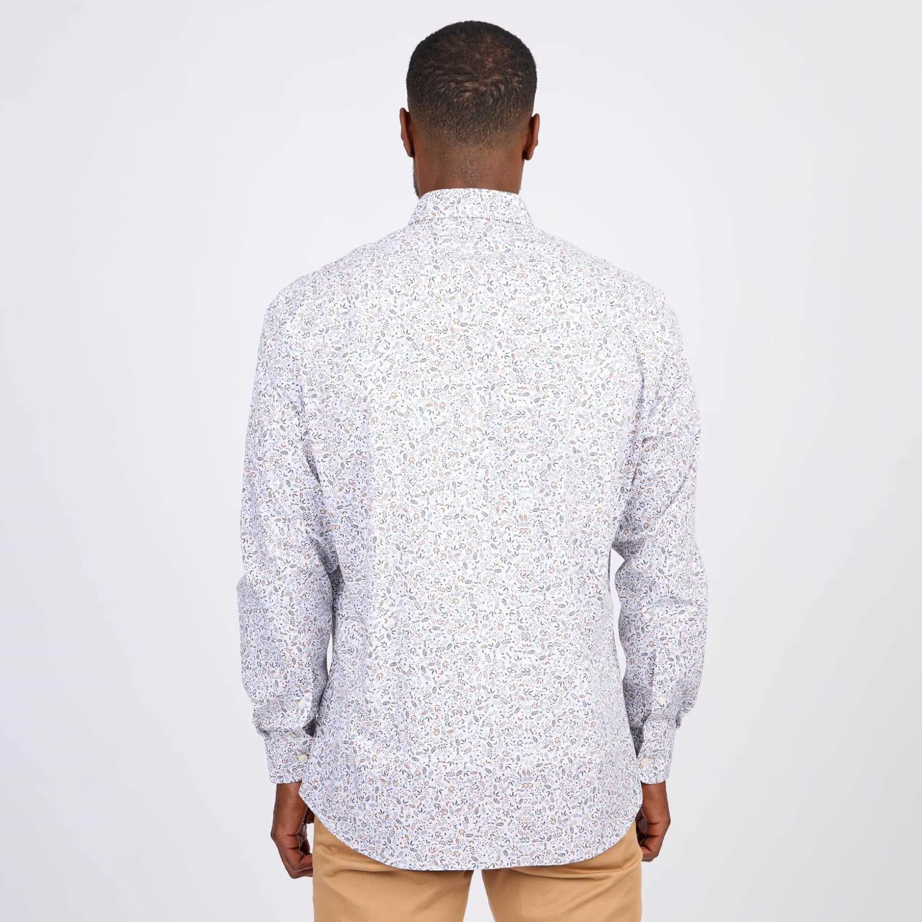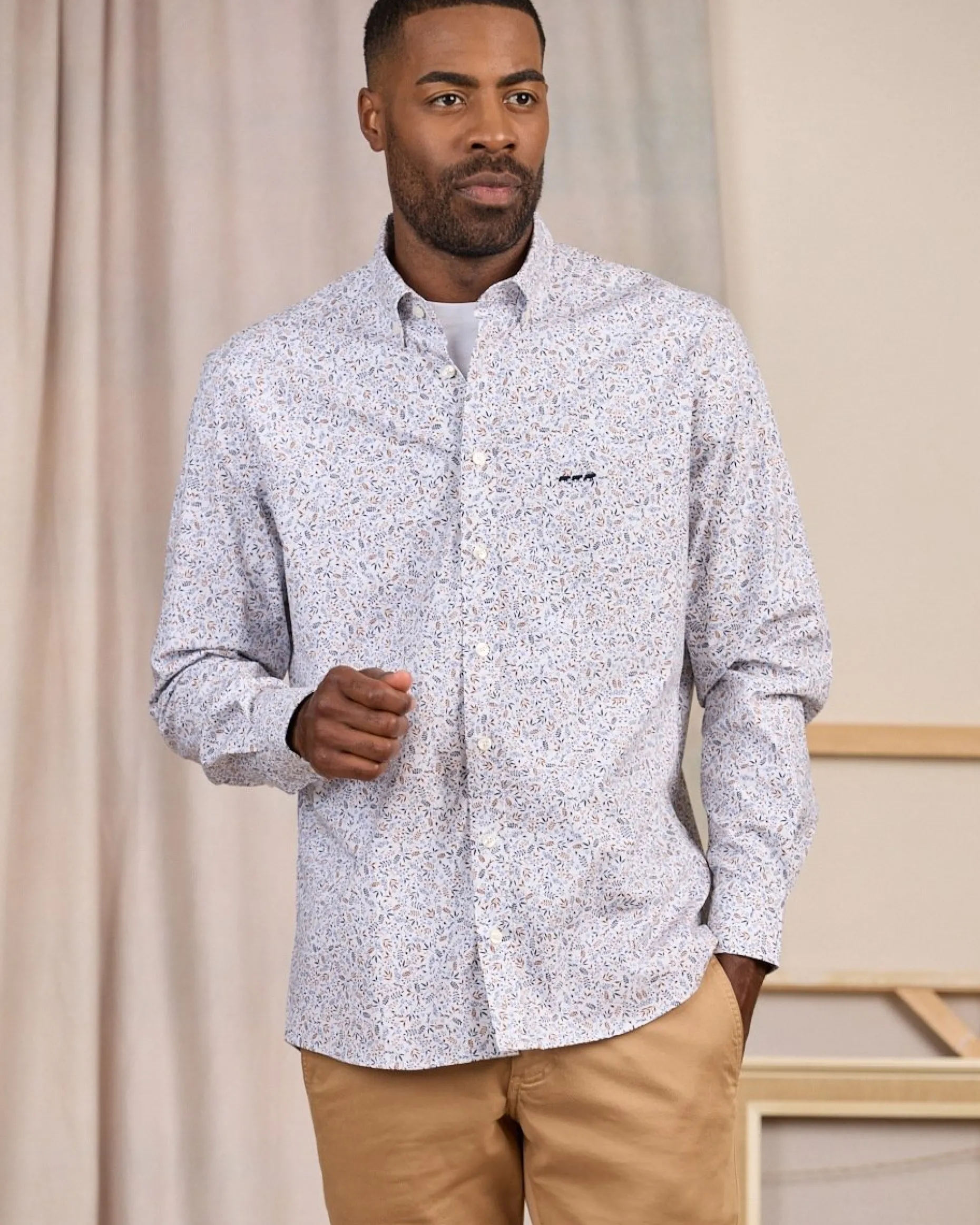 Quelle que soit l’occasion, cette chemise pour homme fera sensation ! Son délicat imprimé feuillage sur fond blanc apportera une touche de fraîcheur à votre allure. Pour que vous soyez à l’aise au quotidien, elle est fabriquée en coton avec une pointe d’élasthanne. Un col boutonné, une poche plaquée sur la poitrine et une broderie « 3 vaches » subliment son design tendance. C’est la pièce maîtresse pour des tenues à la fois chics et décontractées !