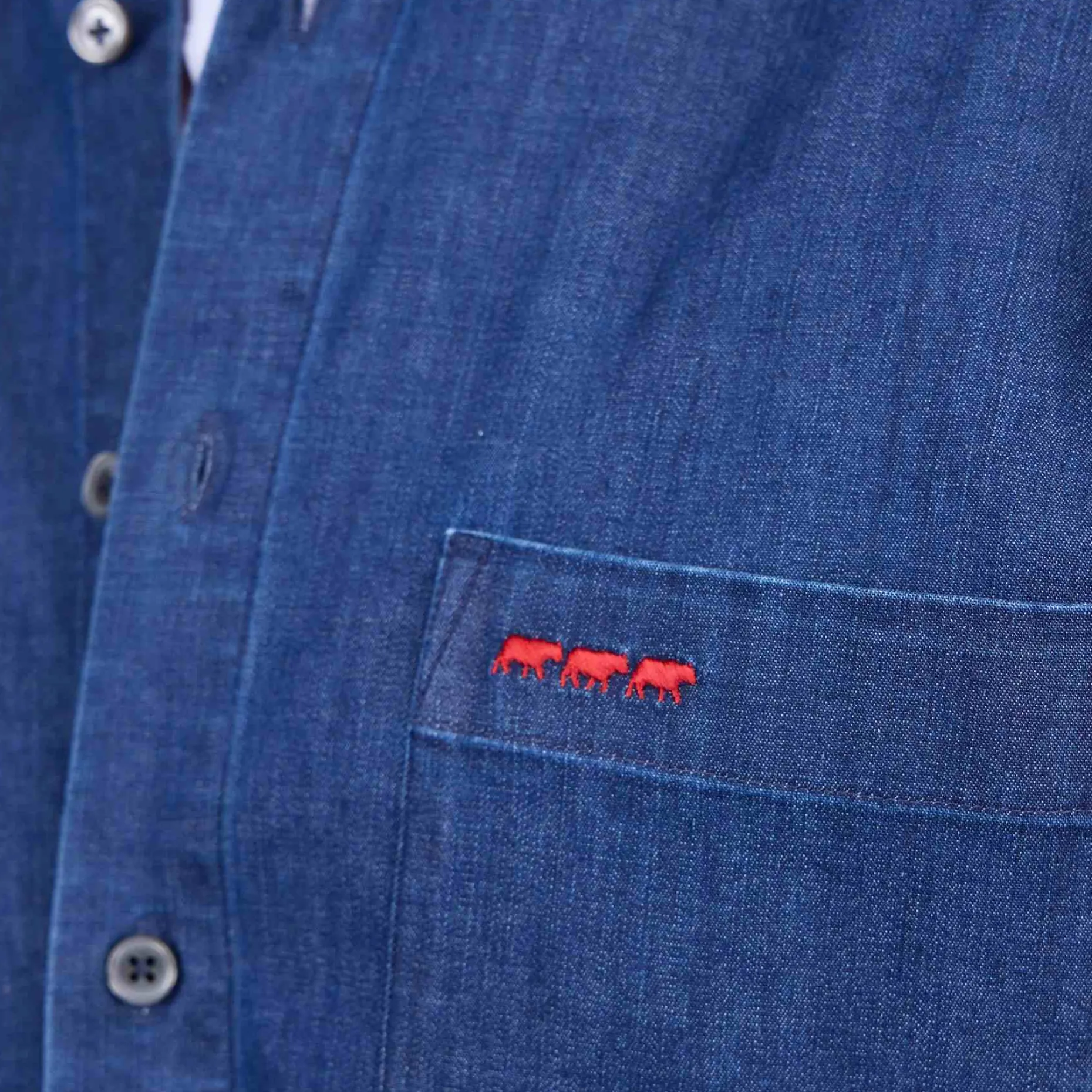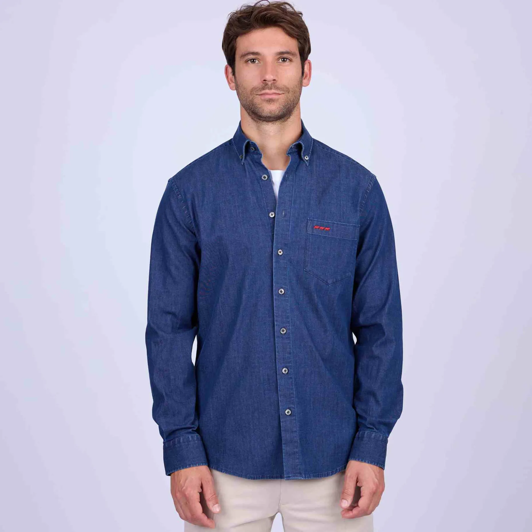 Une chemise aspect denim qui séduit à tous les coups ! Avec sa teinte bleue, elle garantit un style impeccable et convient à toutes les occasions. Réalisé à partir de coton, ce modèle met l’accent sur l’aisance et le confort. Il présente une poche sur la poitrine et une broderie contrastée 3 vaches, la signature de Mise au Green. Enfilez-la au quotidien pour des tenues décontractées et toujours classes !