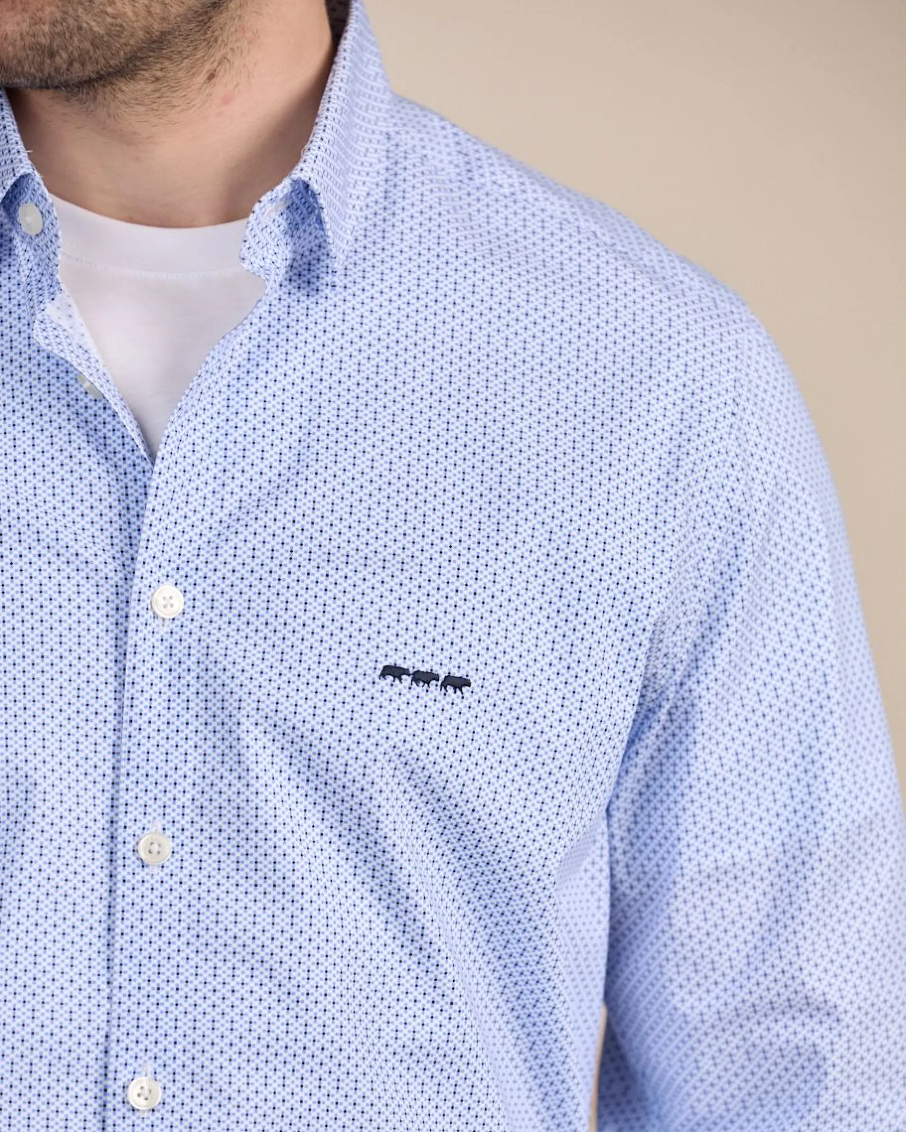 Grâce à son design sobre et moderne, cette chemise pour homme s’adapte à toutes les occasions. Pour une allure décontractée ou formelle, mais toujours soignée, elle possède un imprimé bleu tendance et une broderie contrastée « 3 vaches » sur la poitrine. Sa matière en coton offre une sensation de douceur luxueuse. Une fois adoptée, elle ne manquera pas de marquer les esprits !