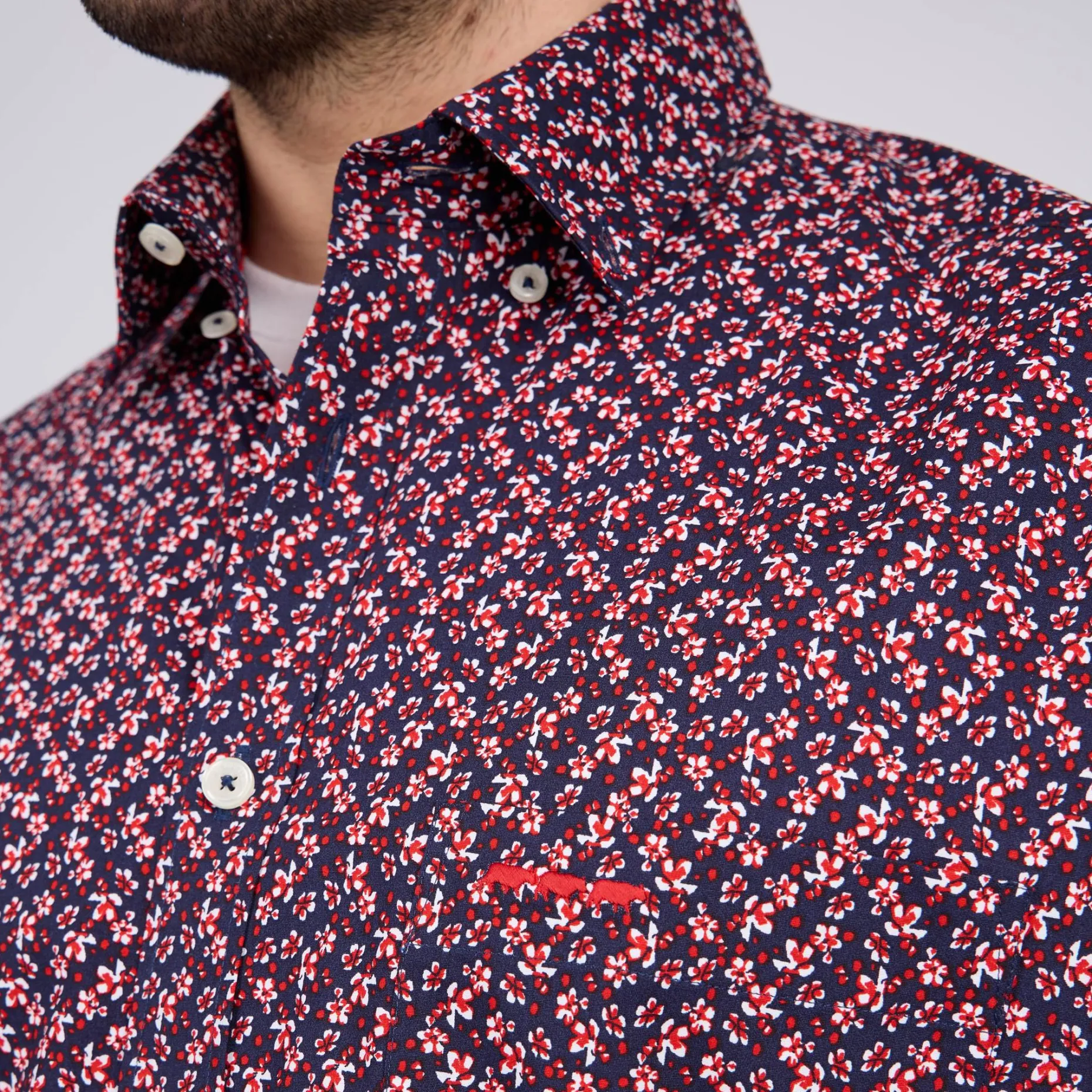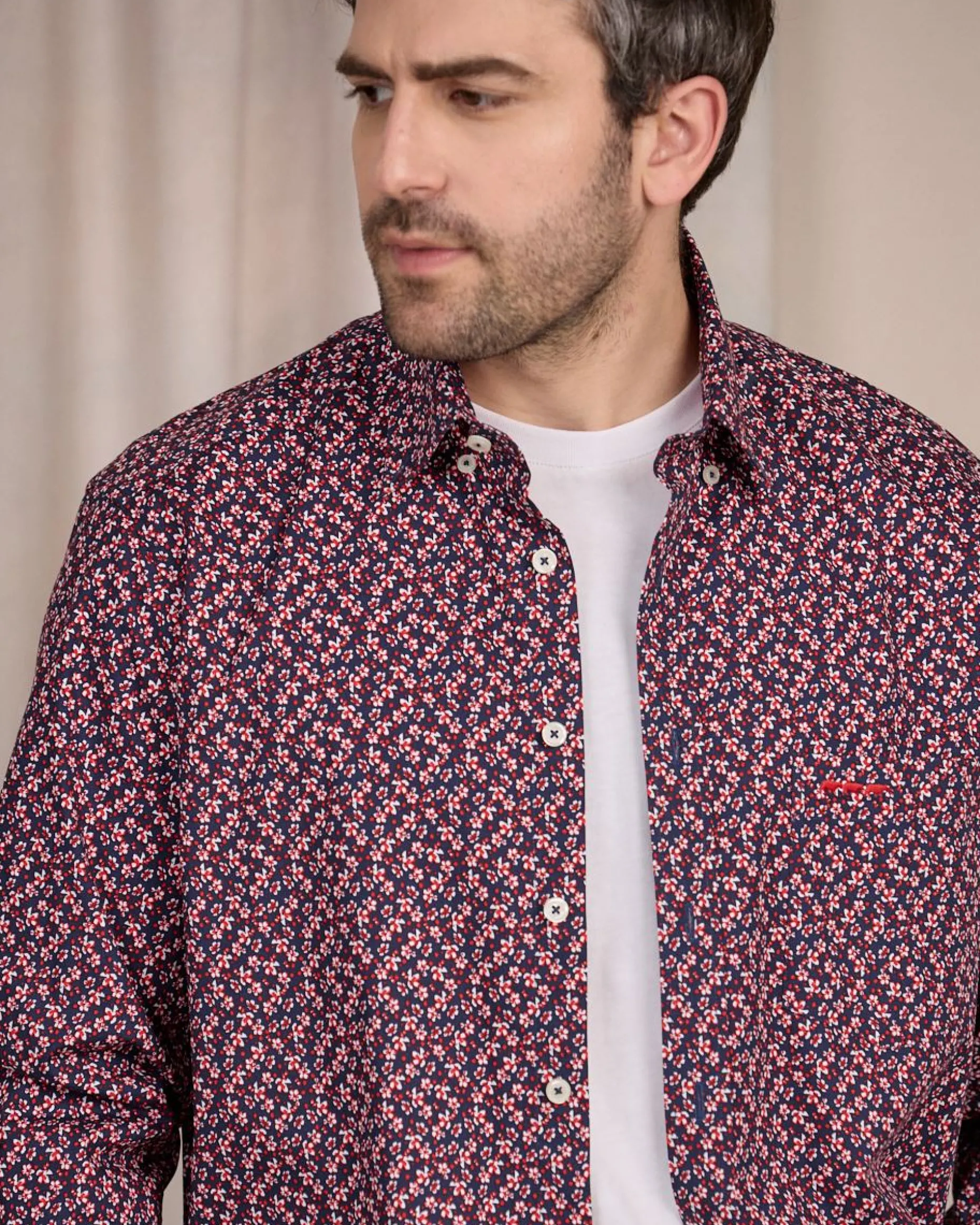 Soulignez votre allure avec chic avec cette chemise à manches longues. Rehaussé d’un élégant imprimé floral et d’un coloris bleu marine, ce modèle sort du lot ! Sa matière en coton garantit un confort optimal au quotidien. Associez-le avec un jean pour un look frais et chic ! Une poche poitrine et le logo emblématique Mise au Green « 3 vaches » apportent la touche finale.