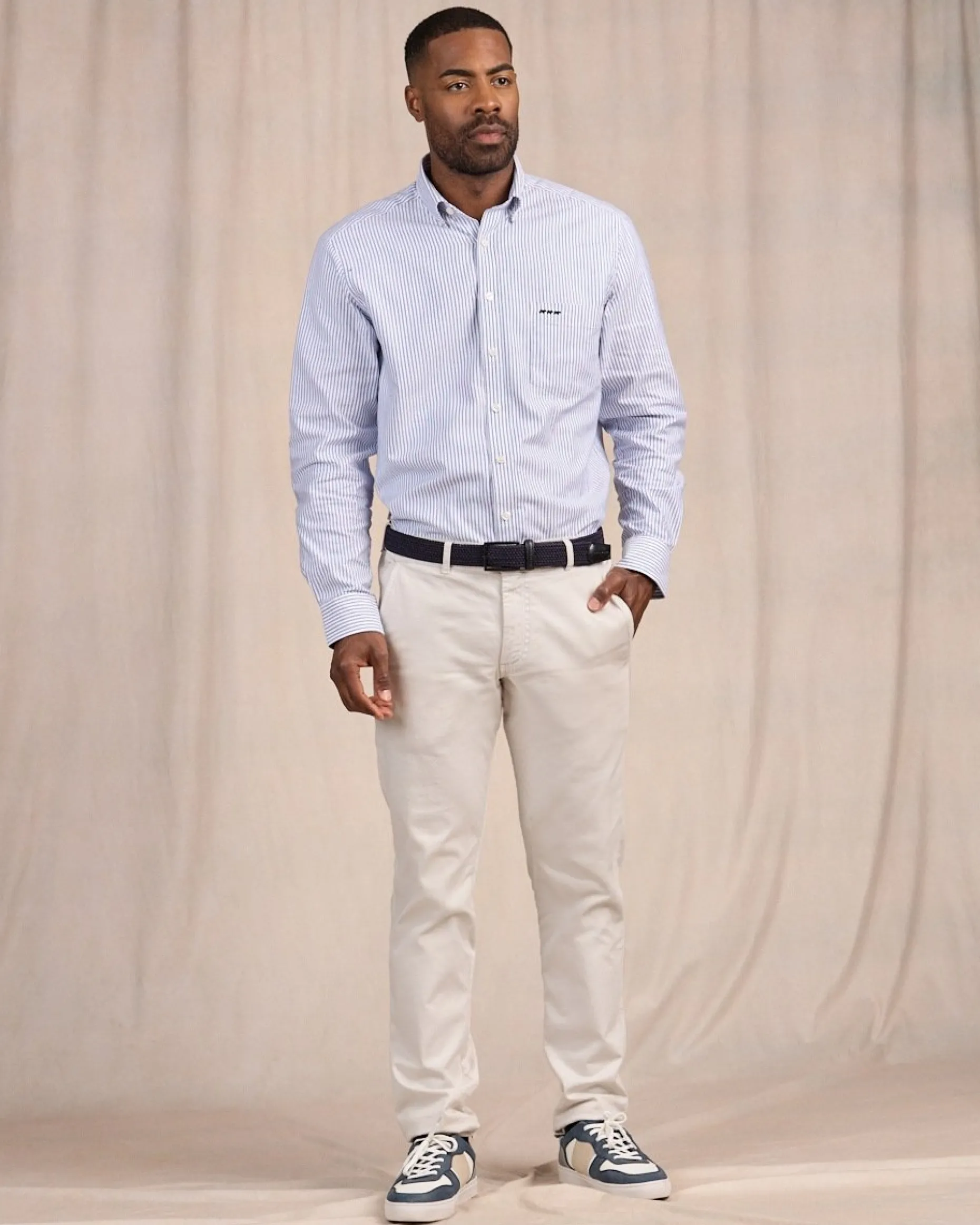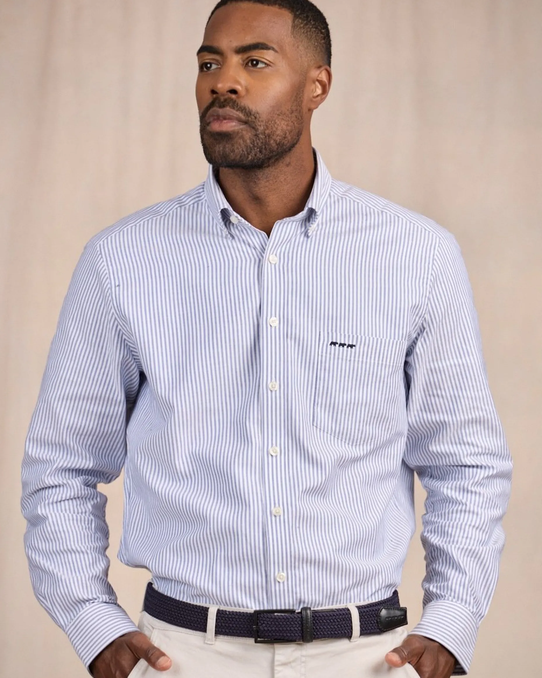 Promesse d’une allure chic, cette chemise à rayures est un basique ! Son design tendance et polyvalent se porte tout au long de l’année pour rehausser vos tenues. On aime ses rayures bleues, sa poche sur la poitrine et son logo brodé et contrasté « 3 vaches » pour un supplément de style. Soyeux et agréable à porter, ce modèle est réalisé 100 % en coton. Votre vestiaire va l’adorer !