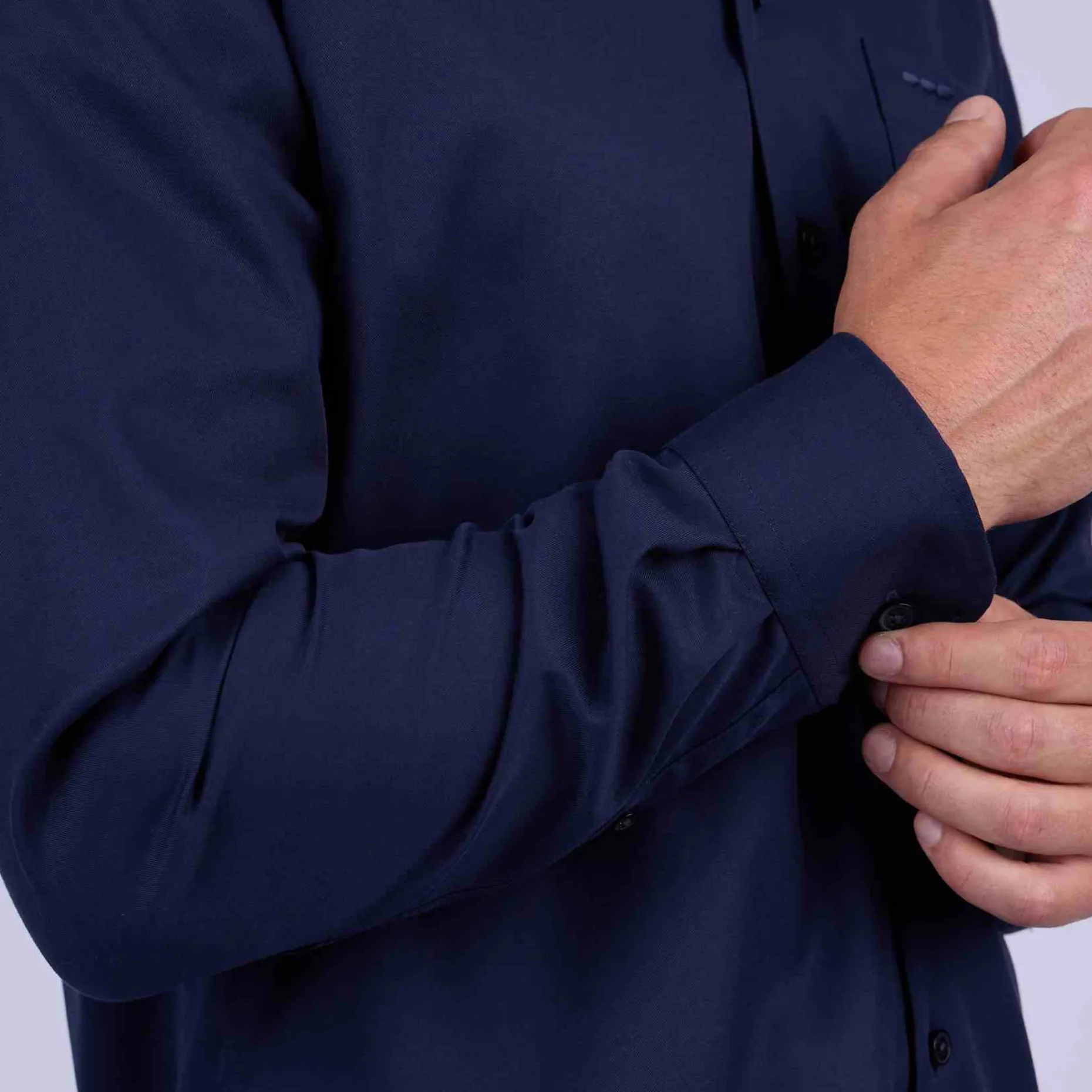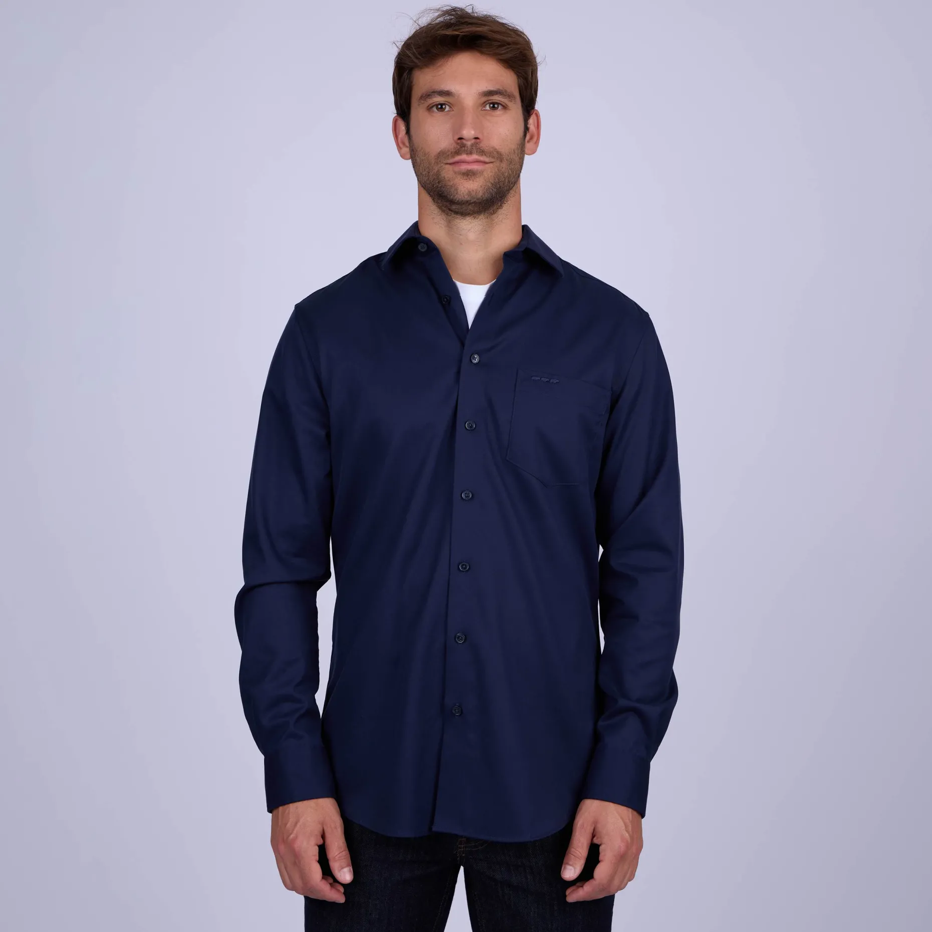 Simple et efficace, cette chemise unie est un basique du vestiaire masculin ! Ce modèle 100 % coton se démarque par sa douceur et sa brillance. Confortable, il est décliné dans un élégant coloris bleu marine pour des tenues élégantes et qui s’associent avec tout. Des bas de manches boutonnés, une poche sur la poitrine et un logo brodé ton sur ton « 3 vaches » insufflent un supplément de style à cet essentiel. Pour sortir, pour aller au travail ou pour se détendre à la maison : il marche à tous les coups !