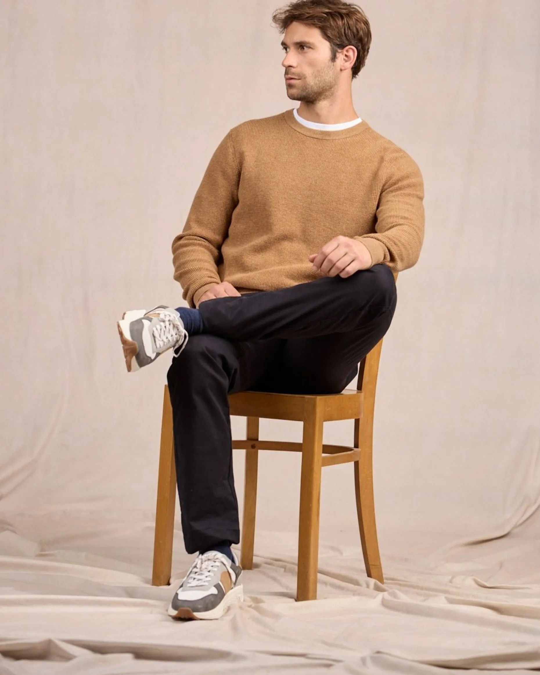 Réalisé en coton, ce pantalon chino noir vous suit au quotidien pour un style chic et décontracté. Les détails qui font la différence ? Sa taille élastiquée pour un confort accru et ses 5 poches. Des poches à l’avant, des poches passepoilées à l’arrière et des passants pour ceinture complètent ce modèle iconique. Avec sa coupe soignée, il épouse parfaitement la silhouette et peut être porté dans une variété d’occasions. C’est l’essentiel qu’il vous manquait pour une allure sophistiquée !
