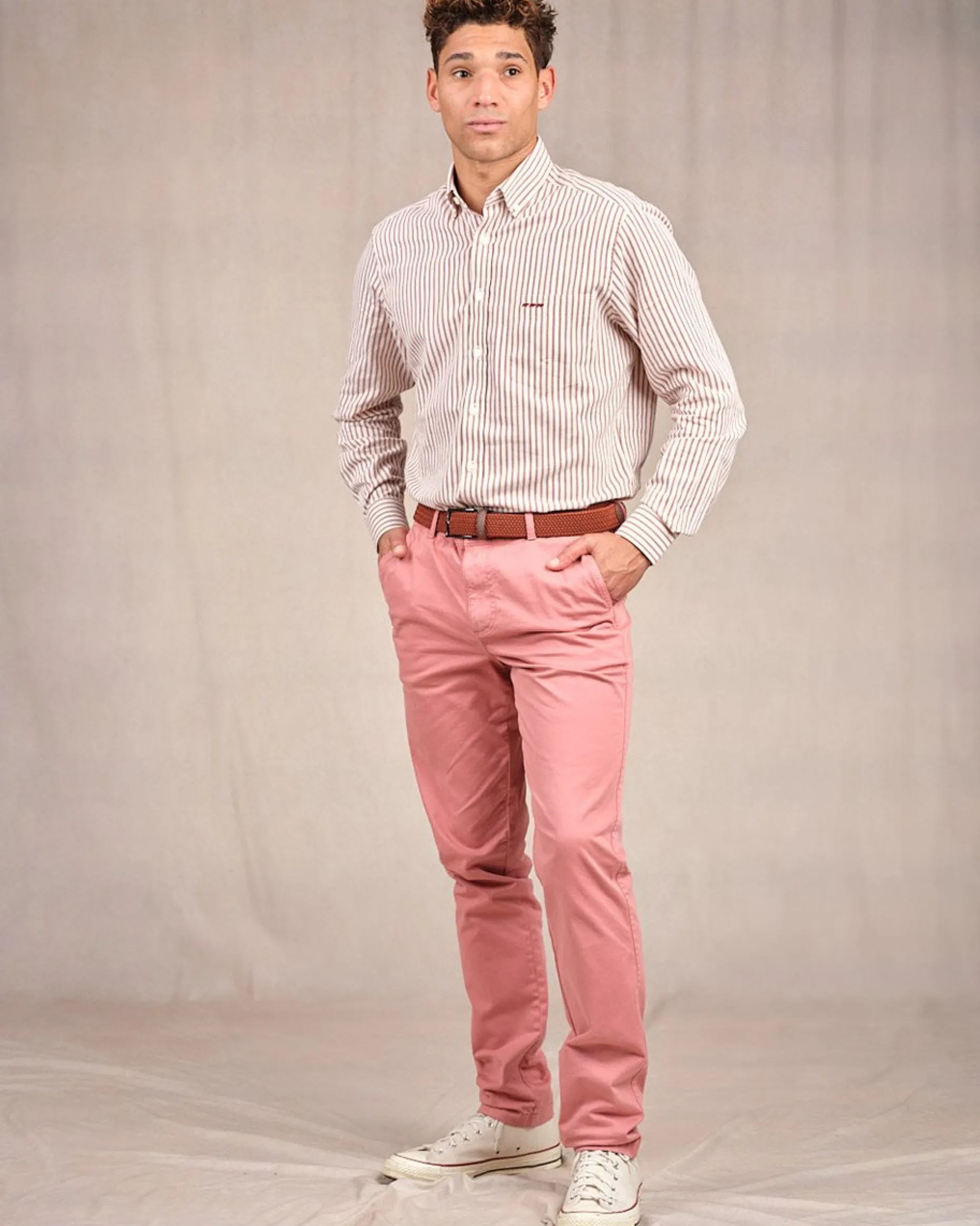 Réalisé en coton, ce pantalon chino rose vous suit au quotidien pour un style chic et décontracté. Les détails qui font la différence ? Sa taille élastiquée pour un confort accru et ses 5 poches. Des poches à l’avant, des poches passepoilées à l’arrière et des passants pour ceinture complètent ce modèle iconique. Avec sa coupe soignée, il épouse parfaitement la silhouette et peut être porté dans une variété d’occasions. C’est l’essentiel qu’il vous manquait pour une allure sophistiquée !