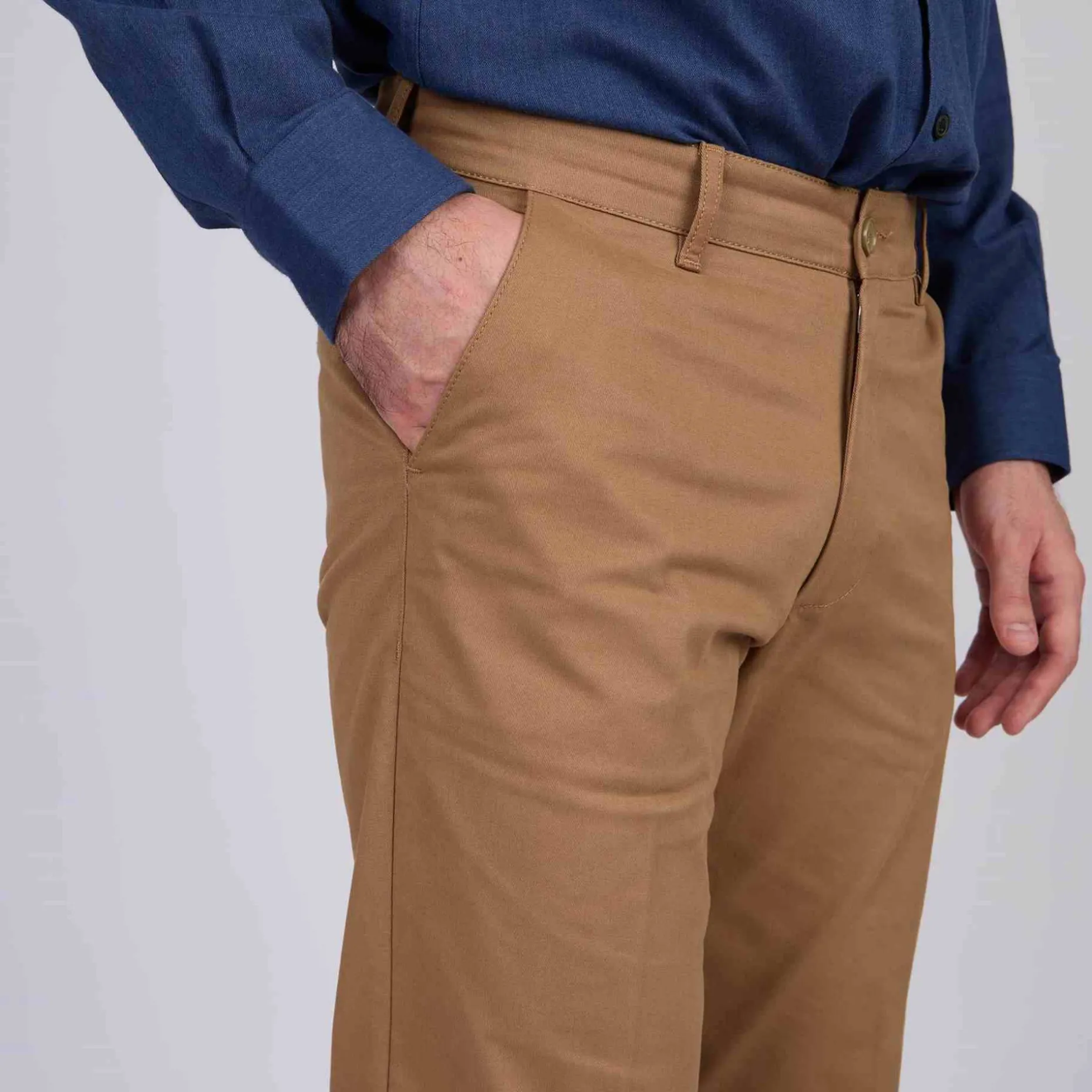 À la fois élégant et décontracté, le pantalon chino fait partie intégrante de tous les placards ! Notre modèle Mise au Green est décliné dans un coloris havanne qui permet de créer une variété de looks différents. Pour une soirée chic, un week-end entre amis ou une journée au travail : il s’adapte à toutes les occasions. Très confortable et légèrement stretch, il est conçu avec du coton et une pointe d’élasthanne. Son atout ? Sa coupe droite qui crée une silhouette harmonieuse. Pour plus de style, ce pantalon comprend deux poches sur le devant, des passants pour ceinture et deux fausses poches à l’arrière.