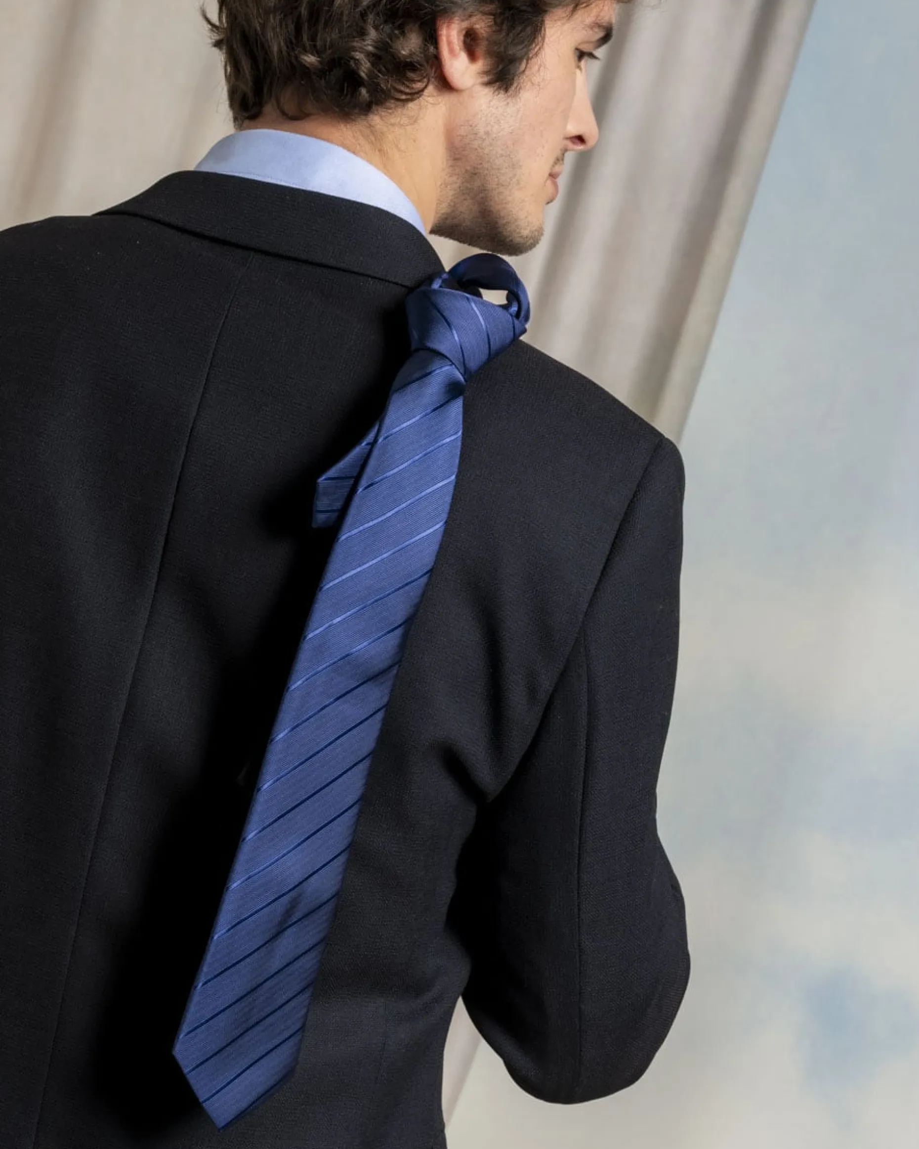 Affirmez votre style avec la cravate à rayures de Mise au Green. Élégante et intemporelle, elle complète votre tenue avec sophistication et classe.