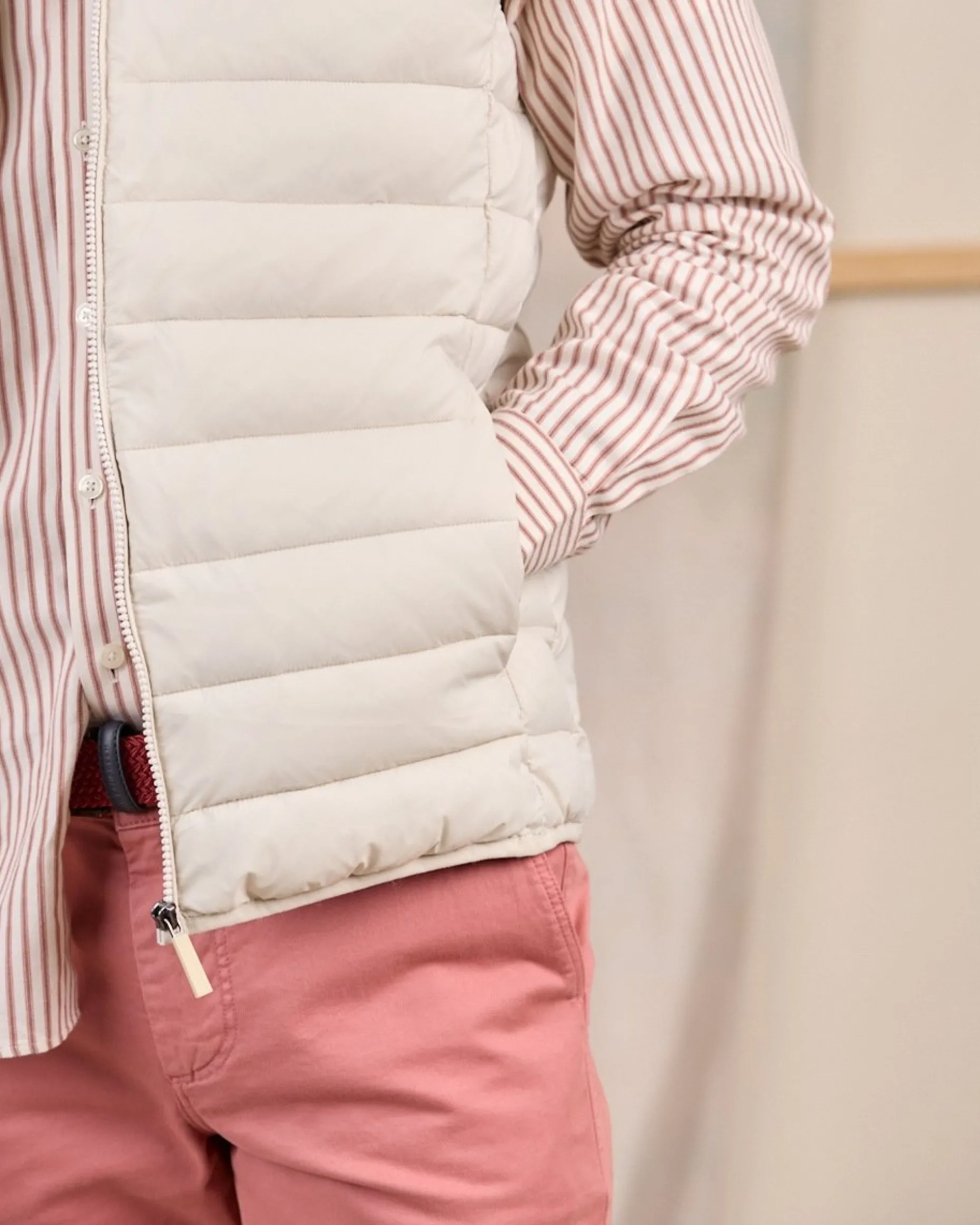 Mise au Green réinvente la doudoune sans manches avec du polyester recyclé et un coloris uni blanc cassé ultra tendance. Facile à porter, elle s’enfile aussi bien lors d’une sortie que pour aller au travail. Ce modèle chic et décontracté possède un col montant, une fermeture zippée et deux poches latérales. Associez son design matelassé avec tous vos pantalons et pulls favoris !