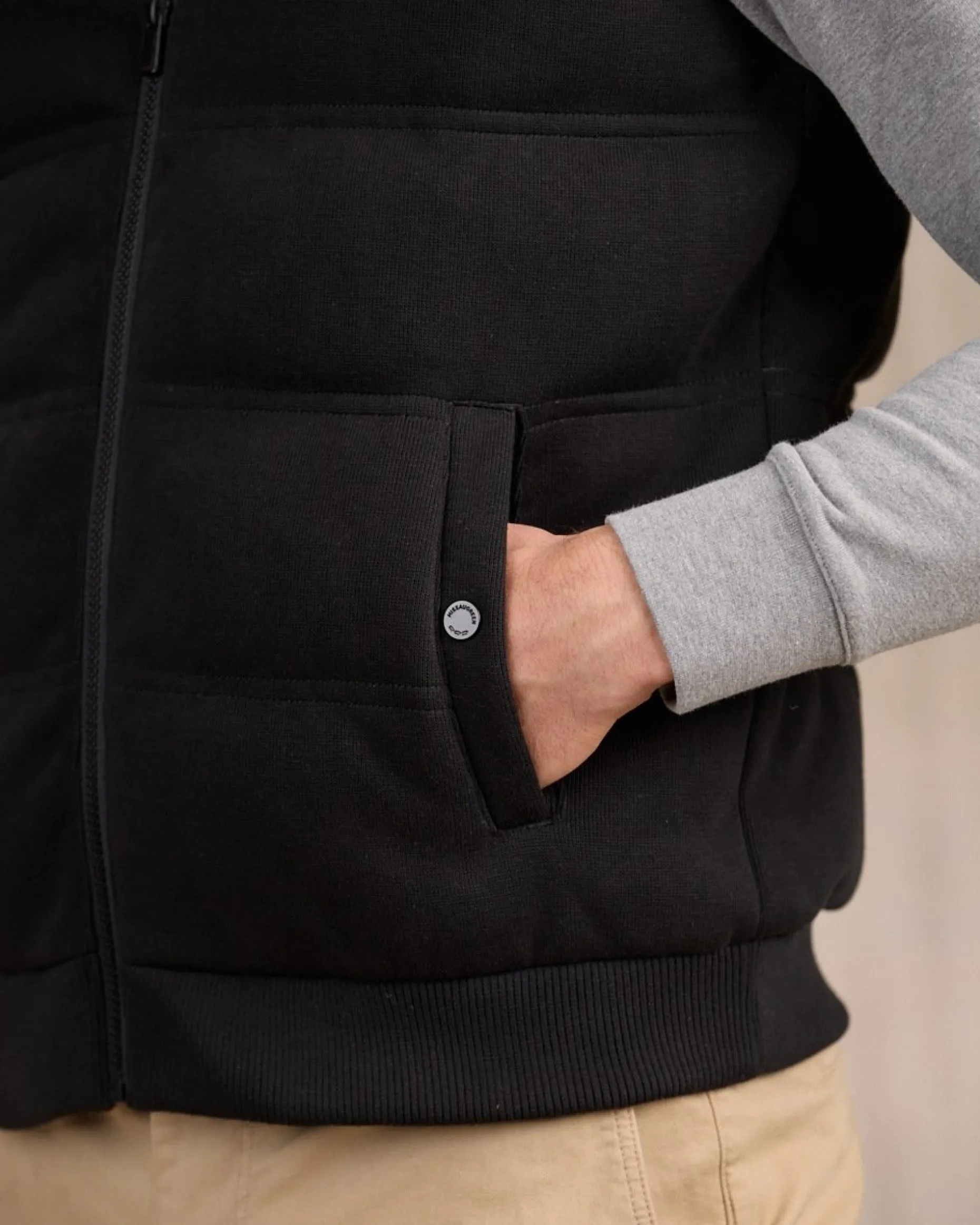 En quête d’une doudoune sans manches pour homme ? Découvrez notre modèle noir moderne, chic et qui se porte avec tout. Léger et confortable, il vous laisse bouger à votre guide tout en protégeant votre torse du froid. Mise au Green propose cette pièce mode fonctionnelle avec un col montant, deux poches boutonnées et une fermeture éclair. Elle est réalisée en coton avec du polyester.