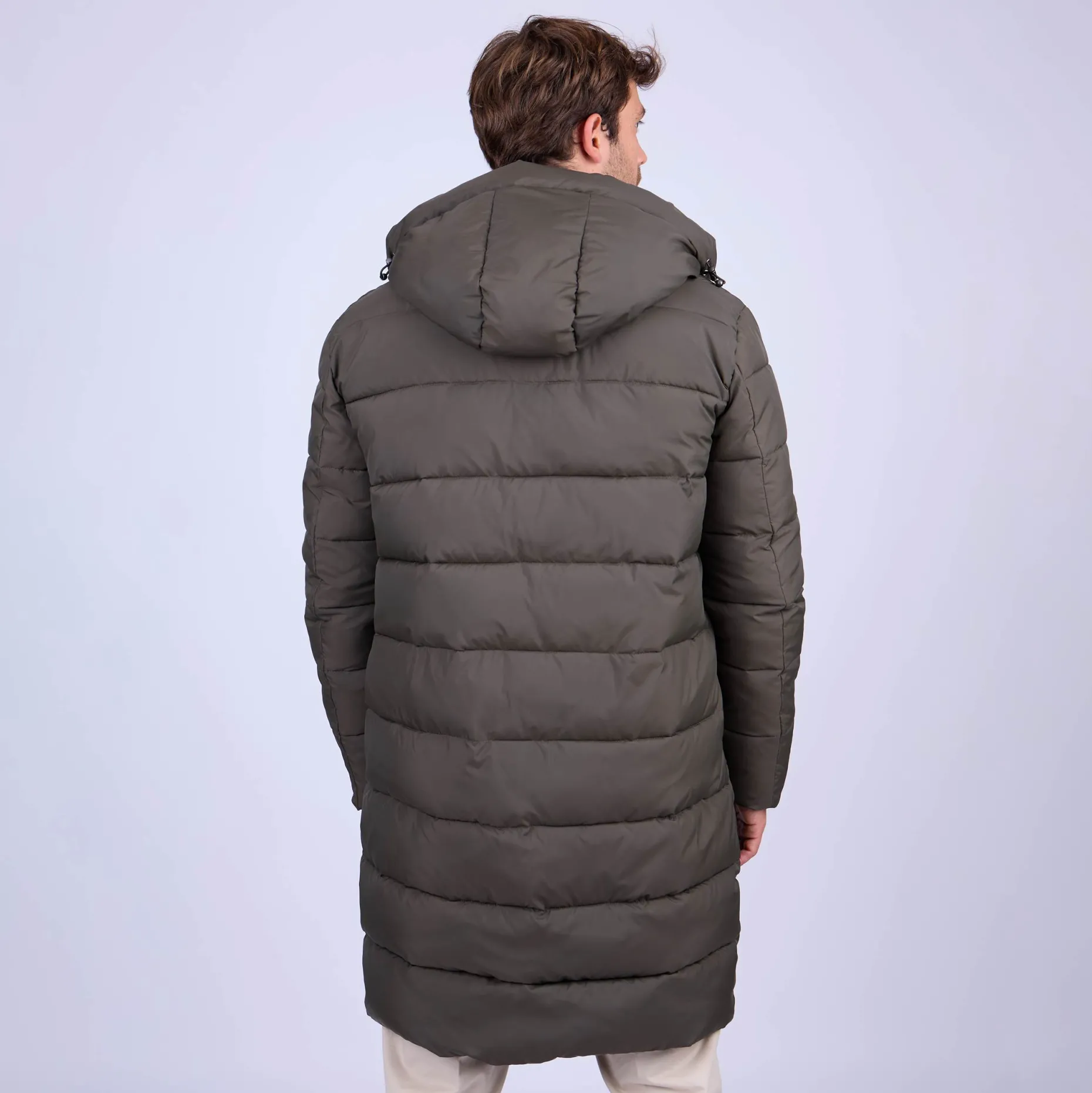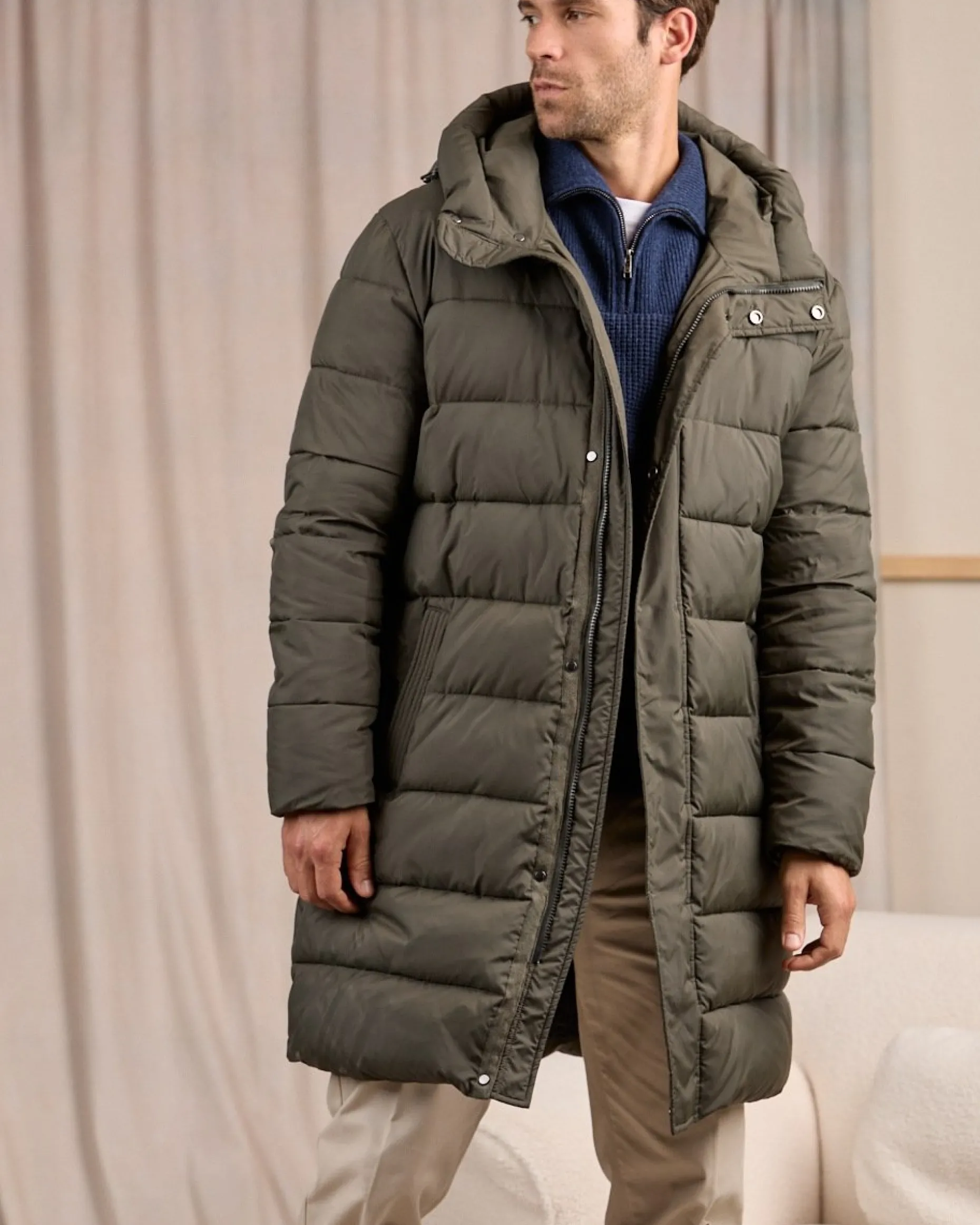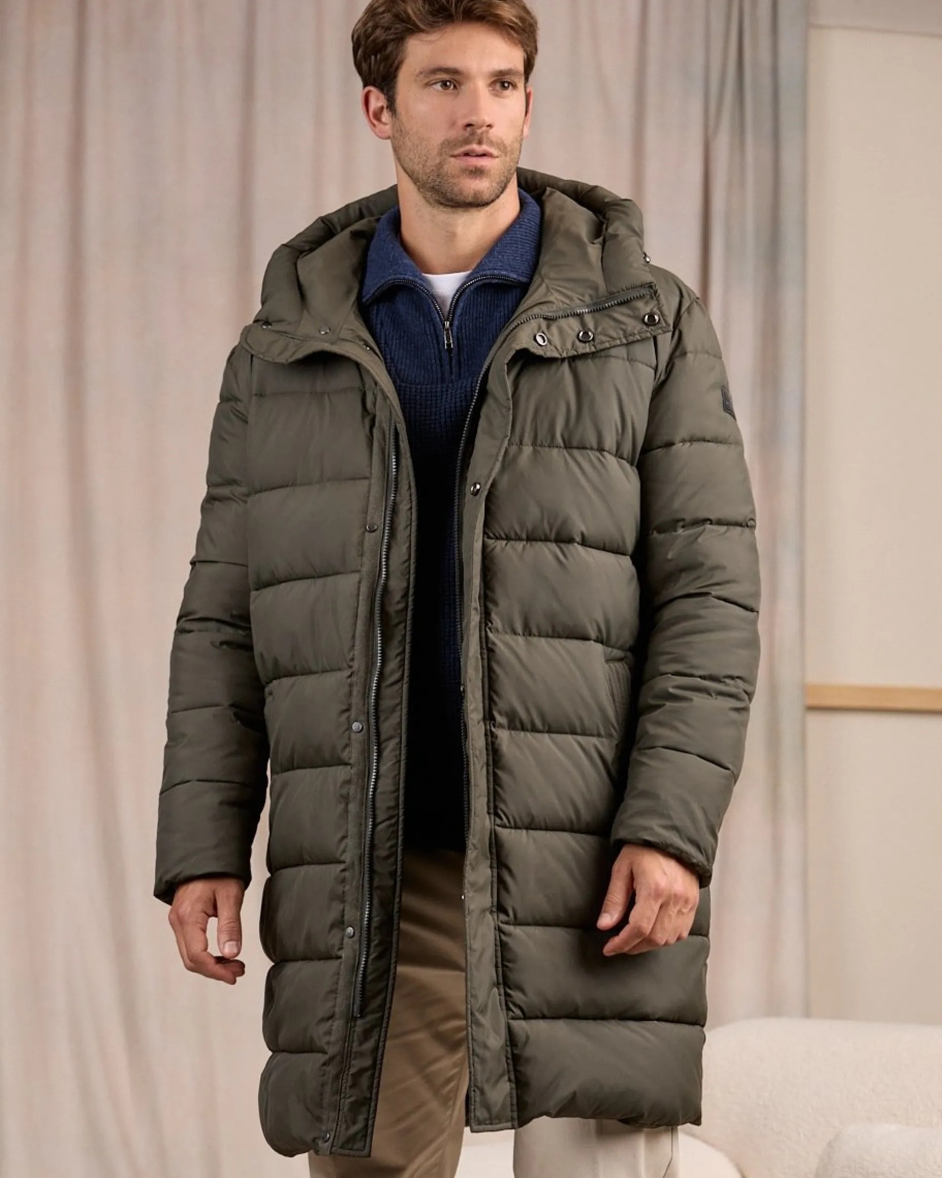 Notre doudoune longue est l’ultime investissement pour la saison ! À la fois fonctionnelle et minimaliste, cette pièce permet d’affronter les températures hivernales avec style. Son coloris kaki facile à porter, ses deux poches latérales et sa coupe droite confortable sont autant de raisons de l’adopter. Pour une chaleur optimale, elle associe un rembourrage chaud SORONA® à base de polyester recyclé avec une finition matelassée et déperlante. Une pièce phare du vestiaire à porter tous les jours en extérieur !