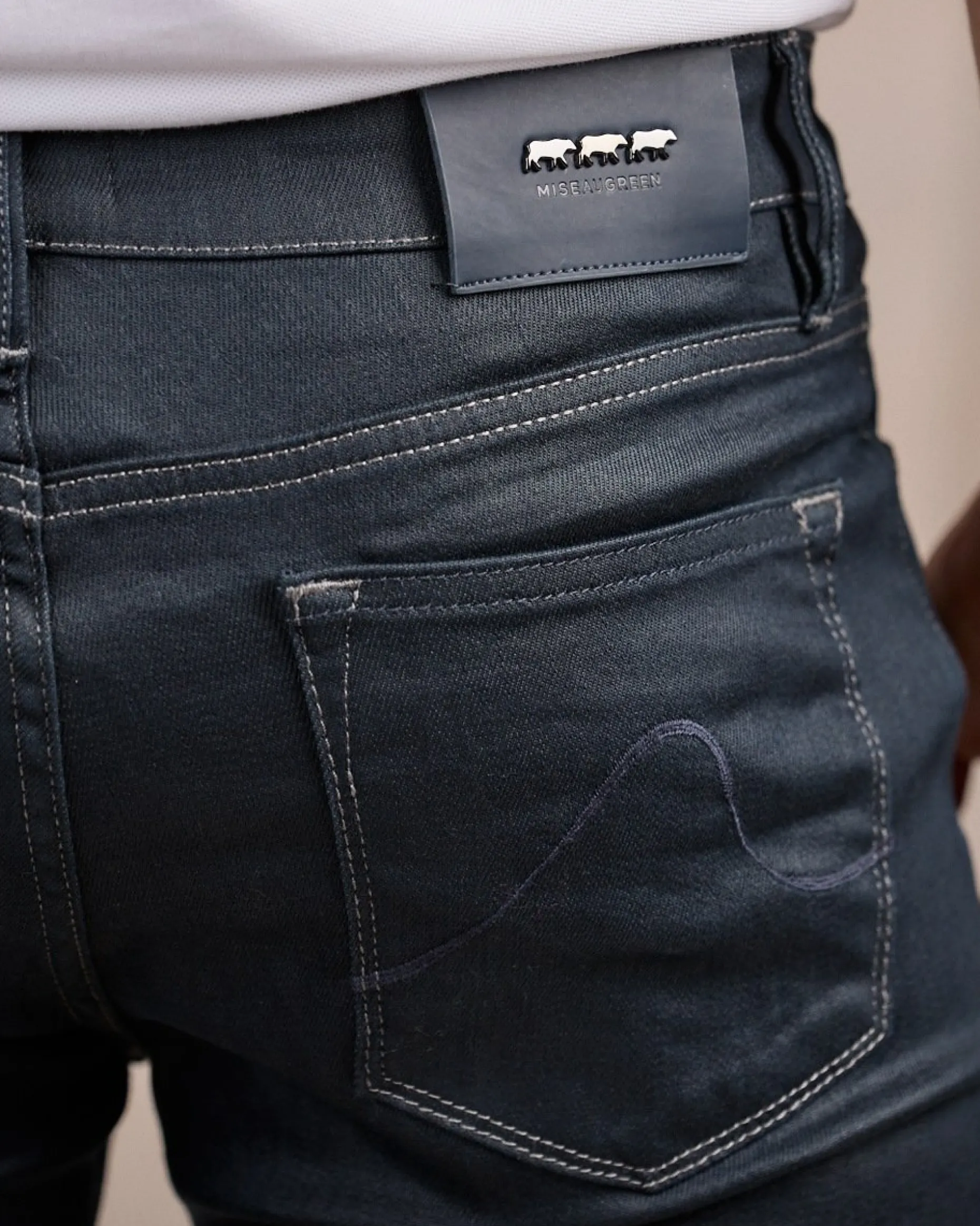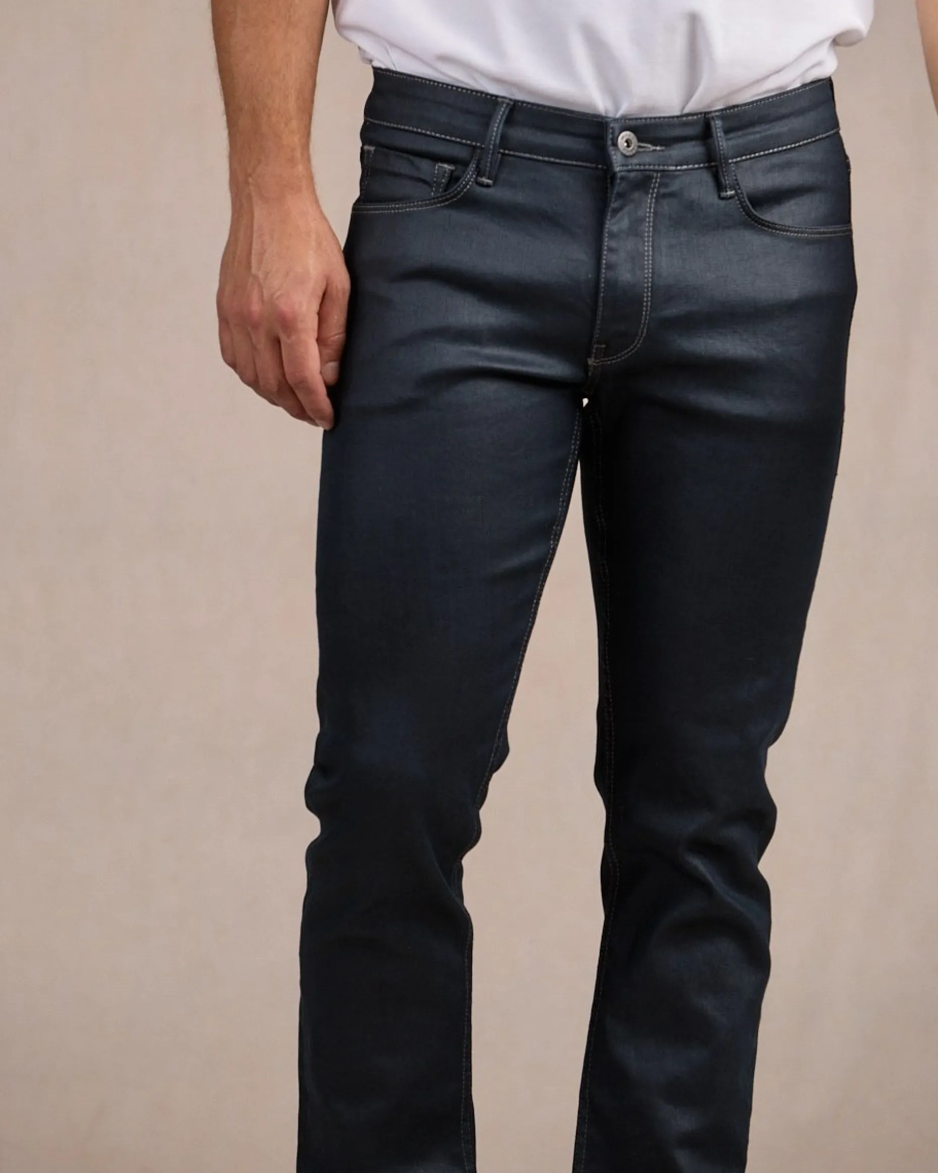 Ce jean bleu marine basique est un indémodable du vestiaire ! Facile à associer, ce modèle possède une coupe modern fit qui offre de nombreuses possibilités de style. Il est complété par cinq poches, une fermeture zippée et un jacron Mise au Green à l’arrière. Souple sans être fin, teinte polyvalente, fini légèrement brillant, une touche de stretch : tout a été pensé dans les moindres détails !