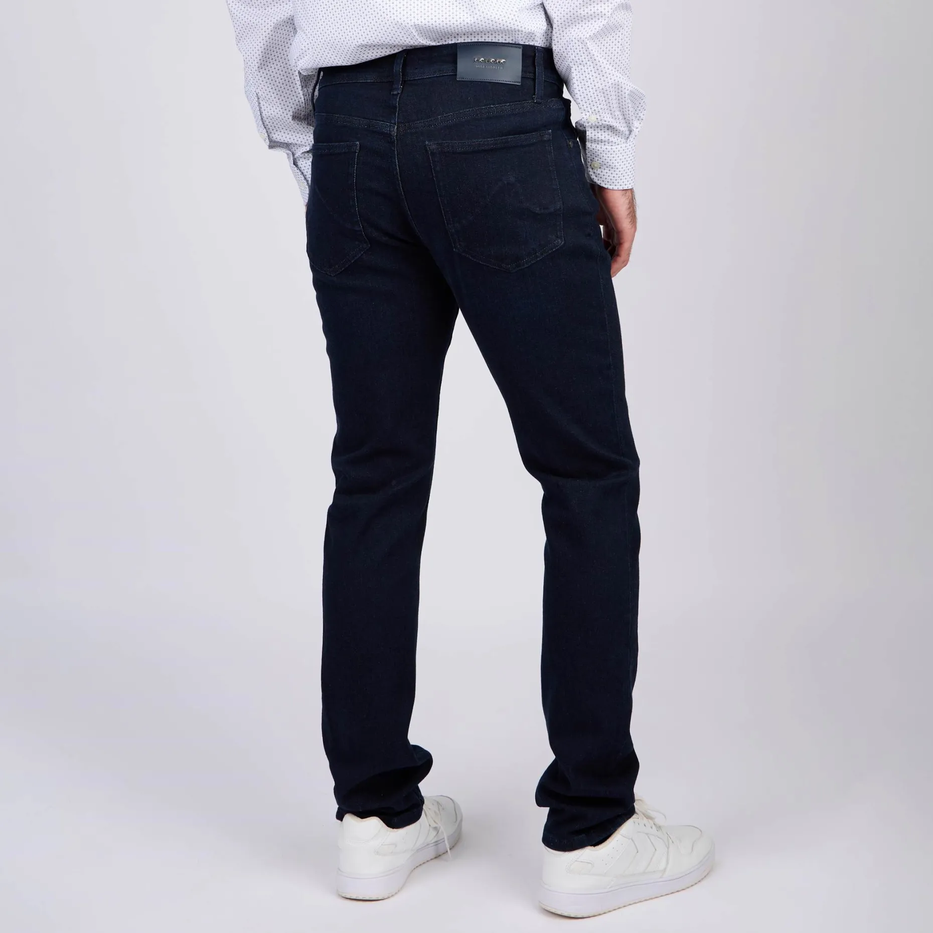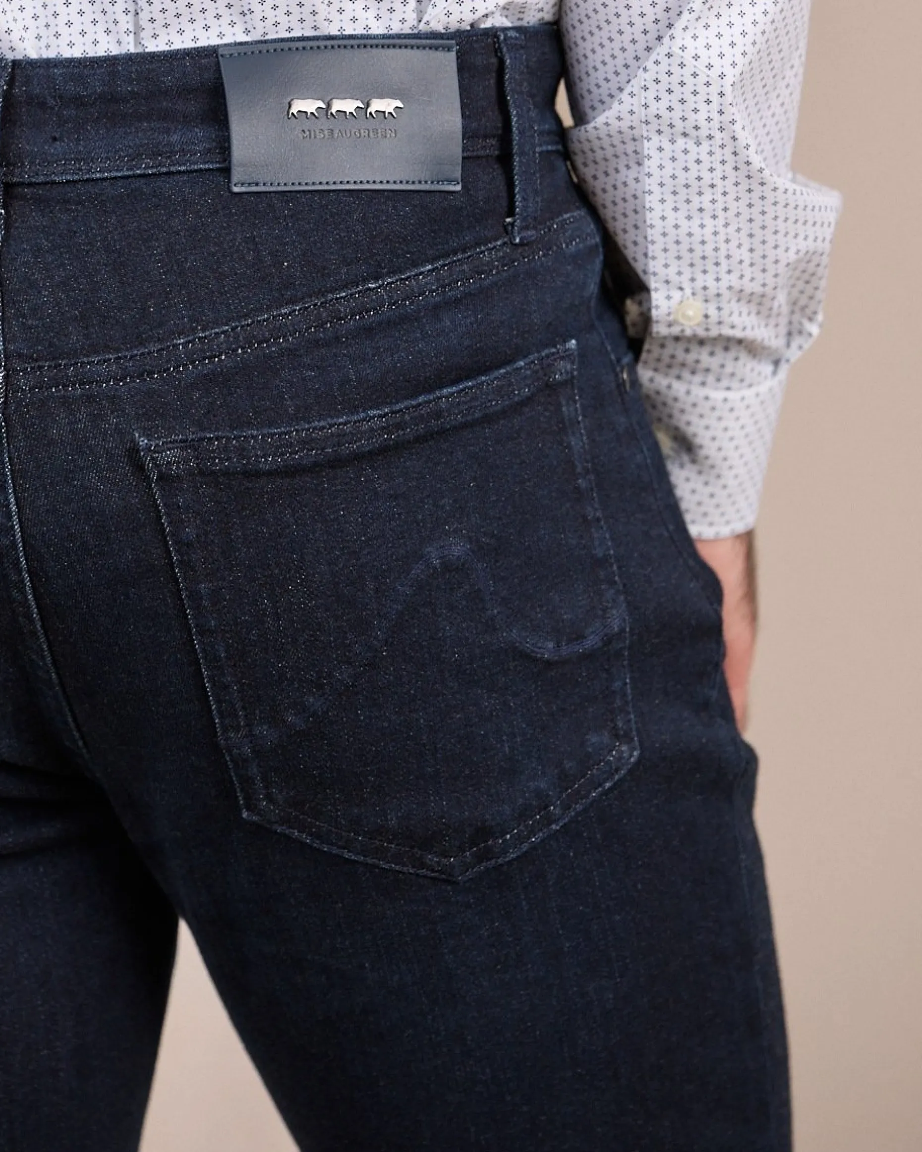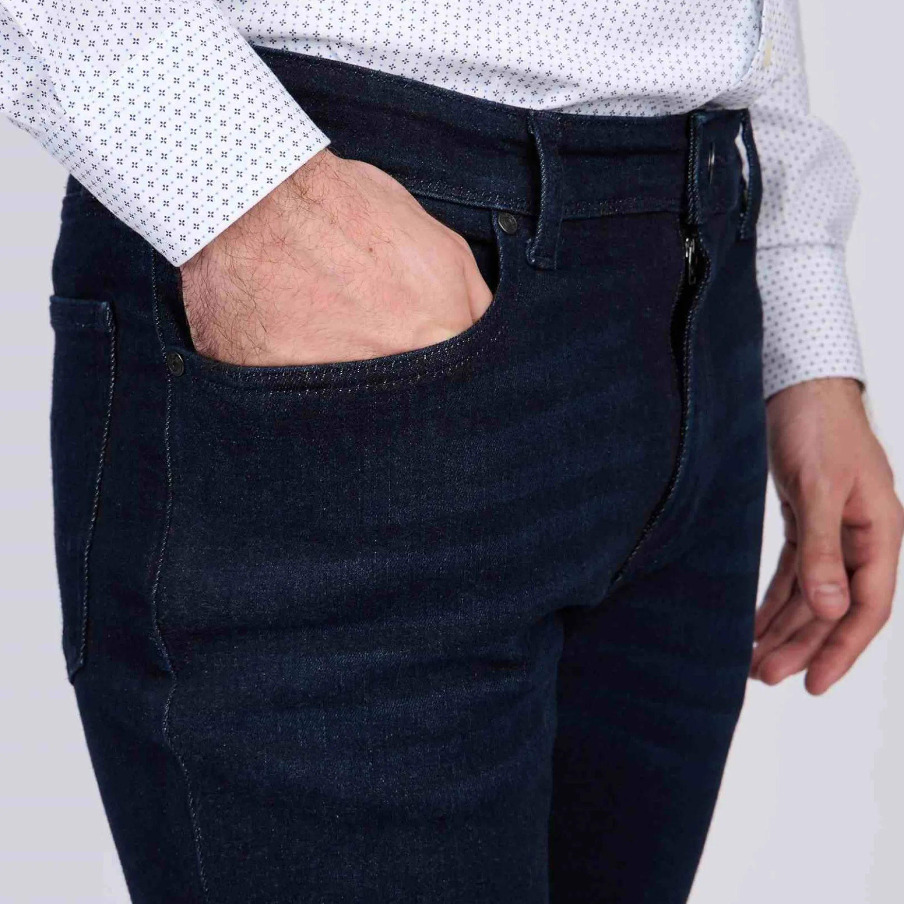 Au travail comme à la maison, craquez pour ce jean facile à porter au quotidien. Avec son design indémodable et sa coupe regular fit, ce basique du vestiaire masculin se mariera avec tous vos hauts favoris. Confectionné avec une touche d’élasthanne, il est confortable. Cinq poches fonctionnelles, des surpiqûres ton sur ton sur les poches arrière et un jacron avec 3 petites vaches métallisées soulignent cette pièce élégante. Dites oui à ce pantalon bleu foncé uni pour un style décontracté chic en toutes occasions.