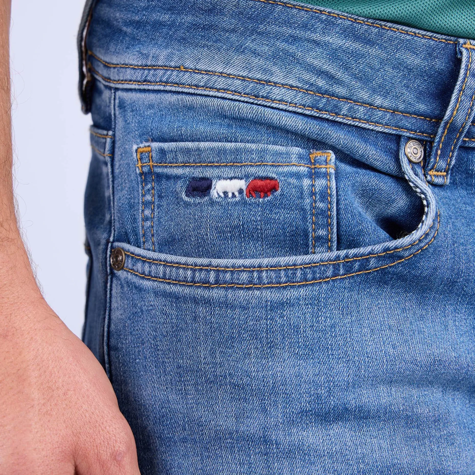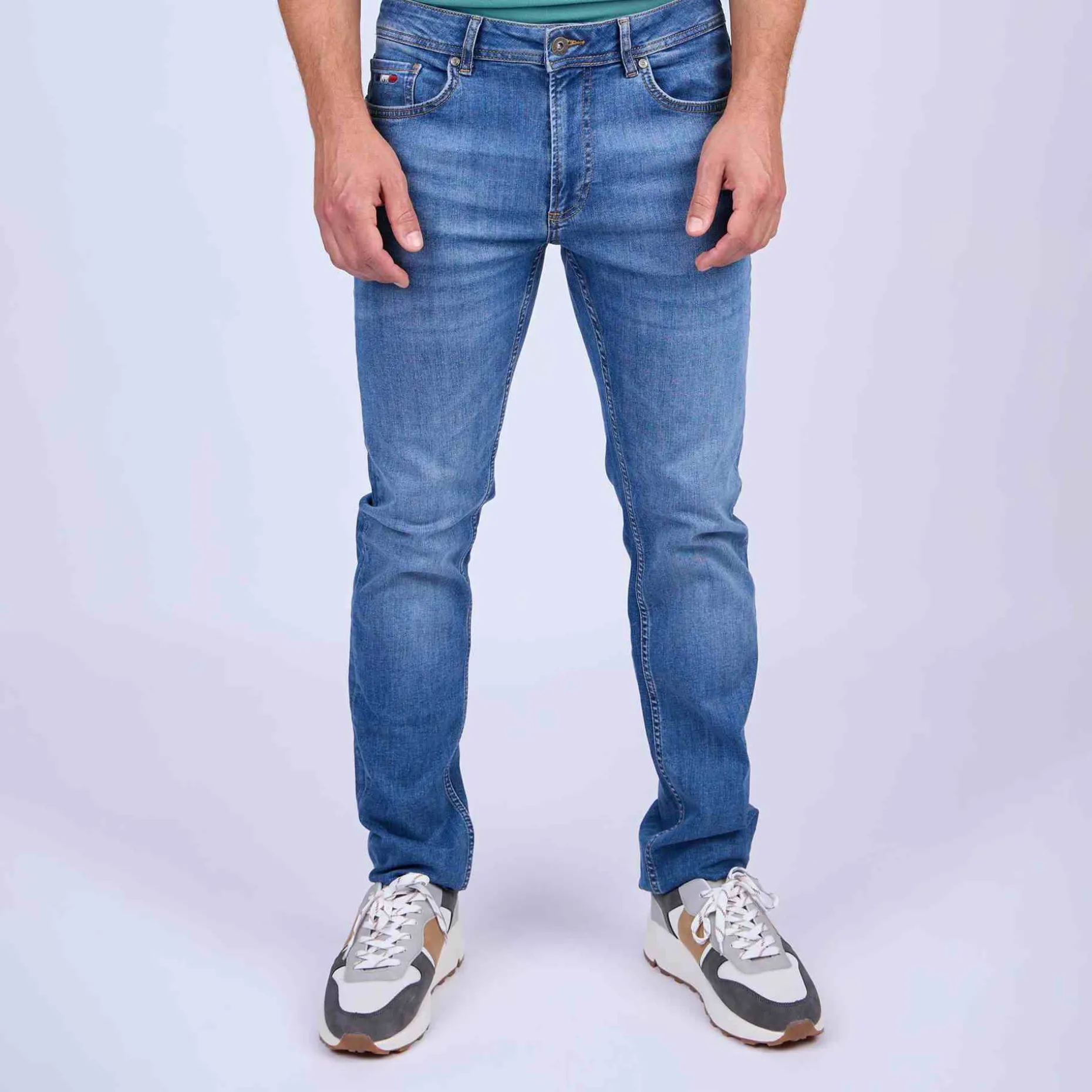 Vous recherchez un jean confortable qui offre une grande liberté de mouvement ? Mise au Green propose cette perle rare ! Ce jean hyperflex beach blue se démarque pour sa grande élasticité et sa coupe modern fit cintrée qui flatte de nombreuses silhouettes. Très tendance, il est muni d’une fermeture zippée, de cinq poches, d’un logo brodé « 3 vaches » et de passants pour ceinture. Mais ce n’est pas tout : il est aussi confectionné à base de coton. Adoptez-le pour des looks confortables et une aisance absolue !