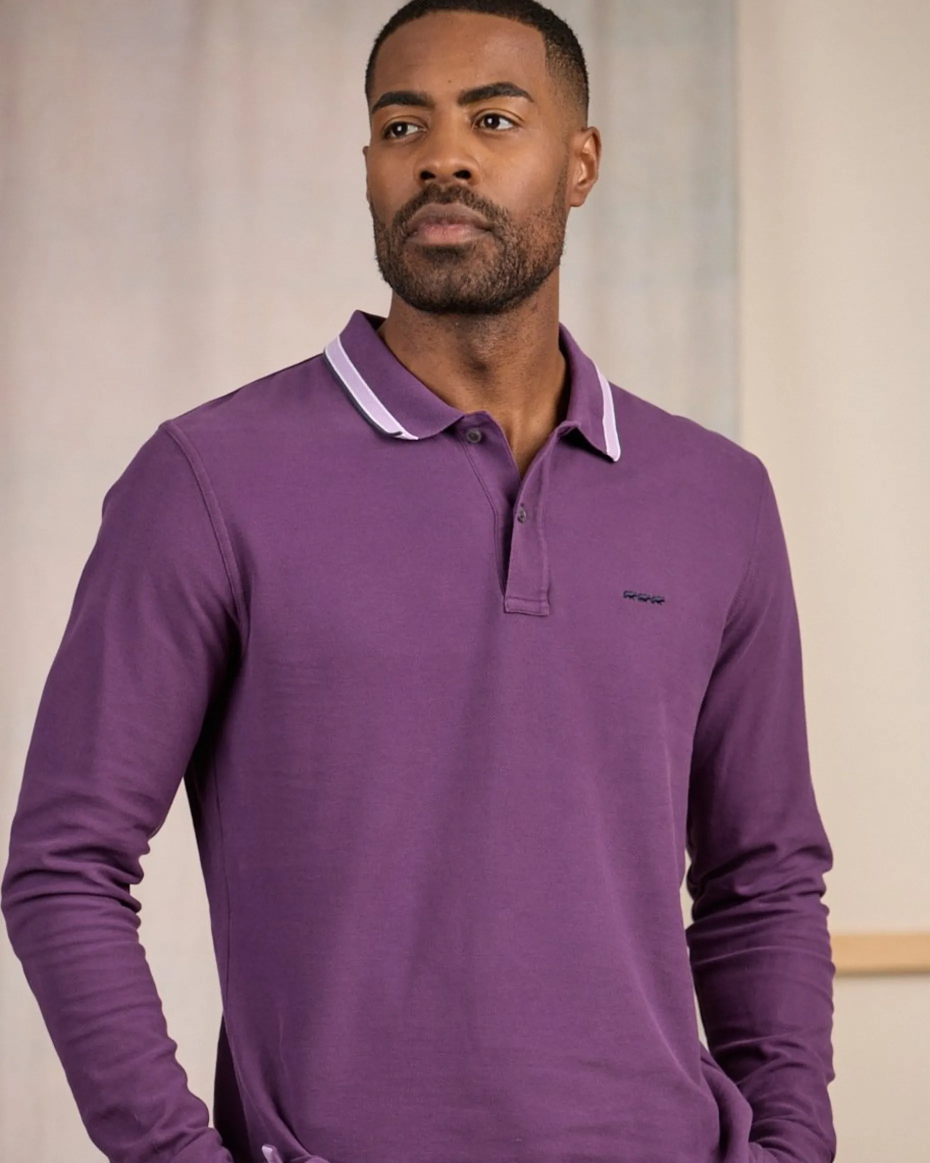 Suivez la tendance avec ce modèle sportif Mise au Green ! Confort et raffinement sont au rendez-vous avec ce polo à manches longues. Il adopte un coloris violet et des finitions contrastées au niveau du col. Agréable et doux à porter, il est conçu en coton. Pour un look décontracté complet, associez-le avec un pantalon chino. Un basique du vestiaire à adopter sans tarder ! Ce polo à la coupe droite comprend un logo « 3 vaches » brodé sur la poitrine.