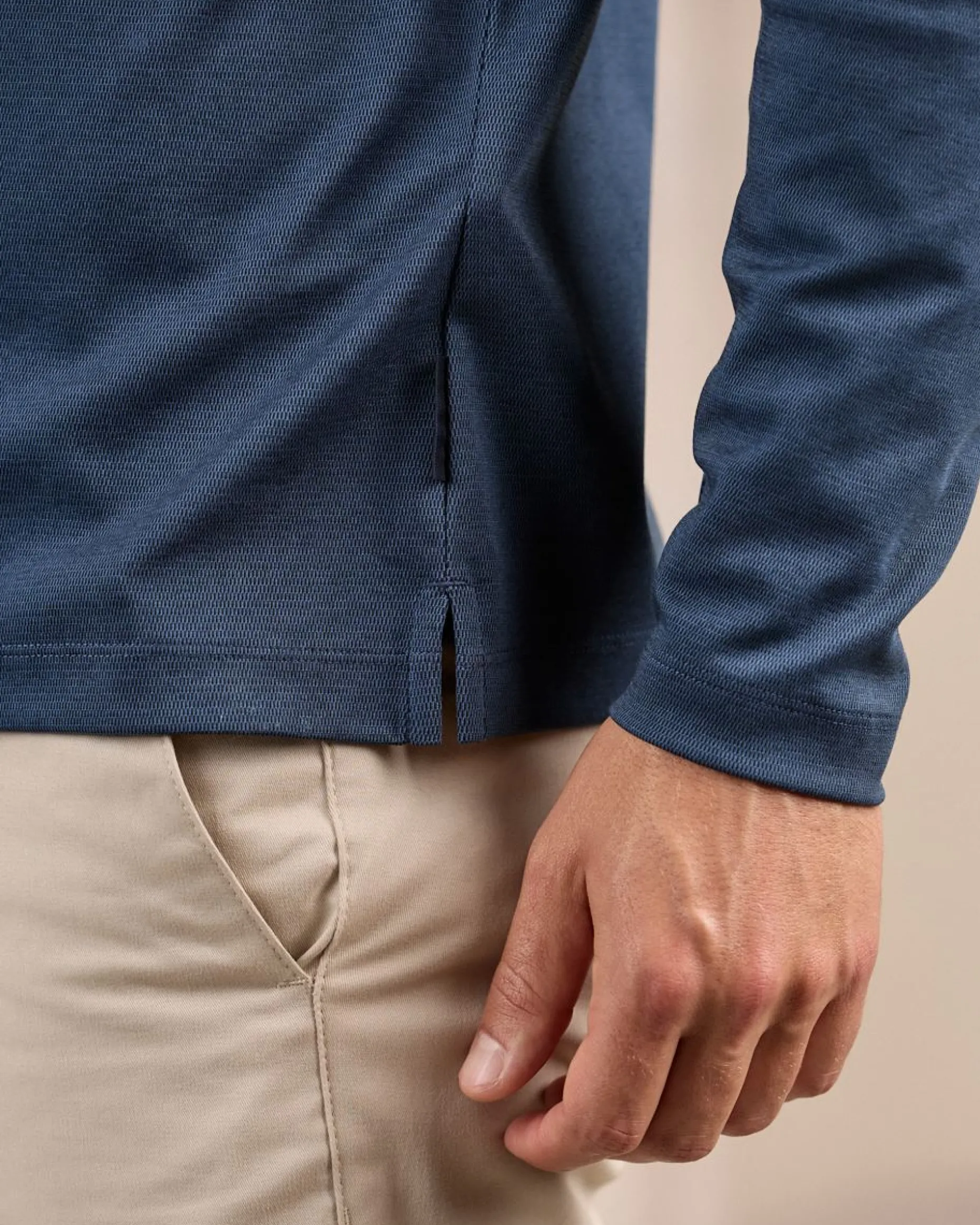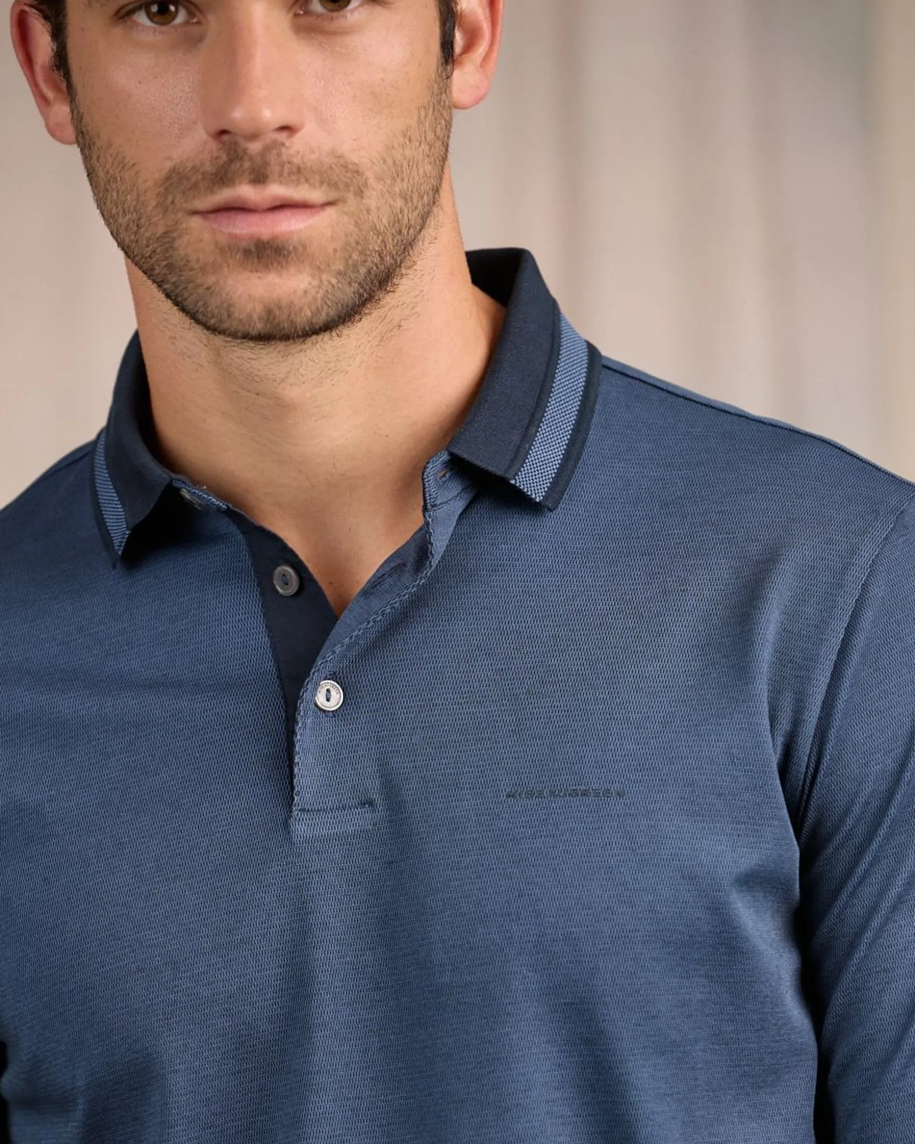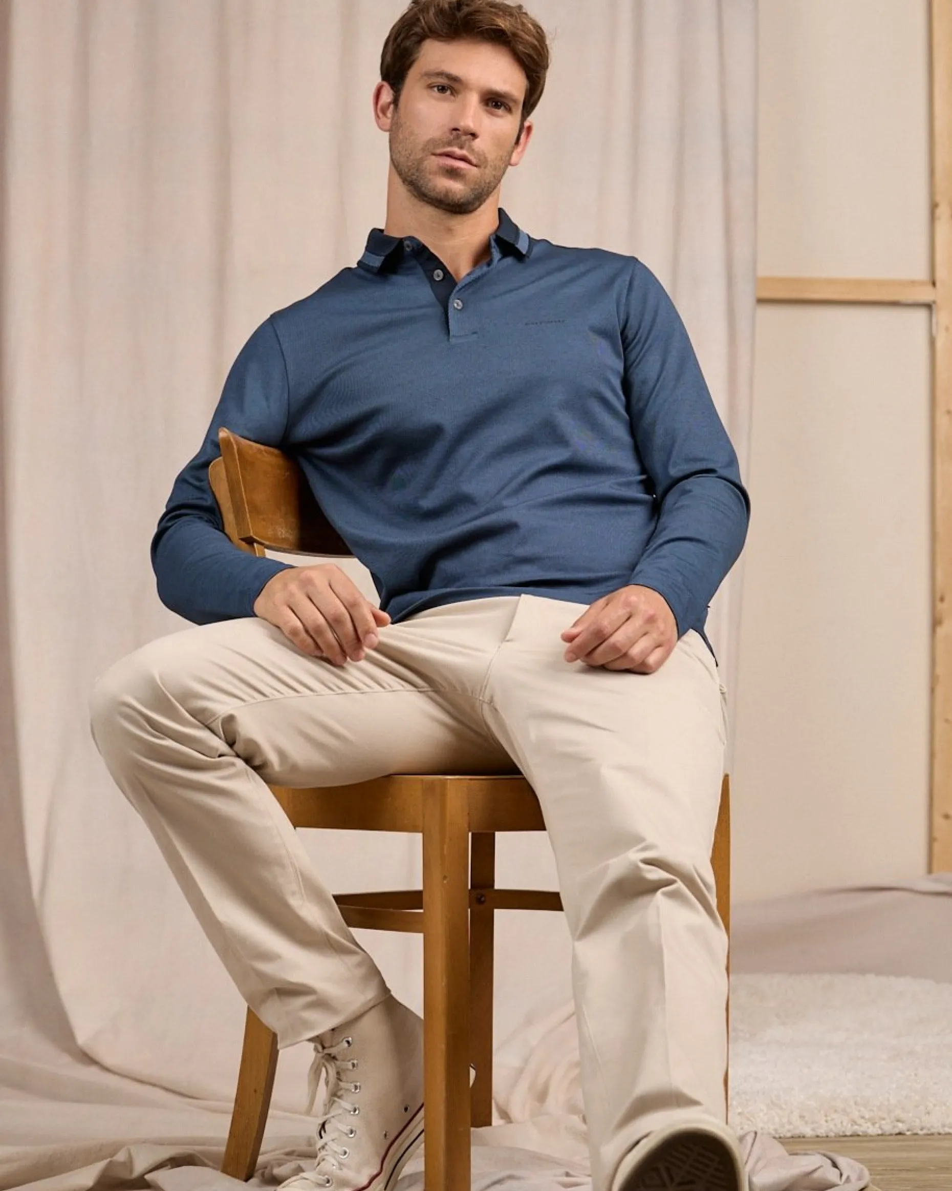 Adoptez ce polo à manches longues Mise au Green. Réalisé dans un mélange de polyester recyclé et de coton, ce modèle est confortable. Pour un style unique, il comporte des détails contrastés au niveau du col et de la patte de boutonnage. Avec son coloris uni bleu et sa coupe droite, il se porte facilement et se mixe avec tous vos pantalons !