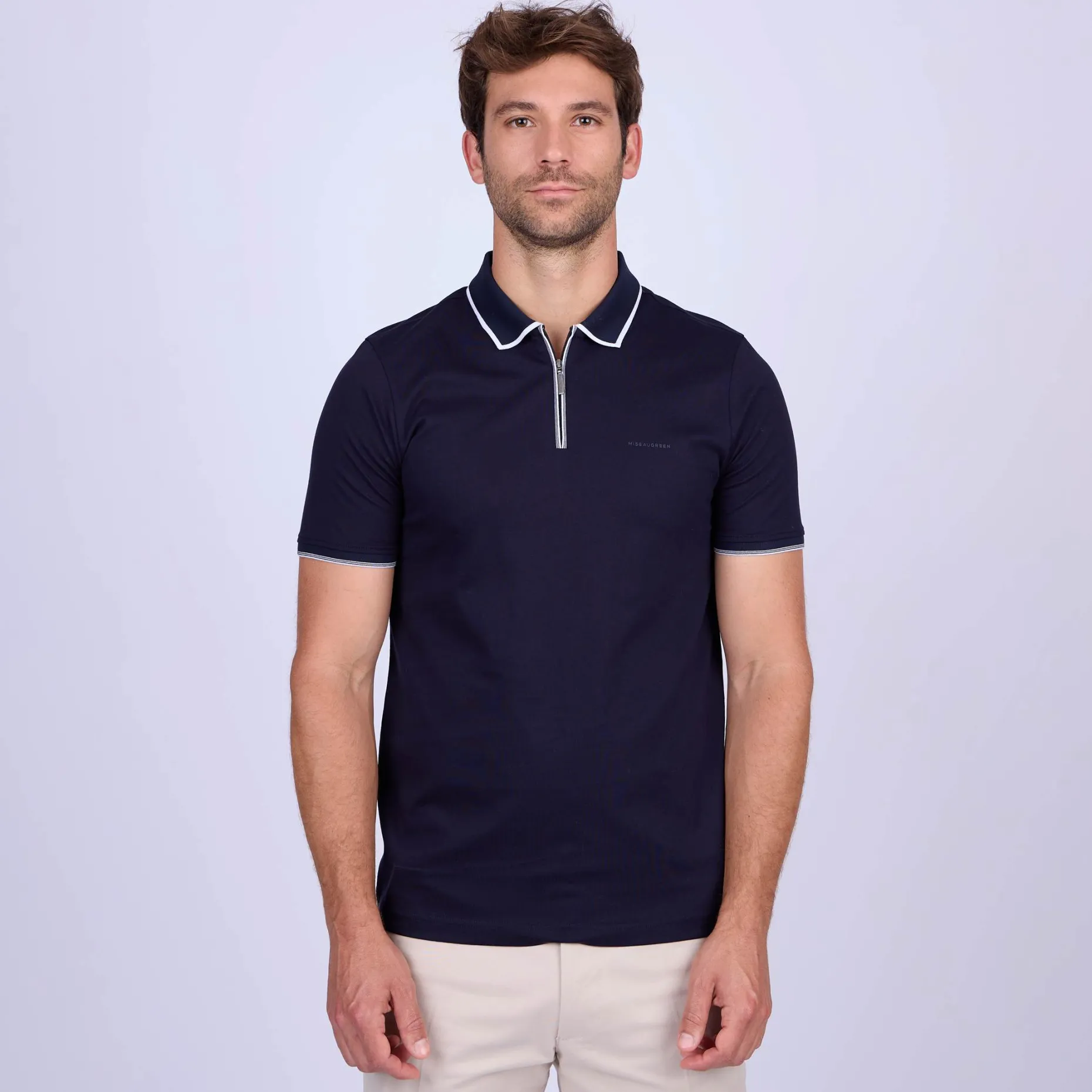 Remettez au goût du jour votre vestiaire avec ce polo à manches courtes. Conçu 100 % en coton, il est doux, respirant et idéal pour être porté au quotidien. Ce modèle est sublimé par un col zippé et des détails contrastés. Avec sa coupe droite confortable et son coloris bleu marine, il est le choix parfait pour une tenue raffinée et décontractée. Ajoutez-le dès maintenant à votre collection de polo !