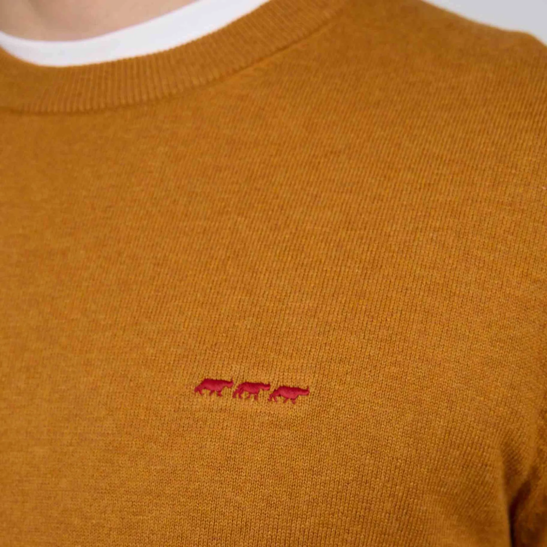 Amateur de style et de simplicité ? Au travail, à la maison ou pendant vos sorties, adoptez ce basique du vestiaire masculin pour compléter vos tenues. Très agréable à porter, ce pull à manches longues allie le confort du coton à la douceur du cachemire (5%). Ce qu’on aime : sa broderie contrastée avec 3 petites vaches, son coloris uni jaune moutarde tendance et son col rond côtelé. Pour des looks raffinés en toutes occasions, c’est indéniablement le modèle qu’il vous faut !
