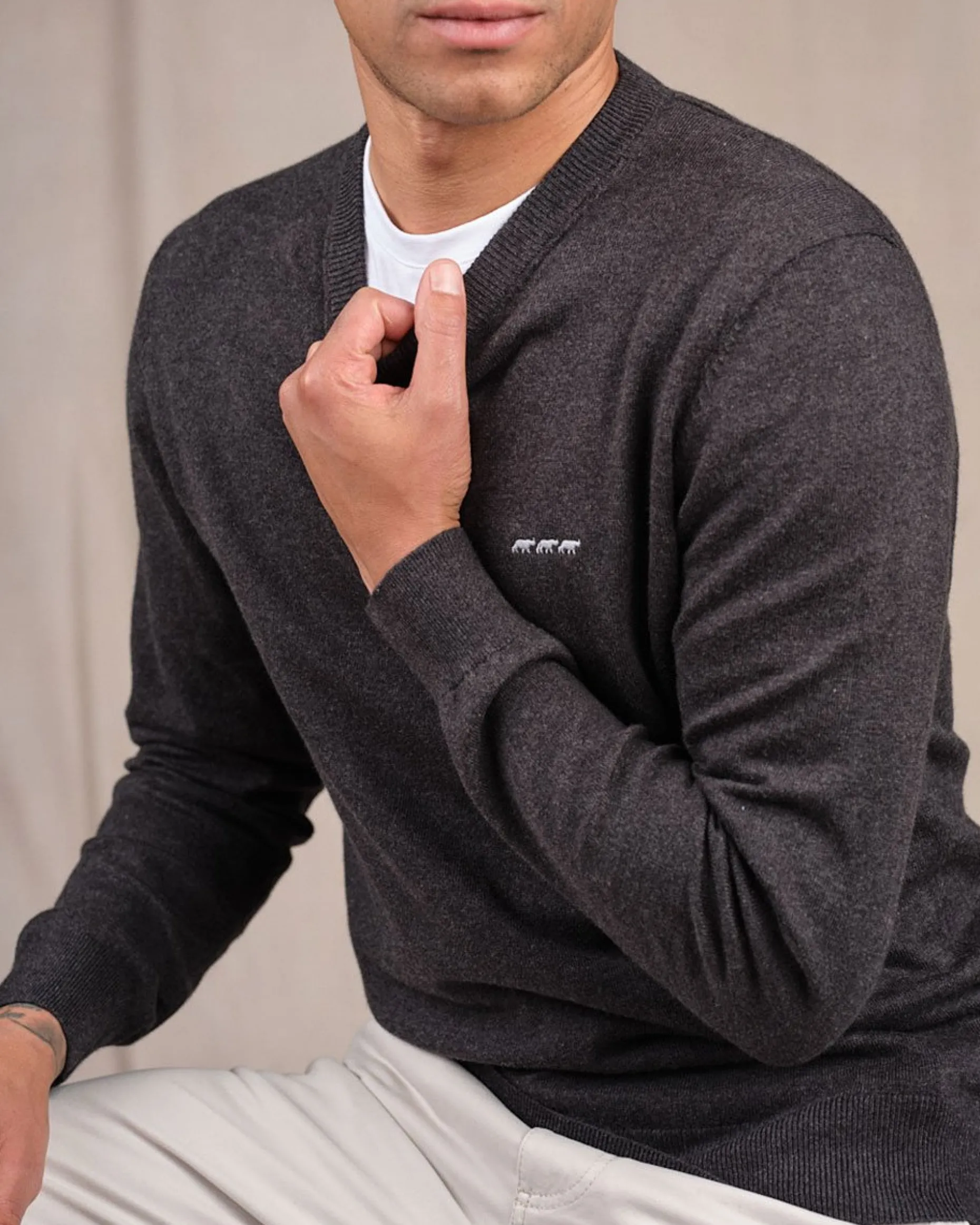 Amateur de style et de simplicité ? Au travail, à la maison ou pendant vos sorties, adoptez ce basique du vestiaire masculin pour compléter vos tenues. Très agréable à porter, ce pull à manches longues allie le confort du coton à la douceur du cachemire (5%). Ce qu’on aime : sa broderie contrastée avec 3 petites vaches, son coloris uni tendance et son col rond côtelé. Pour des looks raffinés en toutes occasions, c’est indéniablement le modèle qu’il vous faut !