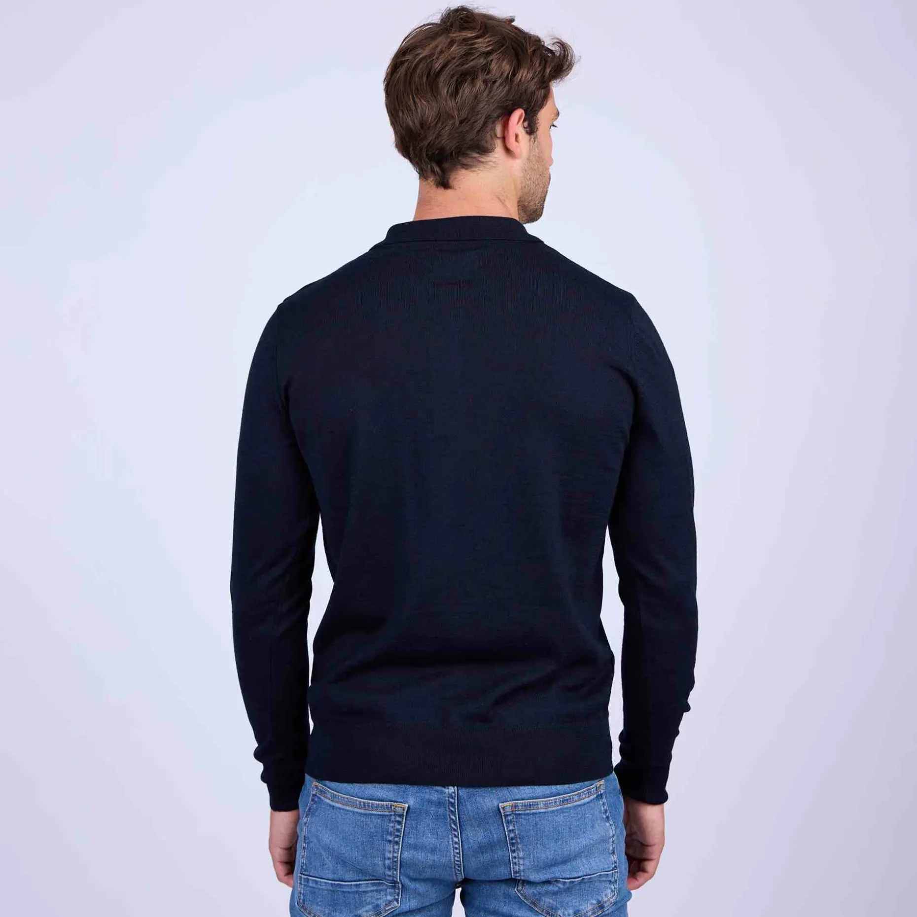 Adepte de l’élégance, de la simplicité et du bon goût, adoptez ce pull à manches longues ! Confectionné dans un mélange de laine mérinos et d’acrylique, ce modèle procure un confort optimal. Il se démarque par son coloris bleu marine et son col polo, un détail qui ajoute une touche de raffinement à n’importe quelle tenue. Une patte de boutonnage, des bord côtelés et un logo emblématique « 3 vaches » ton sur ton agrémentent l’ensemble. Vous n’aurez plus envie de le quitter !