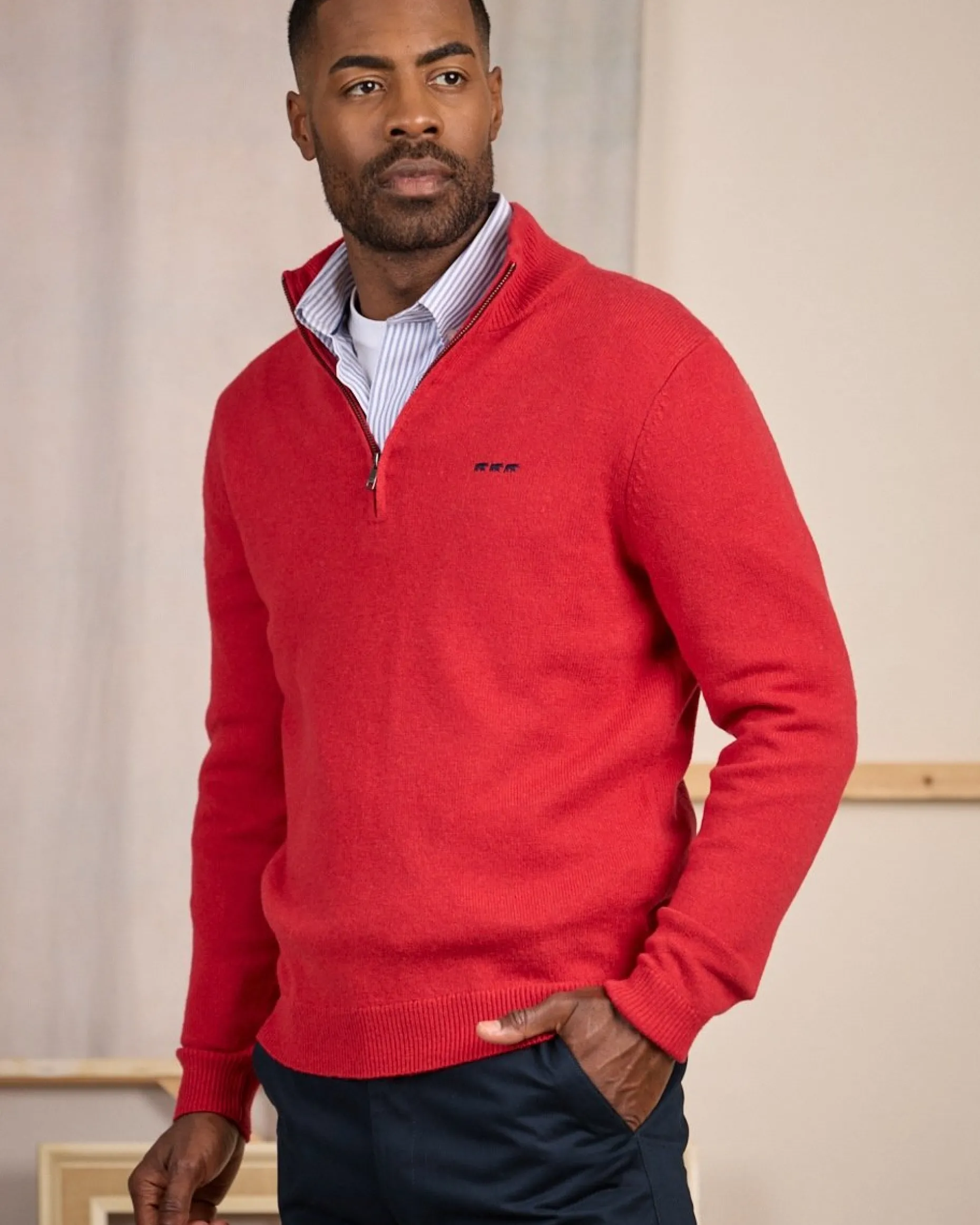 Ce pull à col zippé est un incontournable du vestiaire masculin ! Mélange de laine et de polyamide, il offre confort et chaleur en toutes circonstances. Des finitions côtelées au niveau des poignets, de la basse et du col complètent ce modèle tendance. Décliné dans un coloris rouge, il dynamise votre allure et se porte facilement en superposition pour mettre en valeur votre tee-shirt ou votre chemise. Pour des looks décontractés, laissez-vous séduire par ce basique !