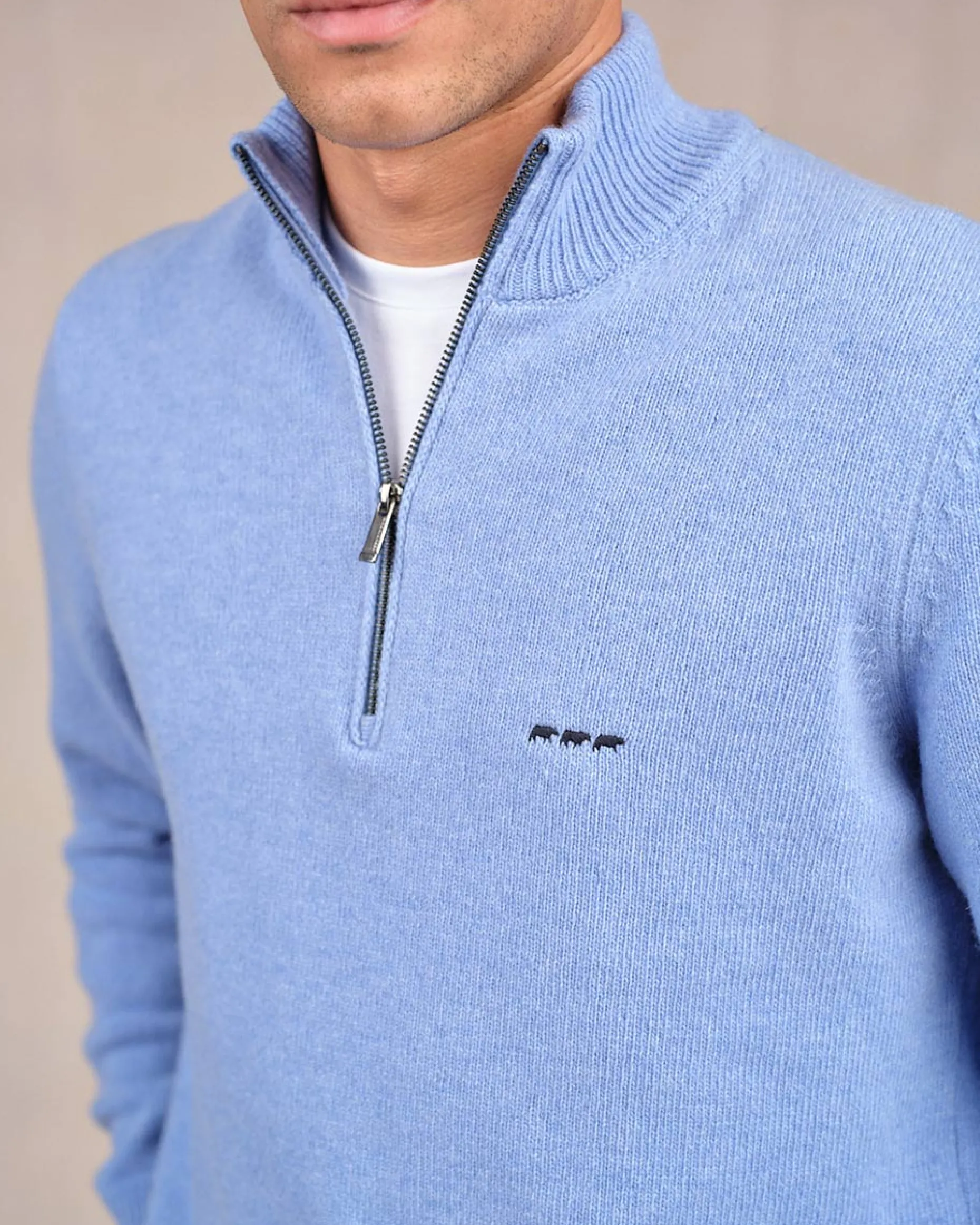 Ce pull à col zippé est un incontournable du vestiaire masculin ! Mélange de laine et de polyamide, il offre confort et chaleur en toutes circonstances. Des finitions côtelées au niveau des poignets, de la basse et du col complètent ce modèle tendance. Décliné dans un coloris bleu ciel, il dynamise votre allure et se porte facilement en superposition pour mettre en valeur votre tee-shirt ou votre chemise. Pour des looks décontractés, laissez-vous séduire par ce basique !