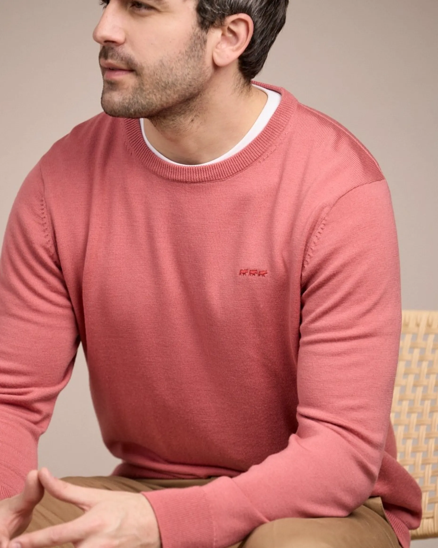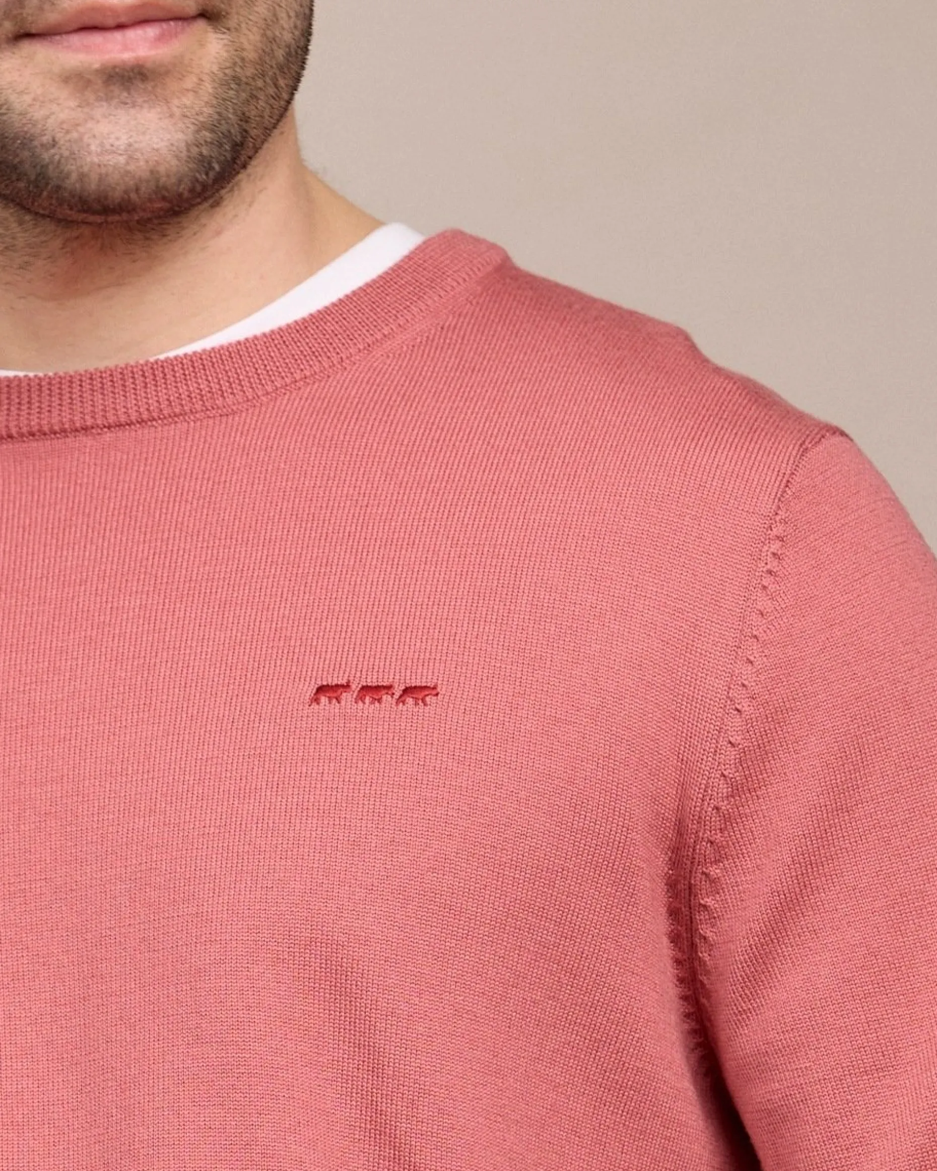 Mélange de laine mérinos et d’acrylique, ce pull pour homme est l’essentiel qu’il vous manquait pour la saison ! Craquez pour son élégant design uni, sa coupe droite et son coloris bois de rose. Très réconfortant, ce modèle vous garde bien au chaud tout en assurant votre confort. Pour un supplément de style, il possède des finitions en bord-côtes et une broderie « 3 vaches » sur la poitrine. Adoptez ce pull à manches longues et restez bien apprêté en toutes occasions !