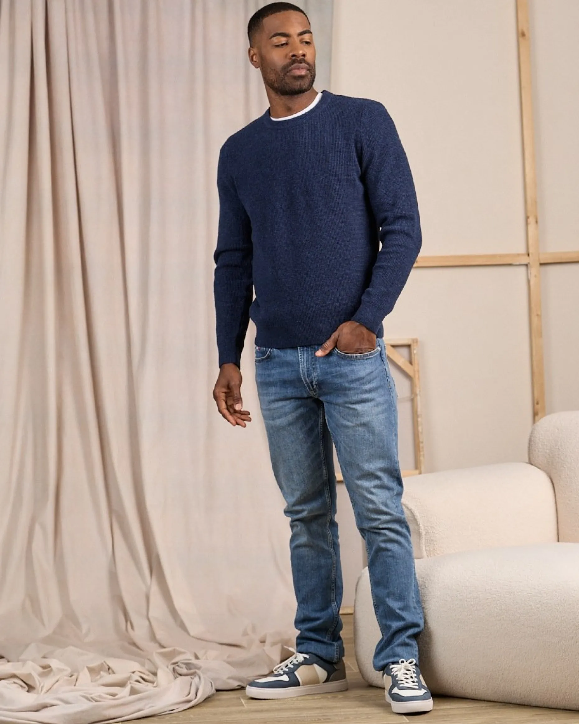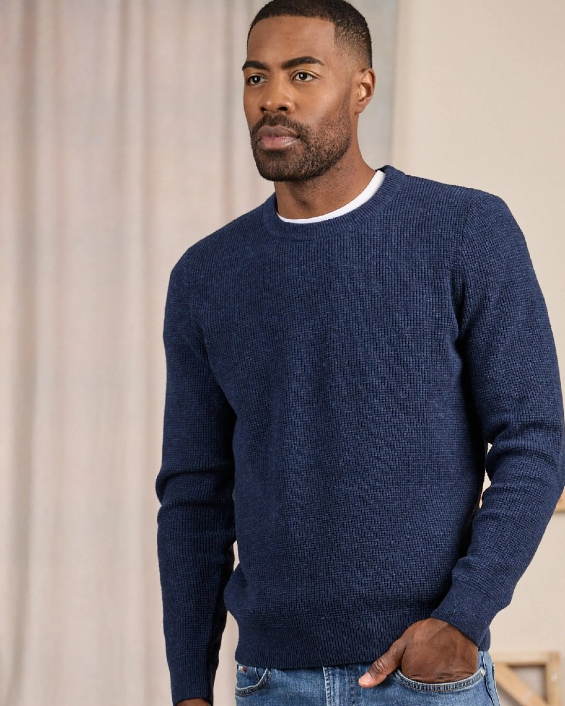 Basique du vestiaire masculin, ce pull à manches longues uni se porte aussi bien seul que par-dessus un tee-shirt ou une chemise pour vous tenir chaud. Mélange de laine et de polyamide, il offre un maximum de confort et d’aisance. Son coloris bleu indigo et sa coupe droite sont faciles à coordonner et s’adaptent à tous les styles. Avec son design simple et polyvalent, il est certainement le modèle le plus incontournable des pulls !