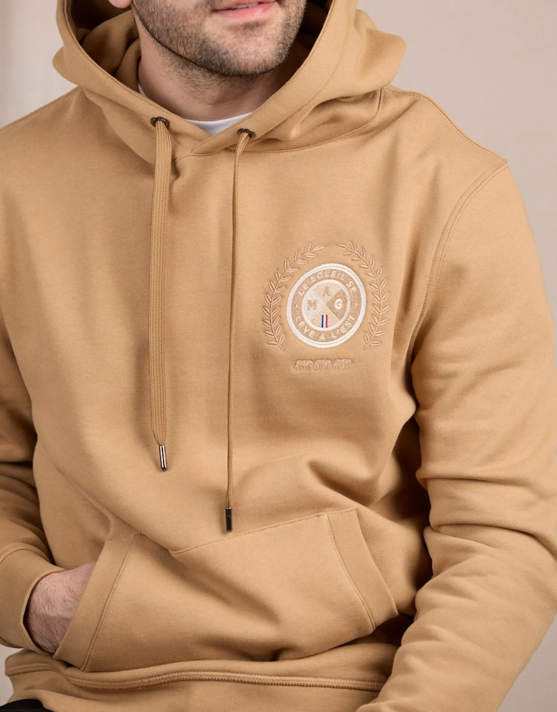 Pour un style décontracté réussi, le hoodie est LA pièce à posséder ! Avec son design tendance et son coloris camel, ce modèle pour homme s’associe facilement avec un pantalon ou un jogging. Selon vos envies, portez-le seul ou superposez-le avec un tee-shirt ! Des finitions soignées rehaussent ce modèle comme des longs cordons de serrage, une capuche et un patch brodé sur la poitrine. Conçu avec du coton, il se distingue par sa douceur et sa sensation de confort.