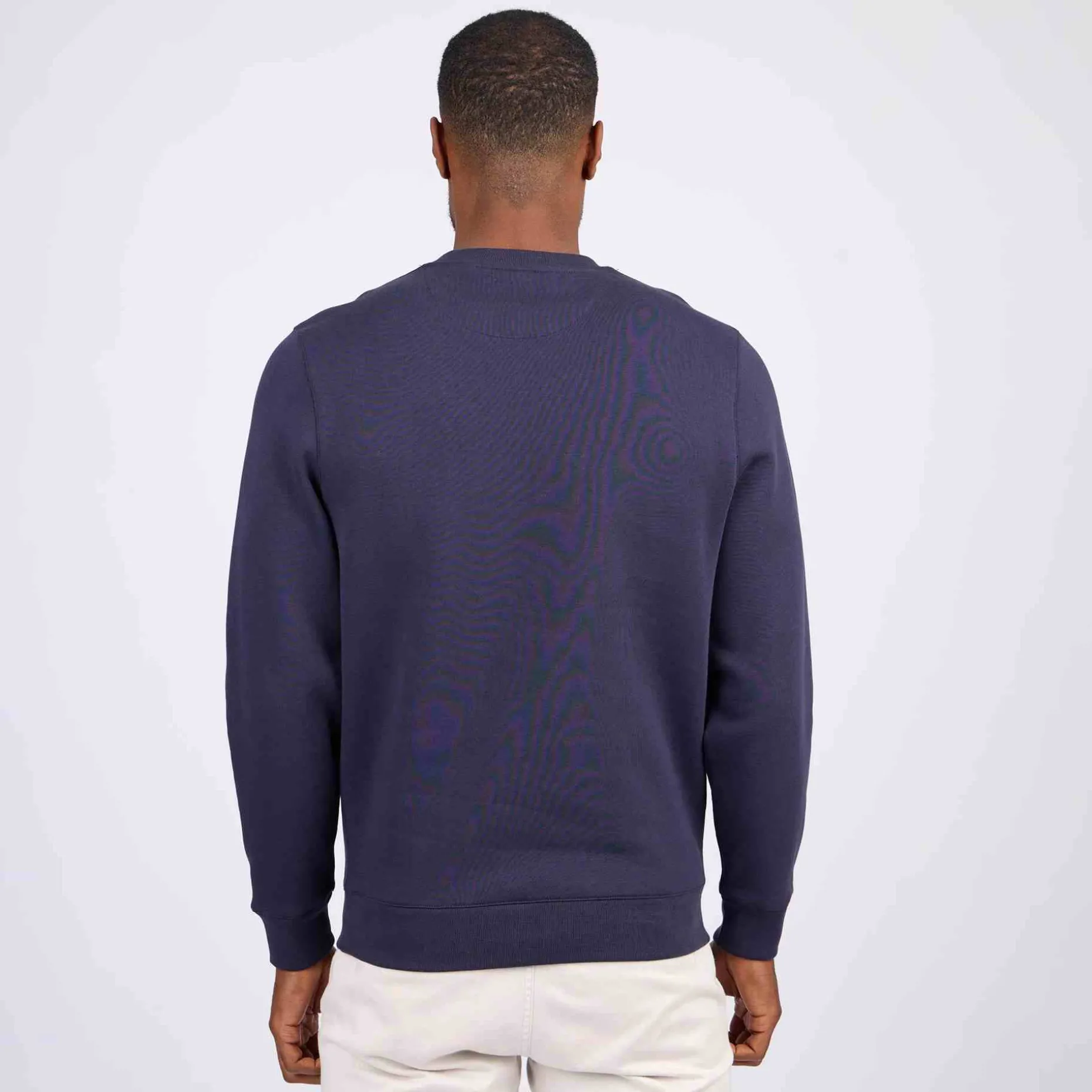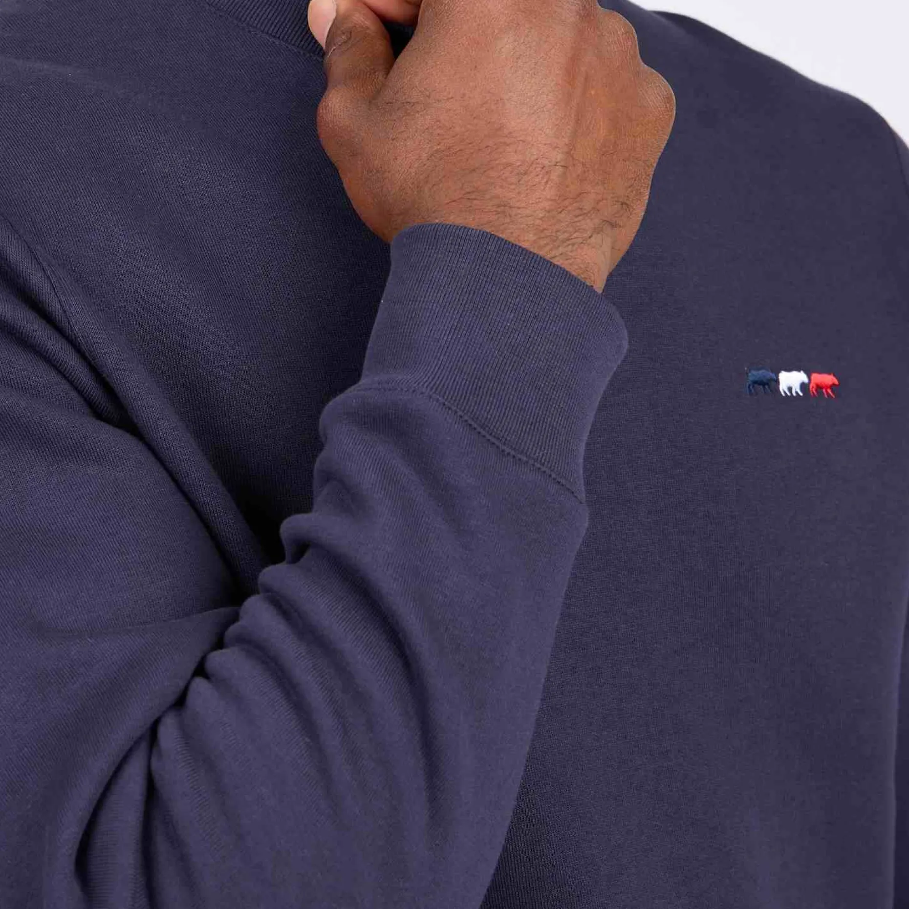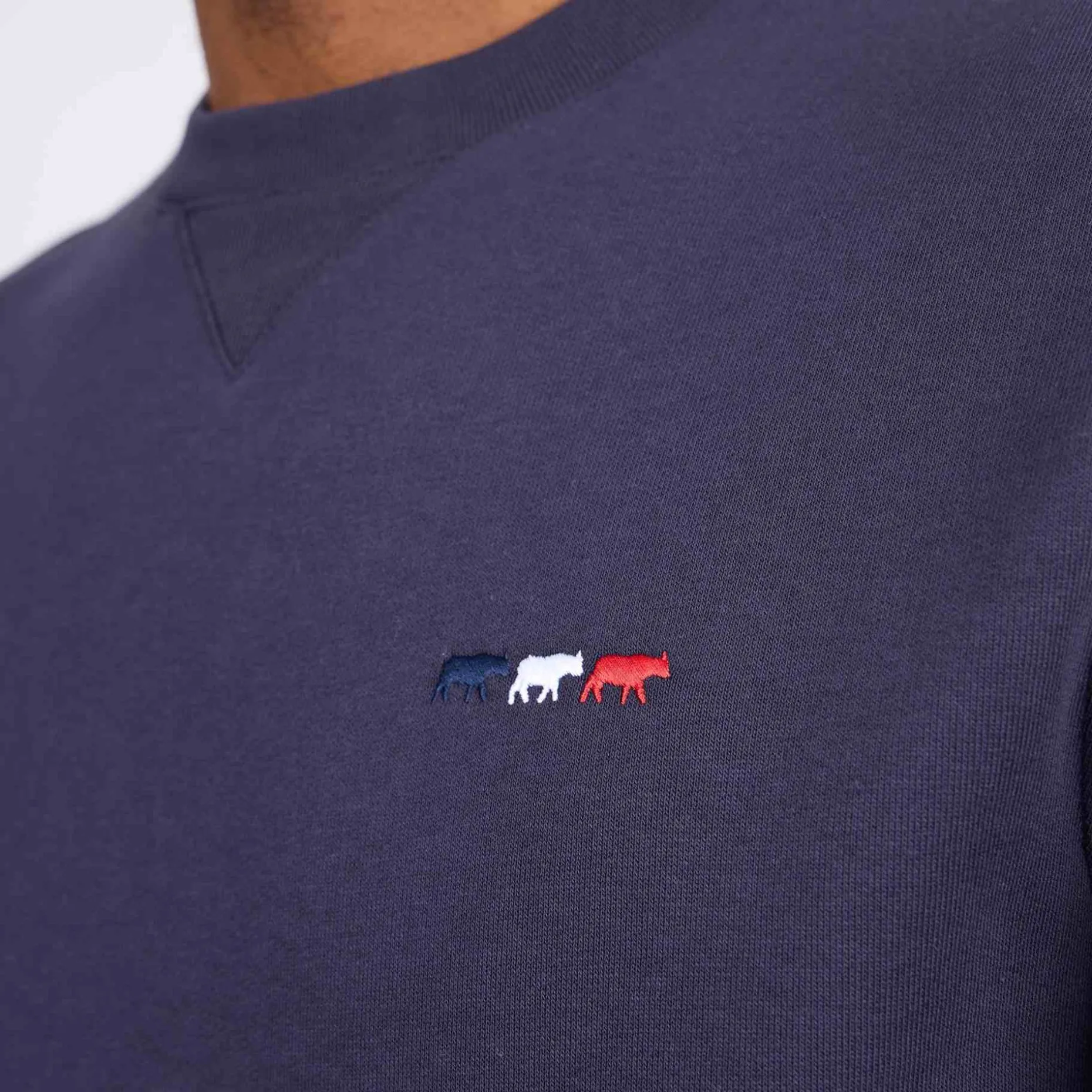 Style, confort et simplicité sont au rendez-vous avec ce pull pour homme à manches longues ! Ce modèle uni au coloris bleu marine se démarque par son col rond et sa couture en triangle sur le devant. Des finitions côtelées et une broderie contrastée « 3 vaches » sur la poitrine parachèvent cet essentiel. Mélange de coton et de polyester, il garantit votre confort tout au long de la journée. Portez-le avec un chino pour un style moderne et élégant !