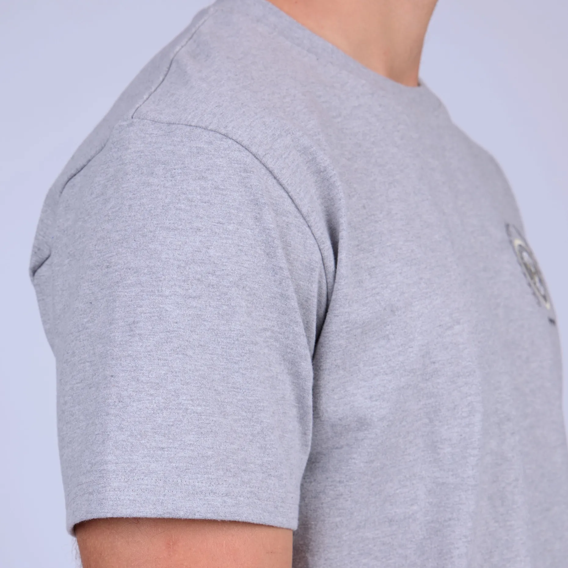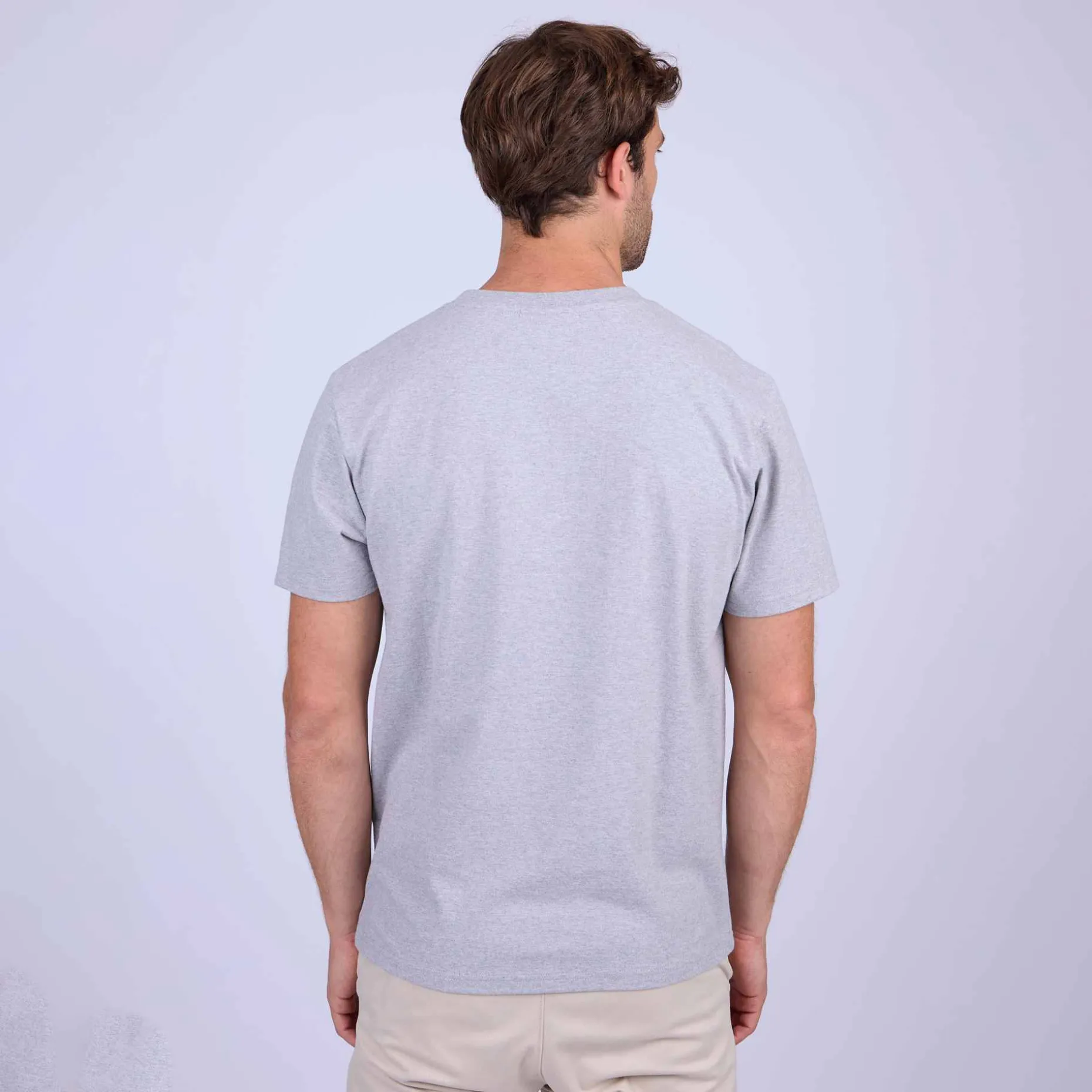 Un patch brodé Mise au Green exclusif s’invite sur ce tee-shirt à manches courtes ! Réalisé à 100 % en coton, ce basique du vestiaire masculin est synonyme de confort et de durabilité. Mixez son coloris gris chiné avec n’importe quel pantalon de votre collection pour une tenue décontractée et soignée. Ce modèle uni présente un col rond et une coupe droite.