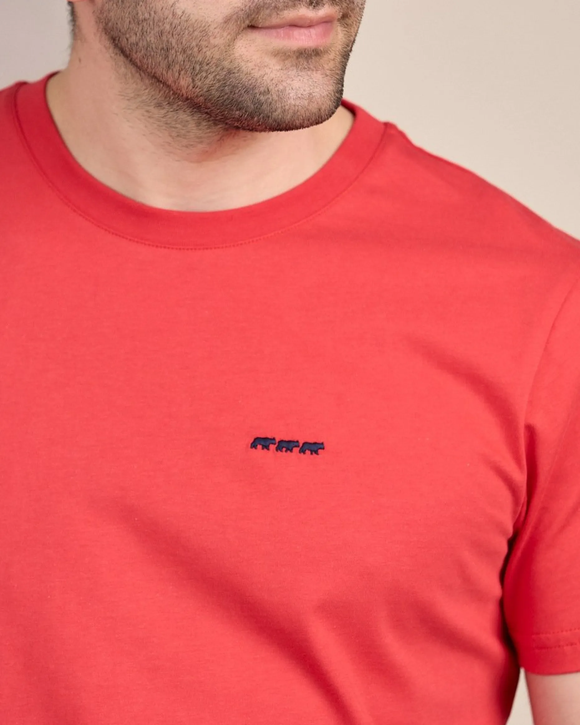 Soyez à l’aise toute la journée avec ce tee-shirt pour homme à manches courtes. Avec son coloris rouge uni, son col rond et sa coupe droite, ce modèle convient à tous les styles et morphologies. Confectionné intégralement en coton, il garantit douceur et respirabilité. Le détail qui change tout ? Sa petite broderie « 3 vaches » contrastée. Cet essentiel facile à vivre se porte seul ou sous un gilet de notre collection pour un style à la fois élégant et décontracté !