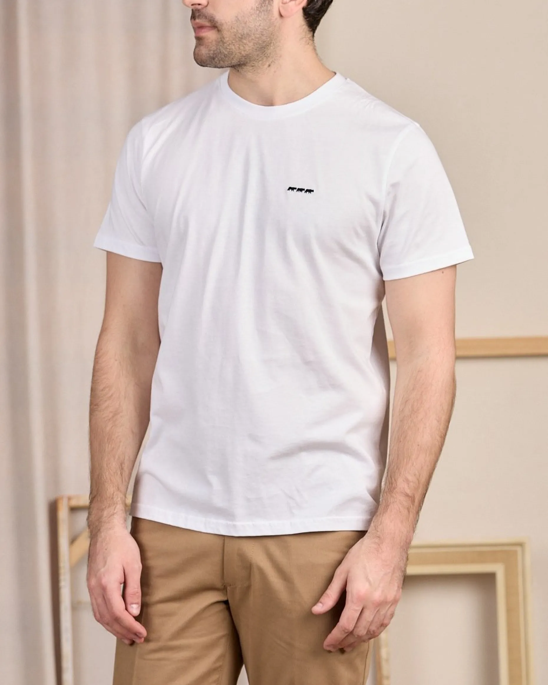 Soyez à l’aise toute la journée avec ce tee-shirt pour homme à manches courtes. Avec son coloris blanc uni, son col rond et sa coupe droite, ce modèle convient à tous les styles et morphologies. Confectionné intégralement en coton, il garantit douceur et respirabilité. Le détail qui change tout ? Sa petite broderie « 3 vaches » contrastée. Cet essentiel facile à vivre se porte seul ou sous un gilet de notre collection pour un style à la fois élégant et décontracté !